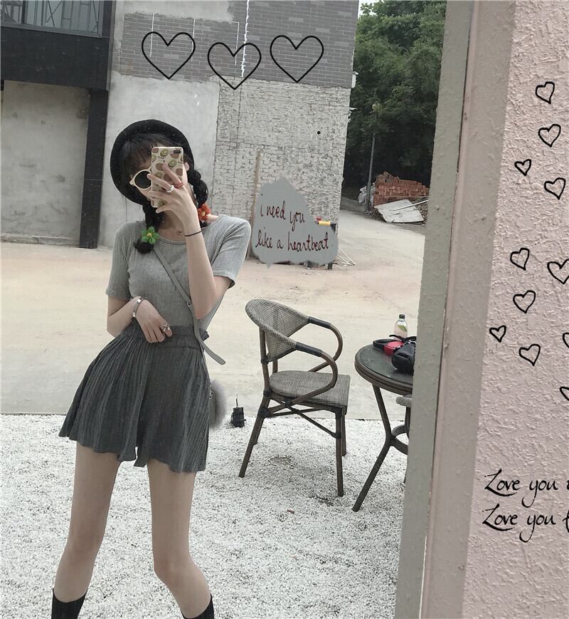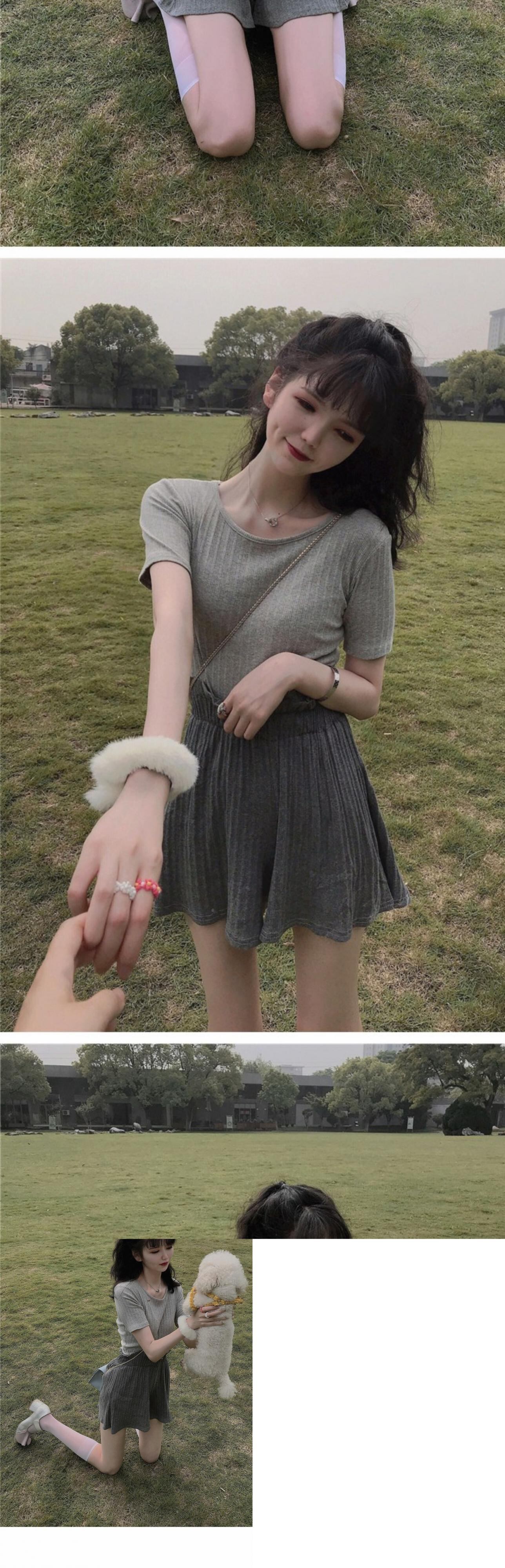 色:グレートップ(シングルピース),ダークグレーのショートパンツ(ワンピース)