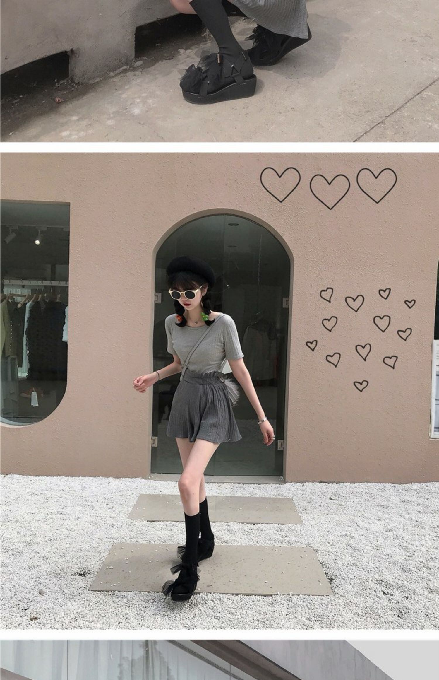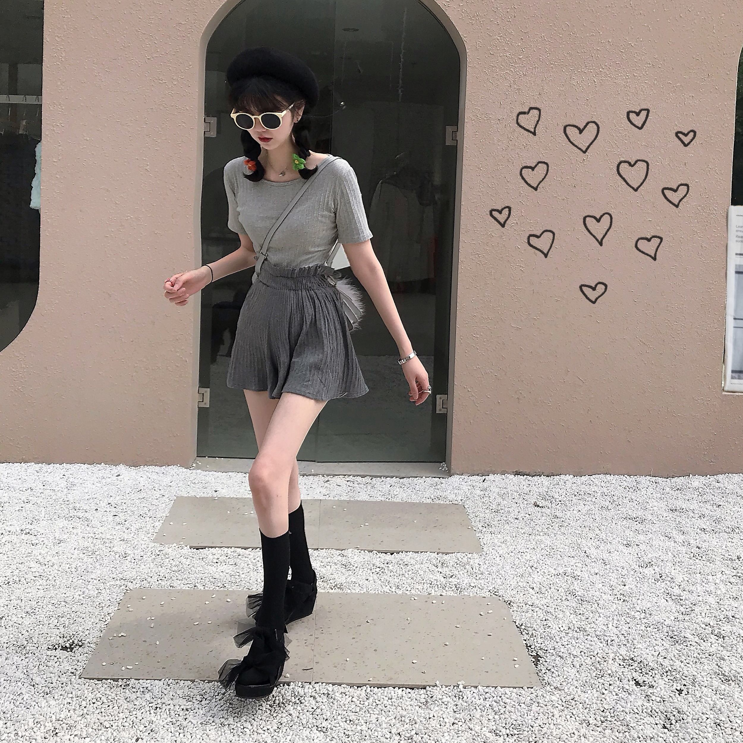 サマーショートTシャツ ストライプニットスカート パンツ ショーツ 夏物 ブルマー 萌量不足1845784833