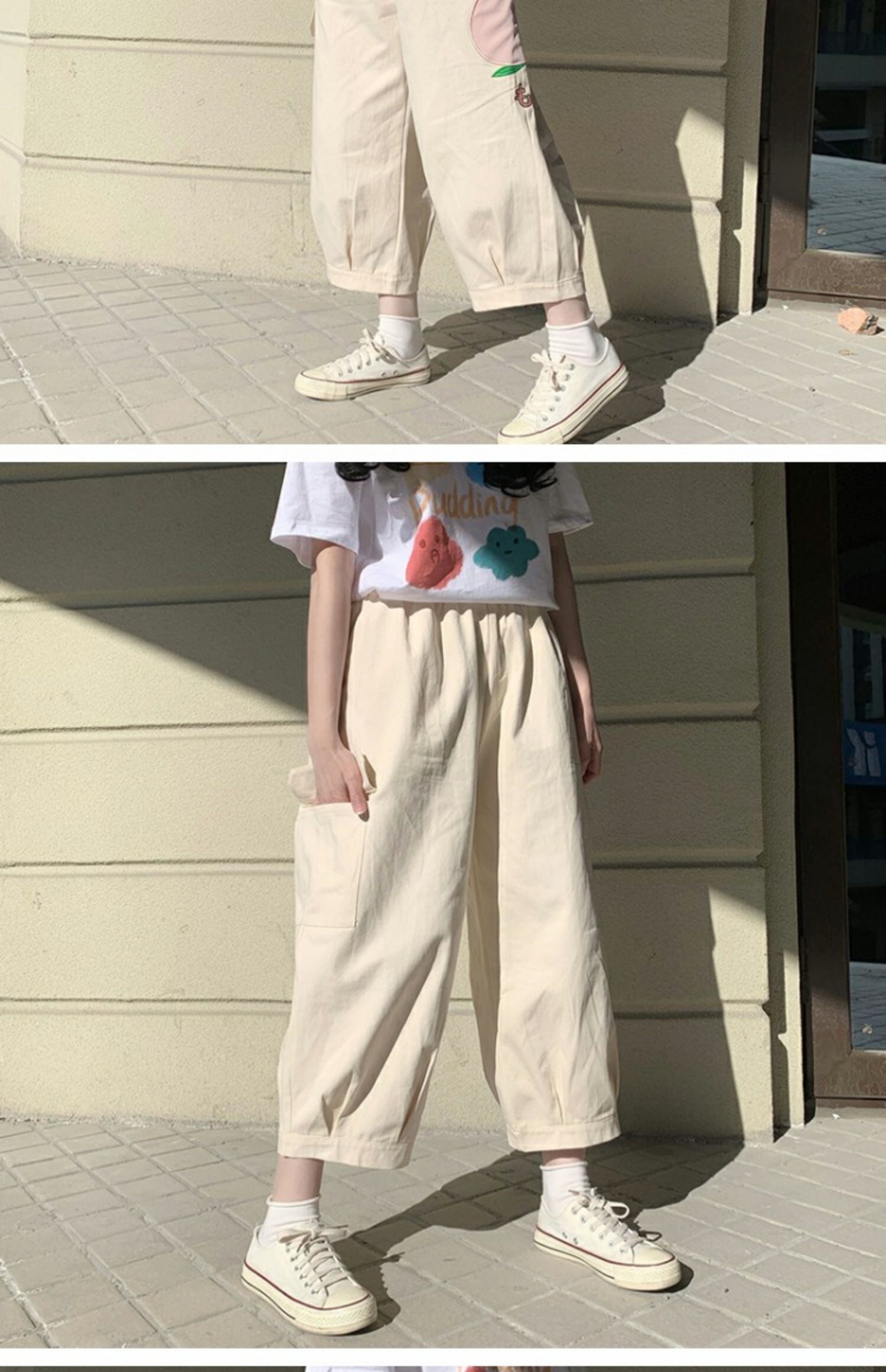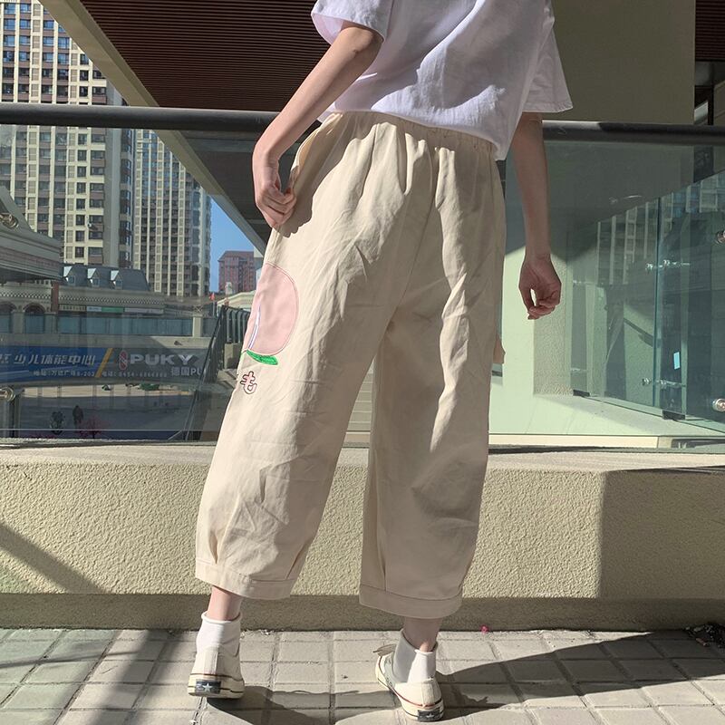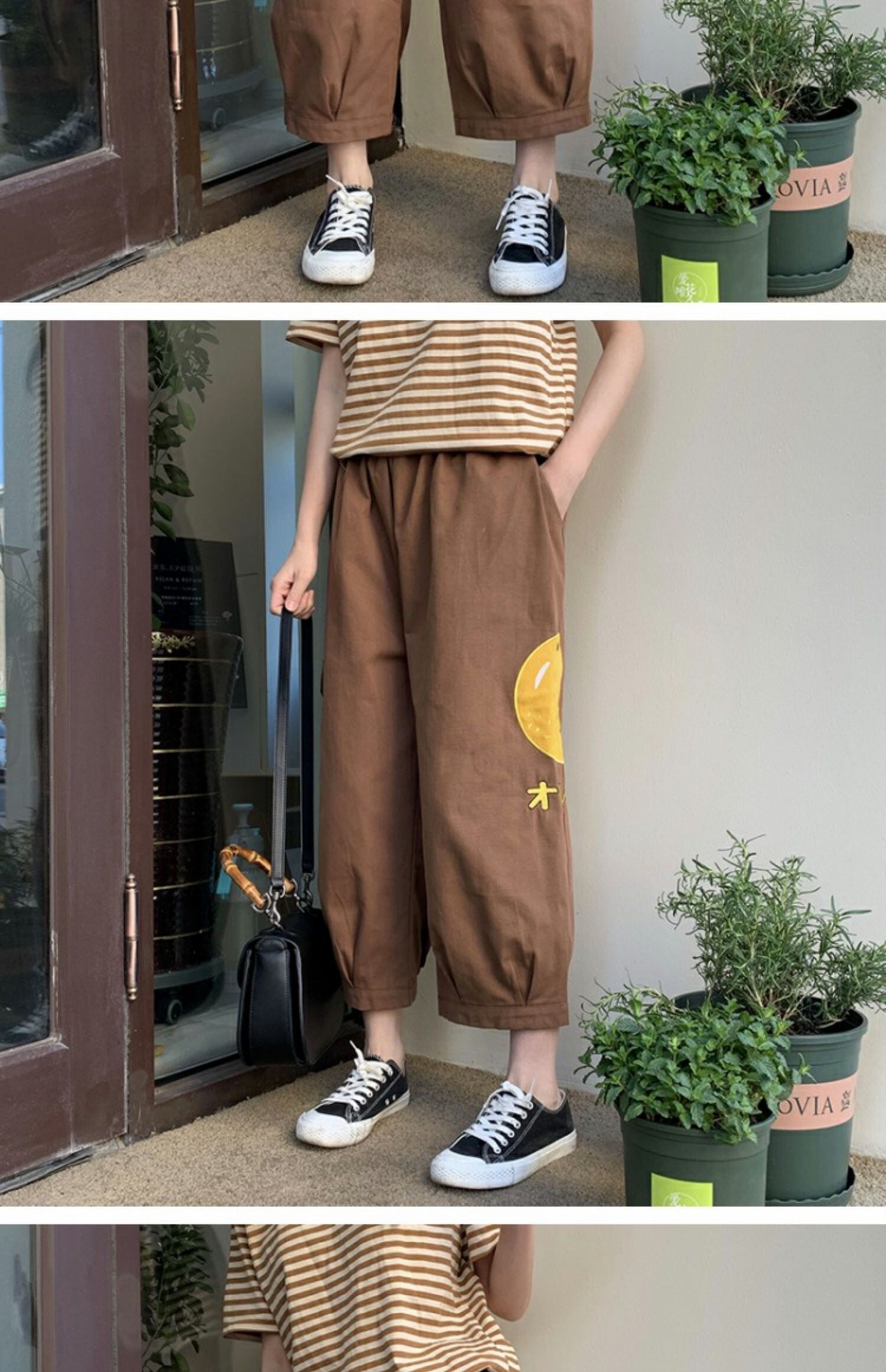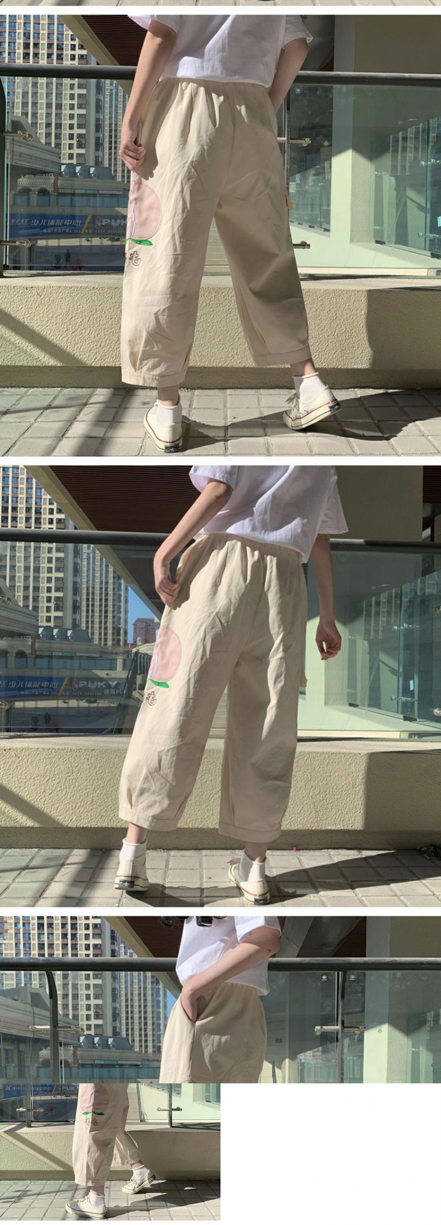 パンツ サマー刺繍ハイウェストウェストルーズカジュアルレディース 夏物 萌量不足66523231042