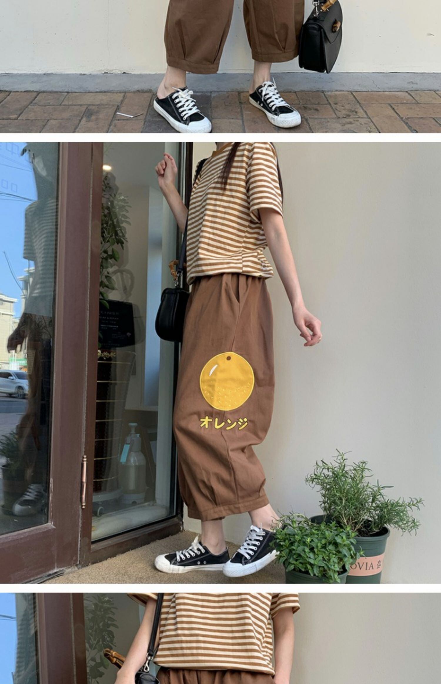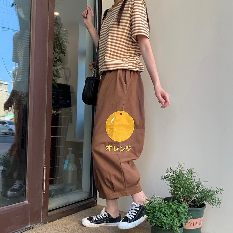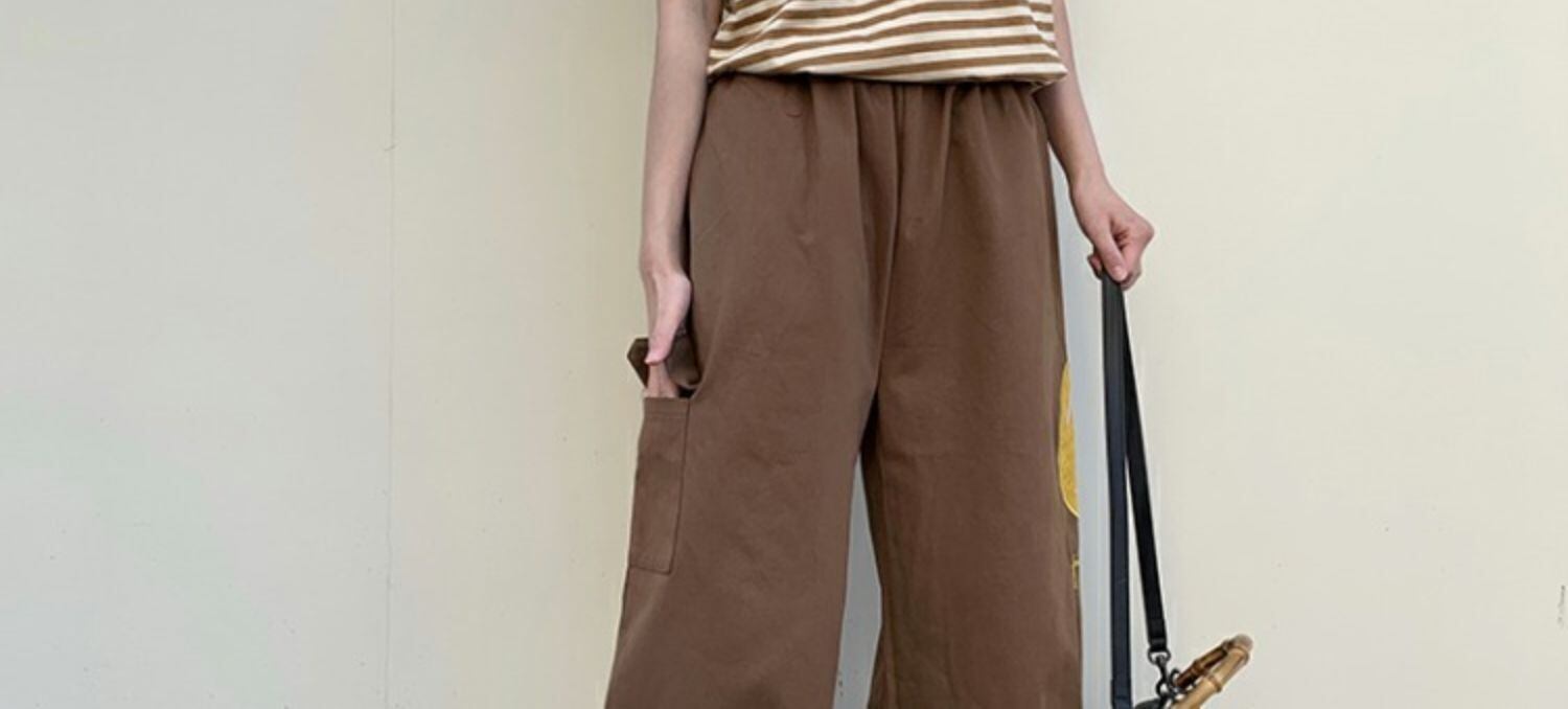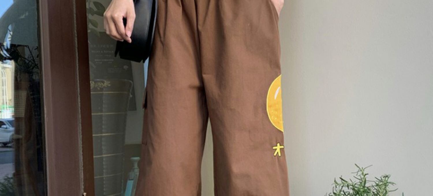 パンツ サマー刺繍ハイウェストウェストルーズカジュアルレディース 夏物 萌量不足66523231042
