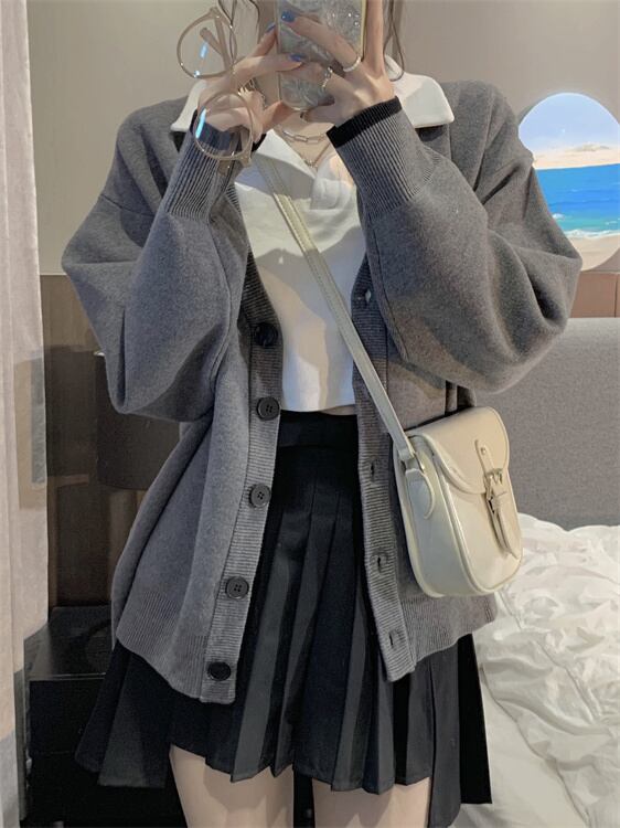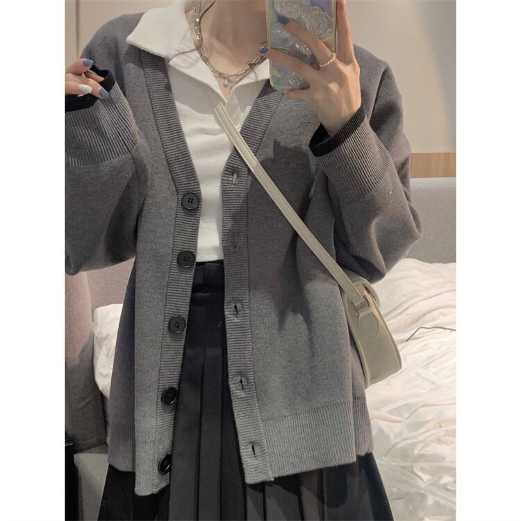 スタンダードスタイルセーター ジャケット スプリングオータム薄手ニットカーディガントップス レトロ 春物 秋物 萌量不足49277865752