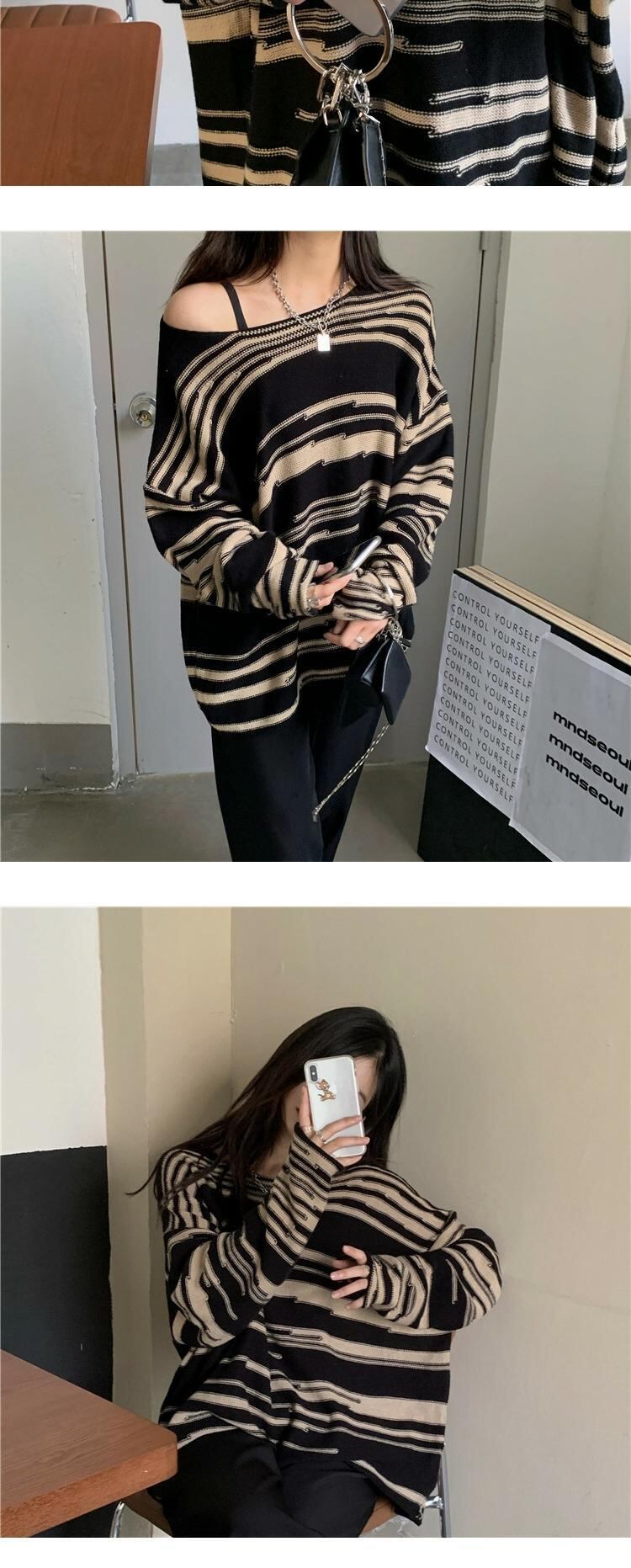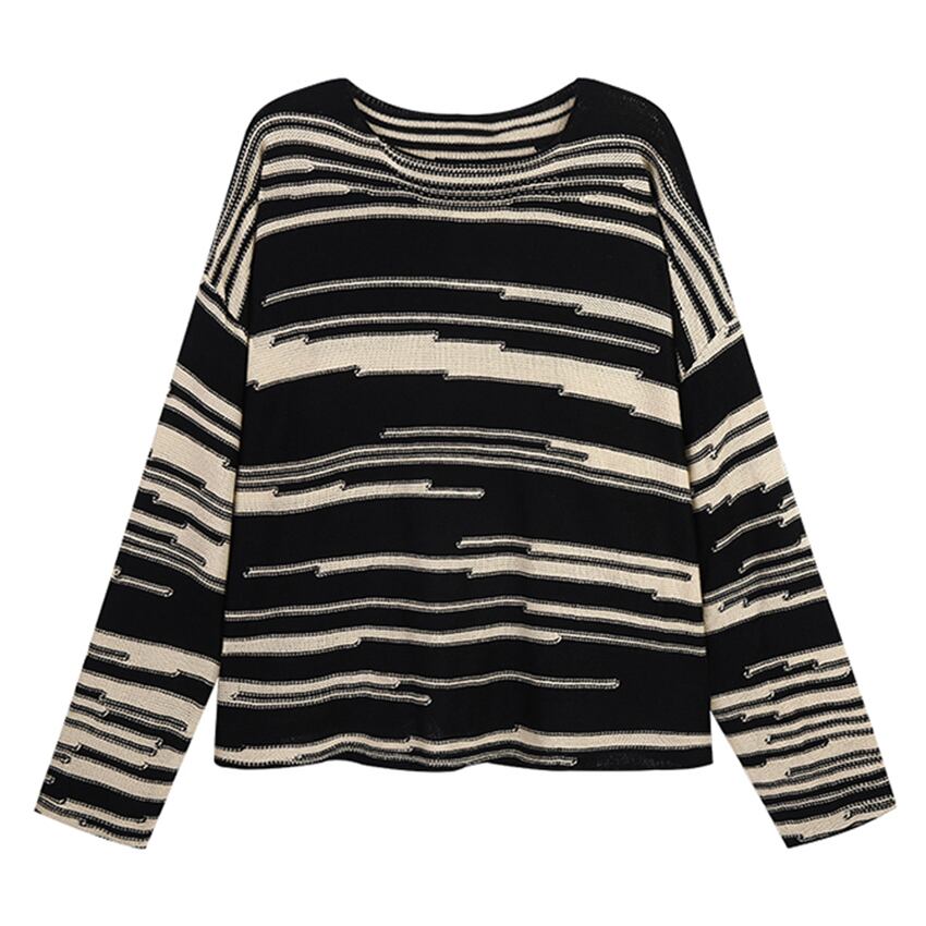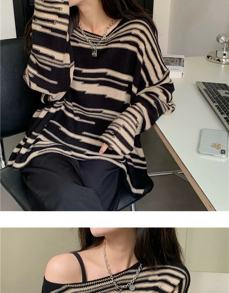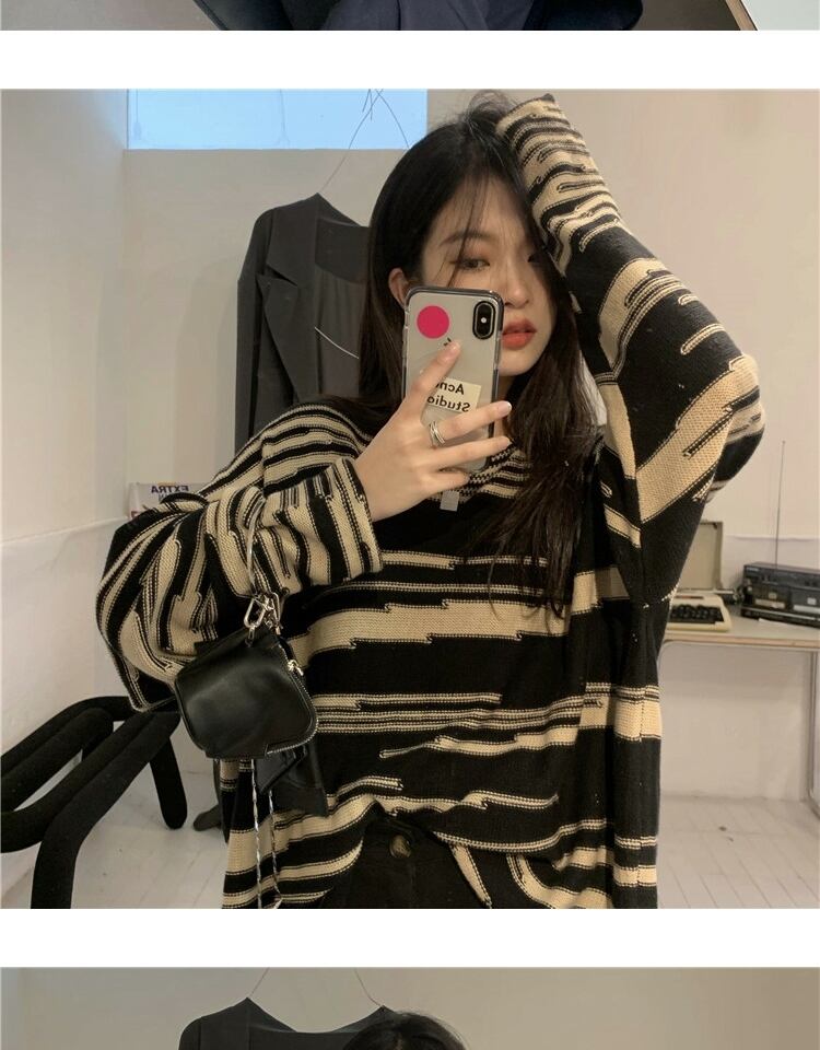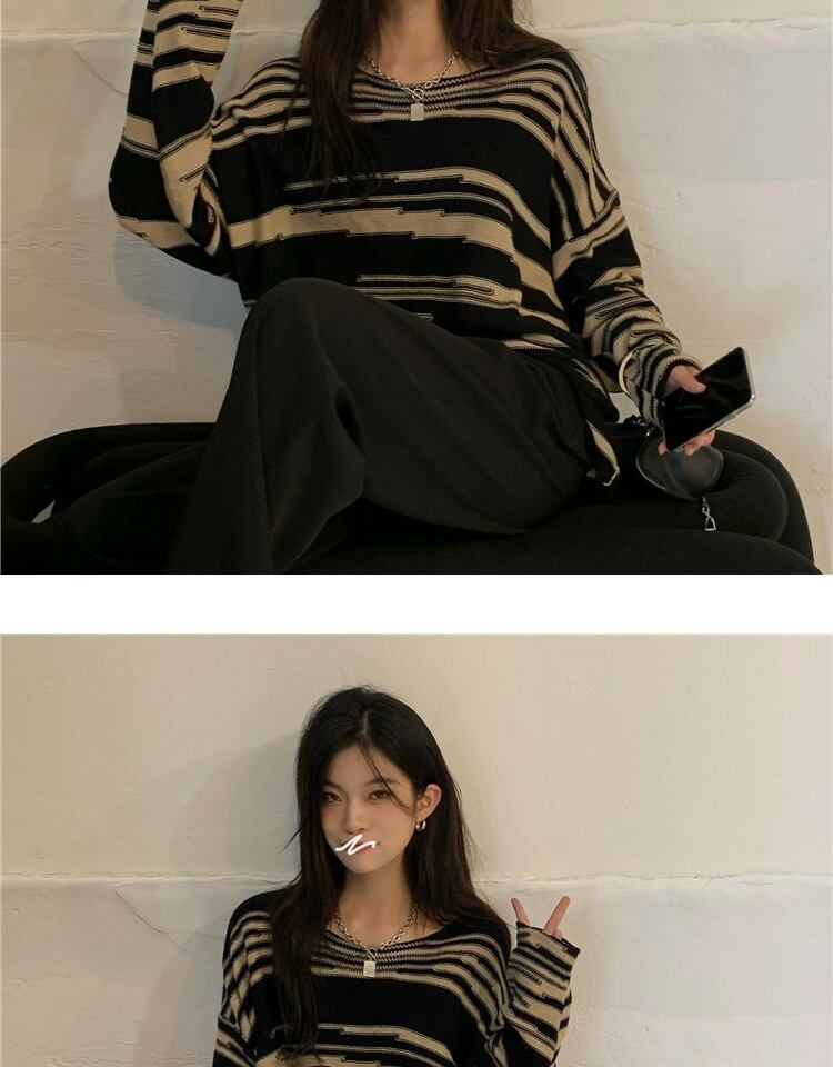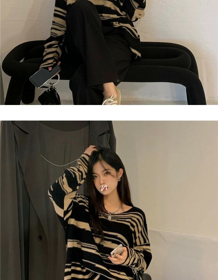 ストライプセーター スプリングオータム薄手シャツ スタンダードルーズウィンターニットトップス レトロ 春物 秋物 冬物 萌量不足30940970129