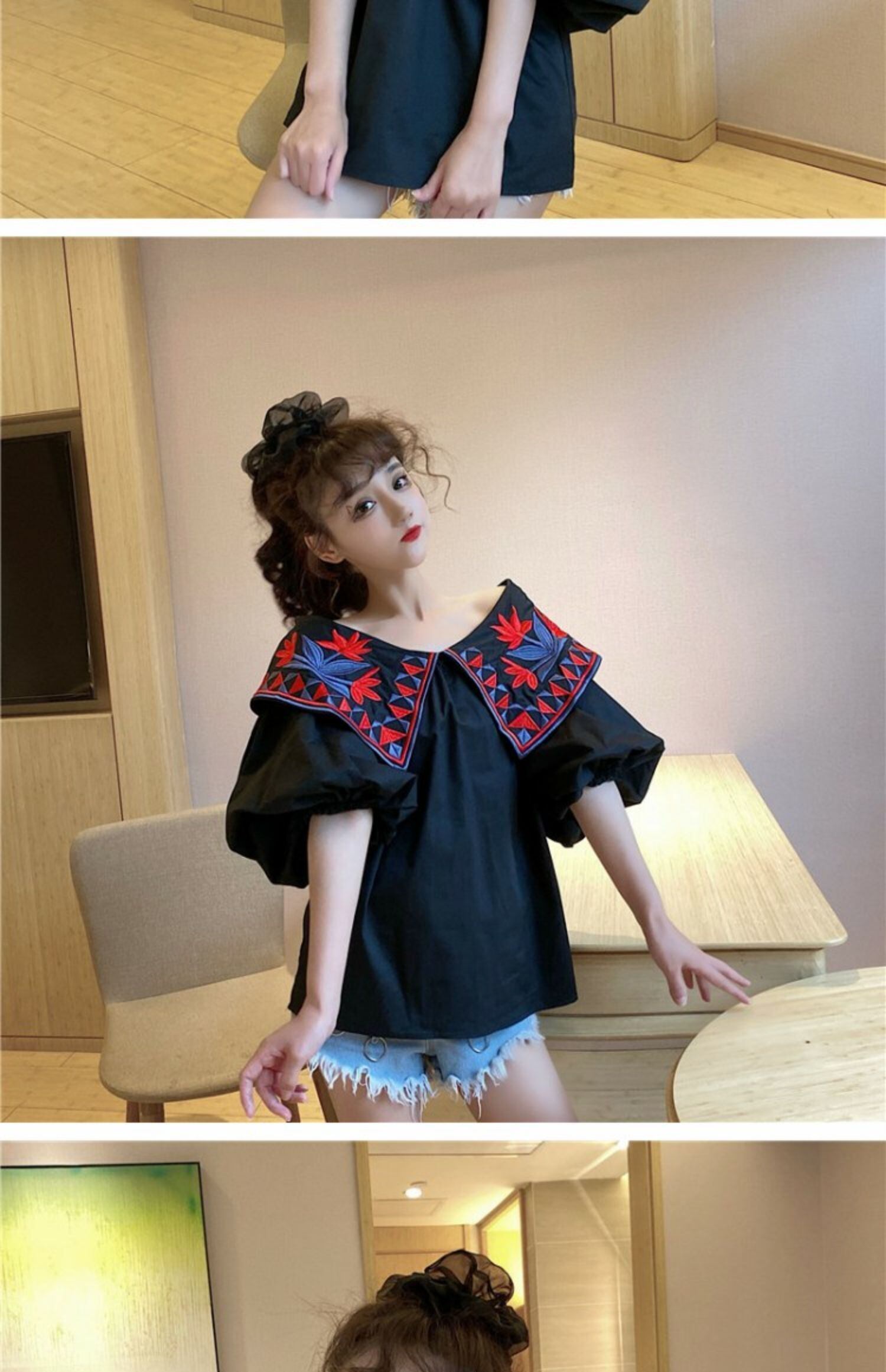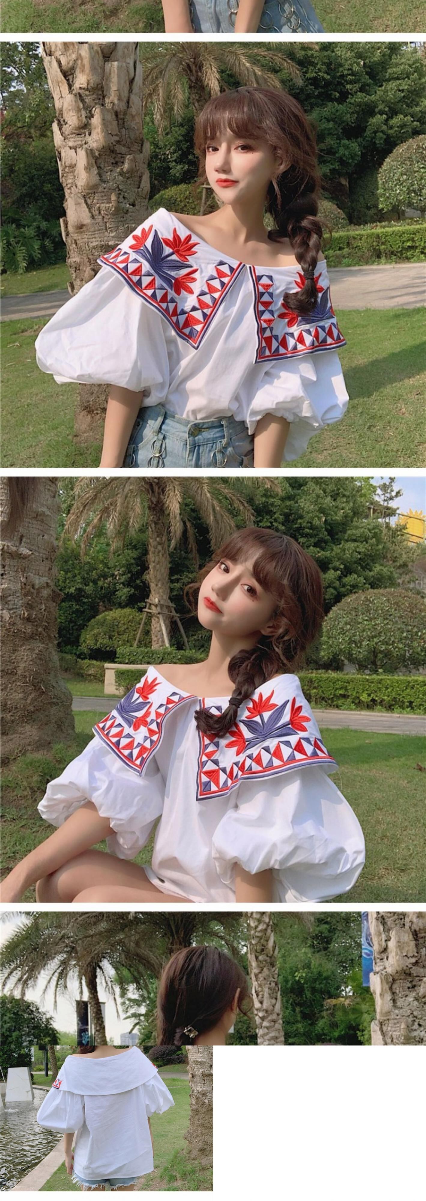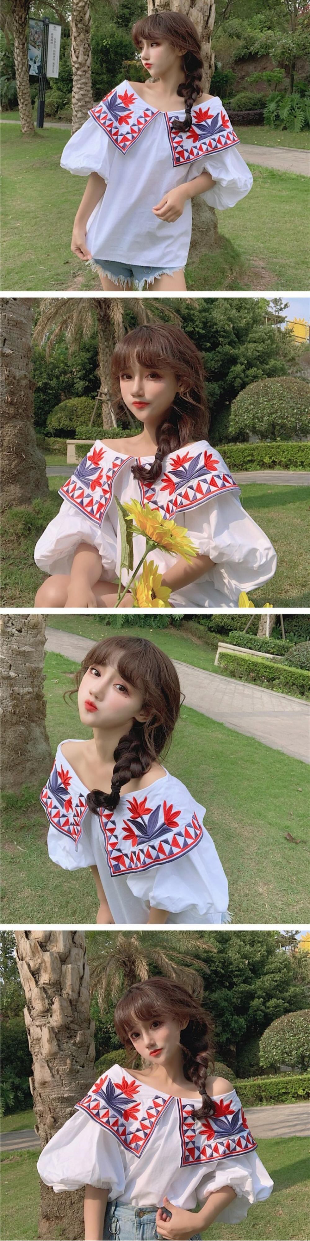 サマースタンダードシャツ Flowerデザイン 刺繍スリーブトップス ランタンスリーブ レトロ 夏物 フラワーデザイン 萌量不足52049004338
