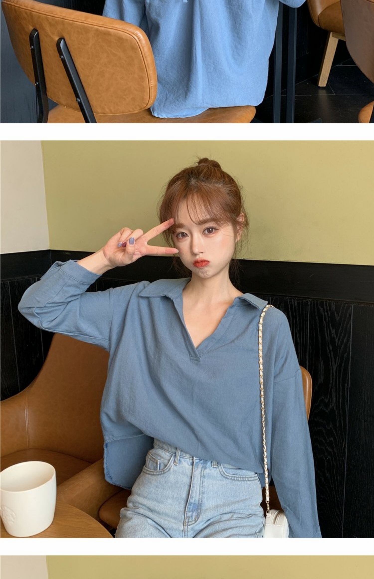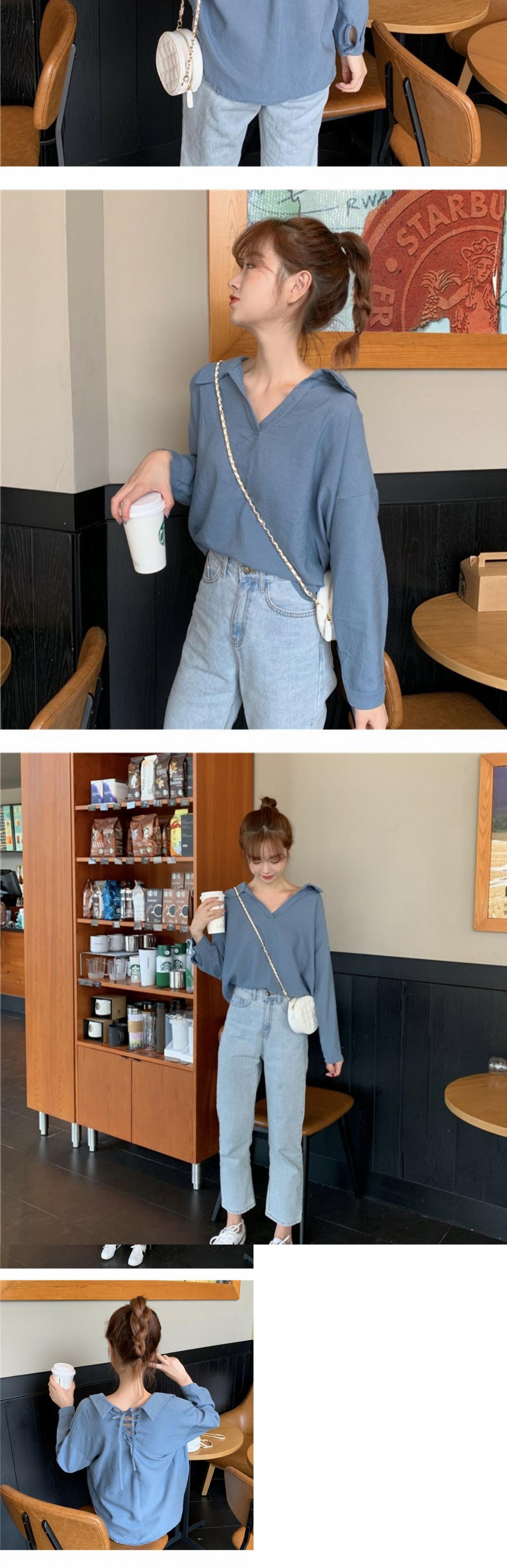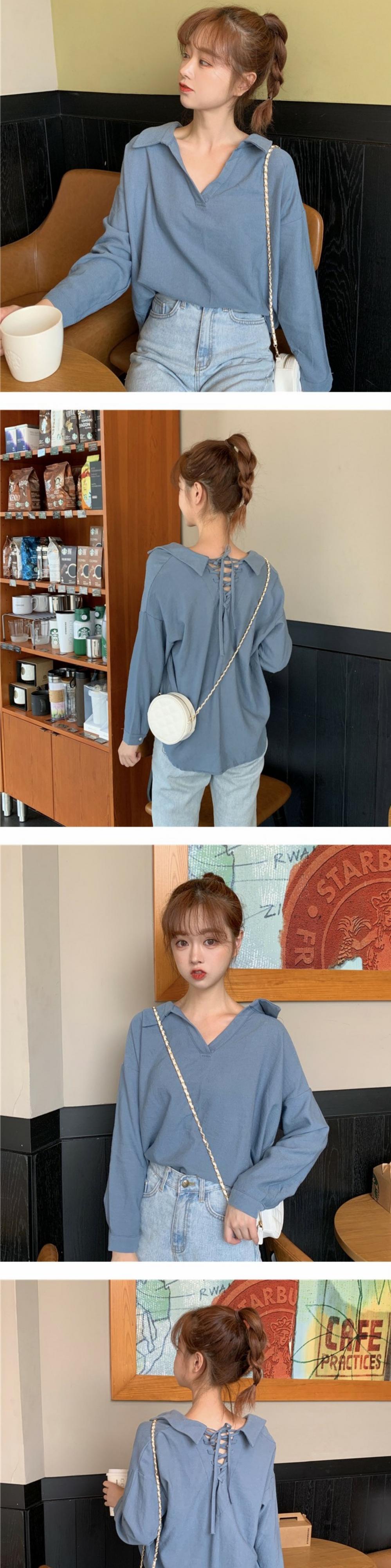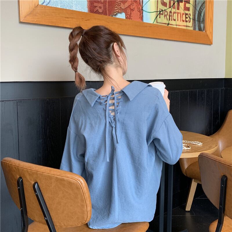 シャツ Vネックルーズスタイルスプリングバックレディース ロング 春物 萌量不足2522856069