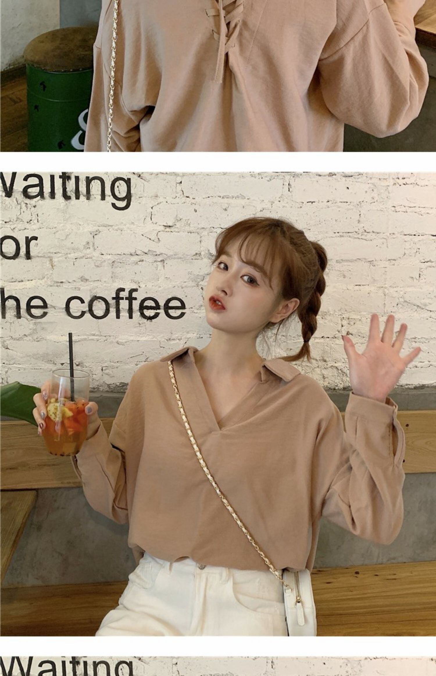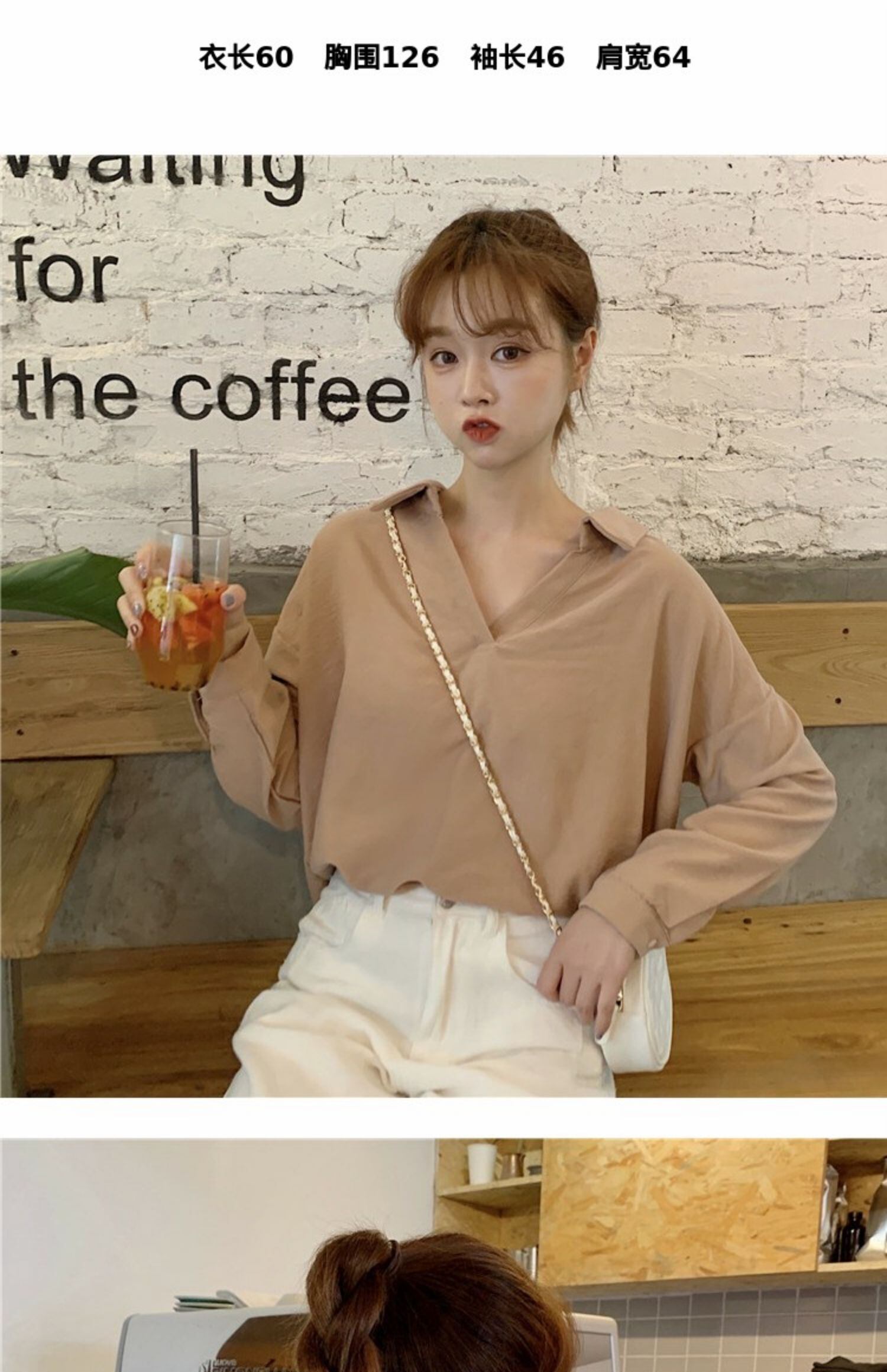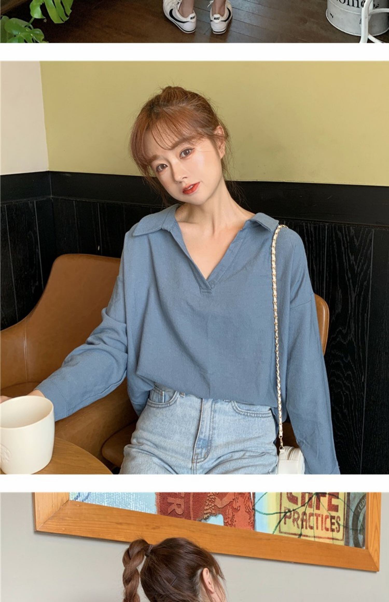 シャツ Vネックルーズスタイルスプリングバックレディース ロング 春物 萌量不足2522856069