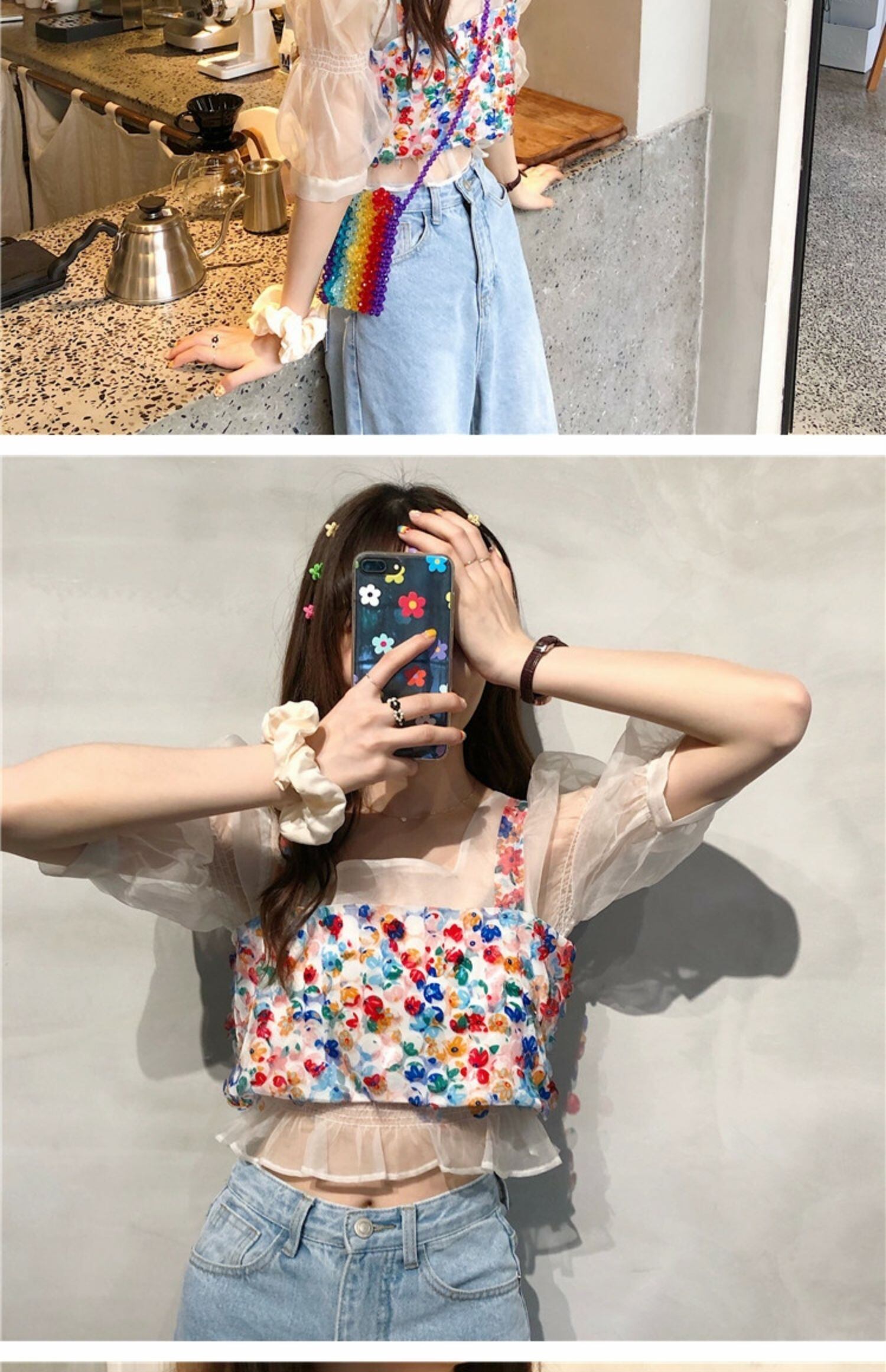 色:カラースパンコールスモールベスト(ワンピース),シャシャパフスリーブシャツ(ワンピース)