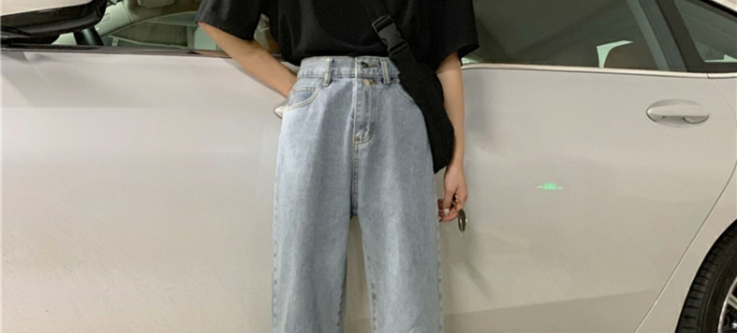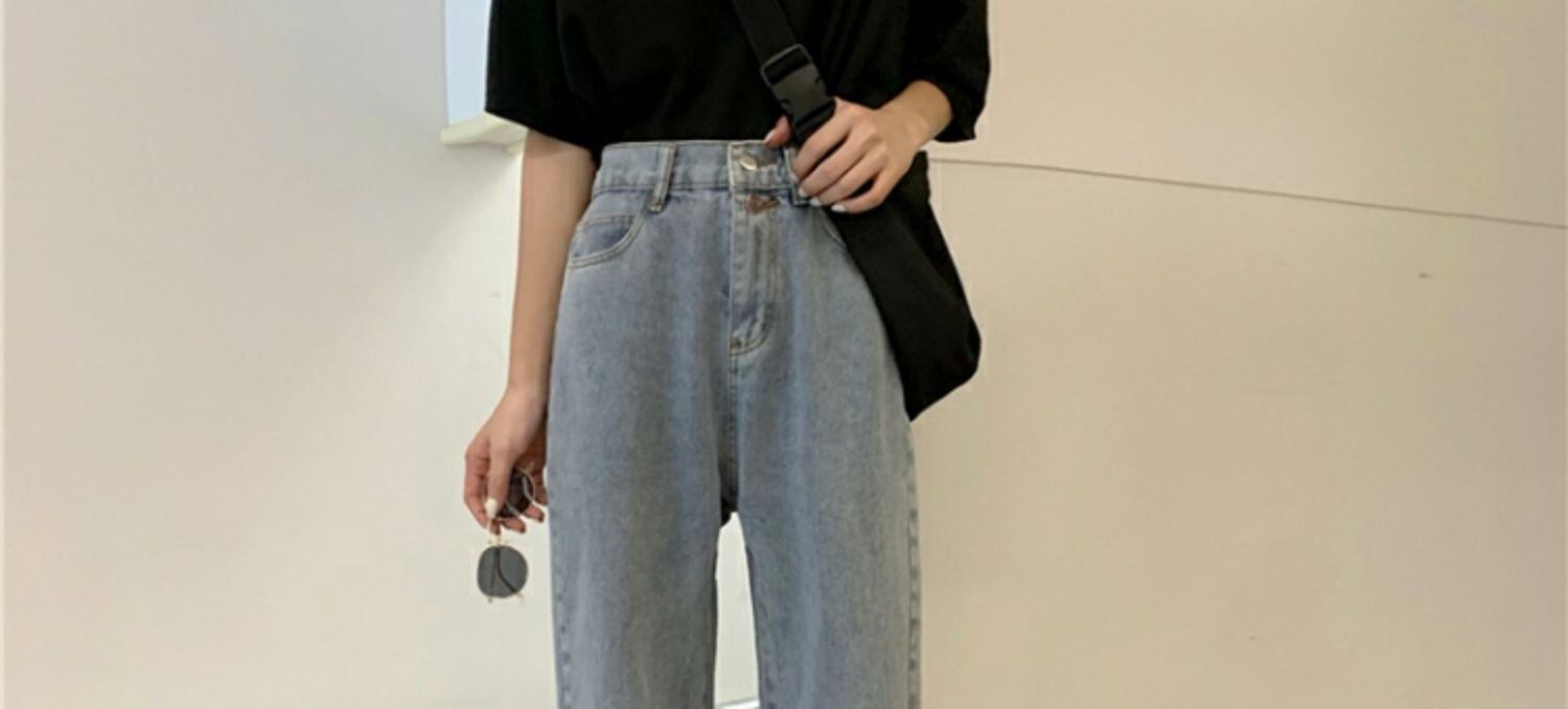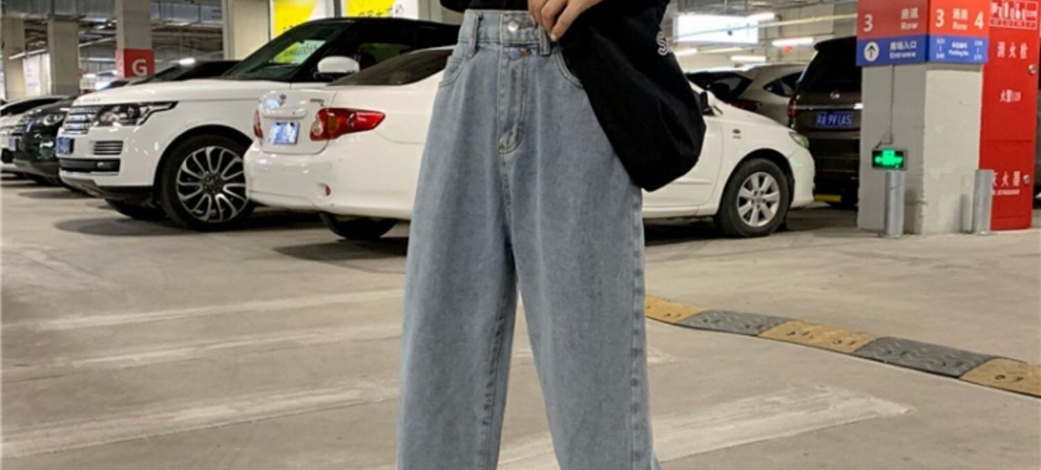 パンツ オータムストレッチウェストワイドレッグルーズジーンズ エラスティック 伸縮 秋物 ワイドパンツ 萌量不足35162084672