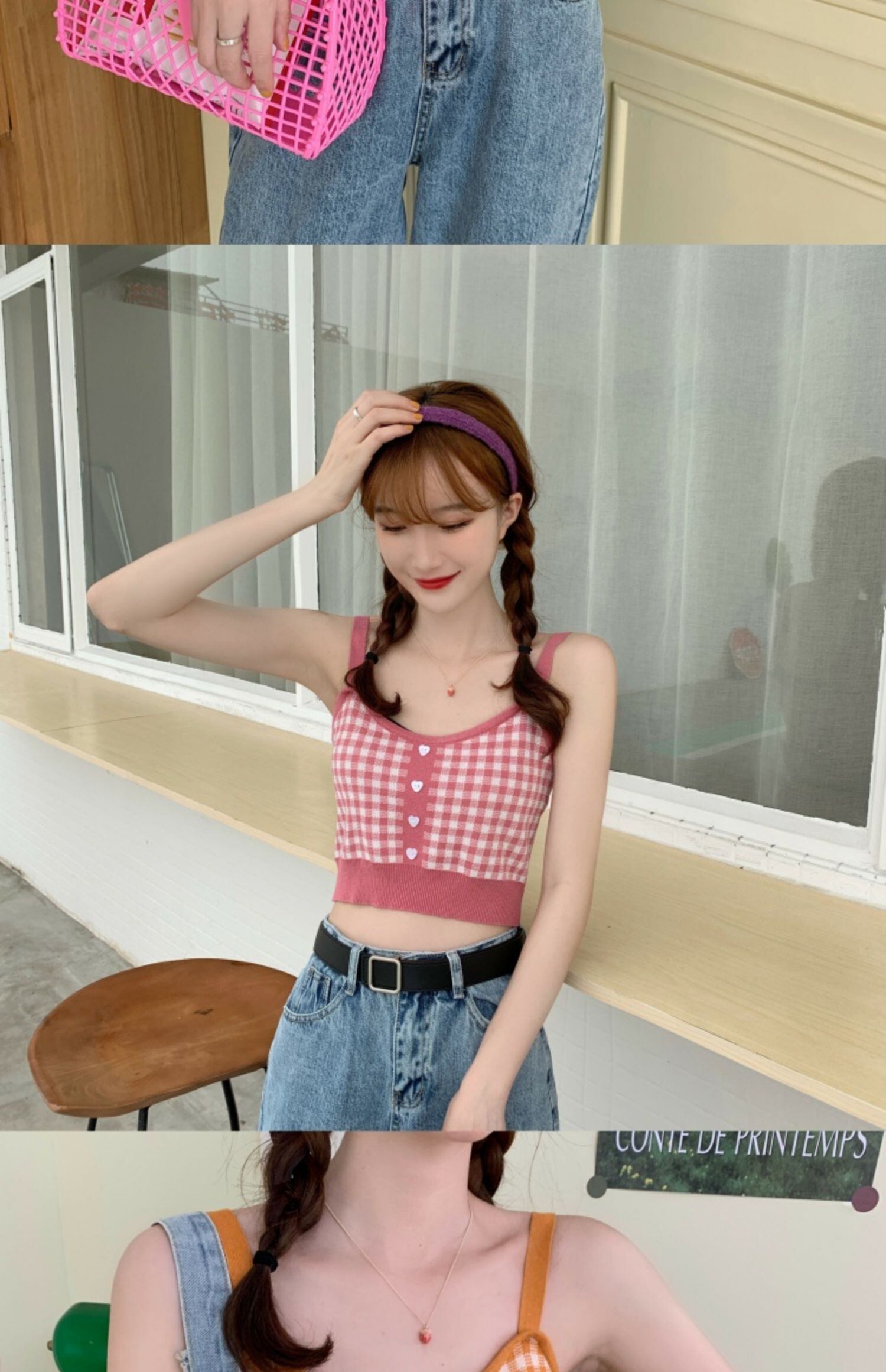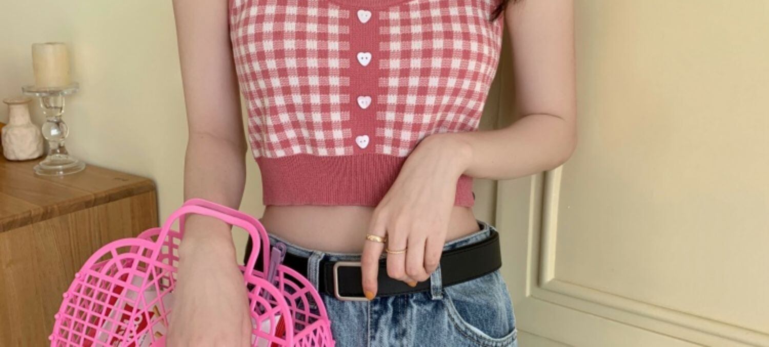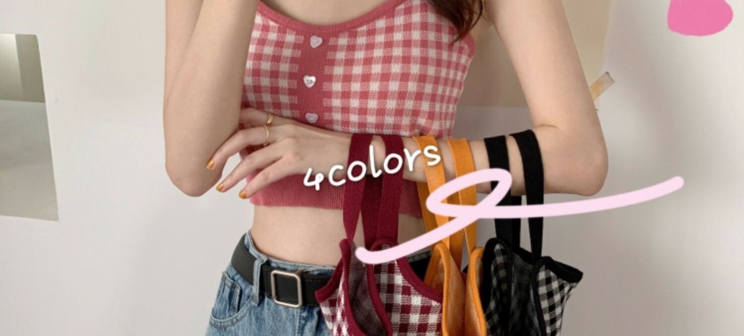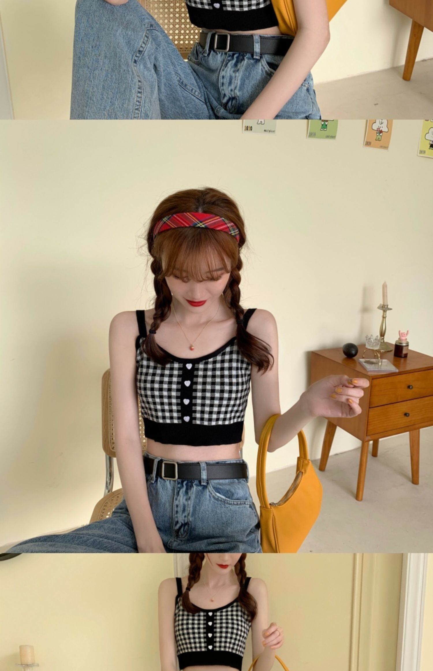 サマースタイルスタンダード格子柄クロップドショートニットブラウス レトロ 夏物 萌量不足37462849355