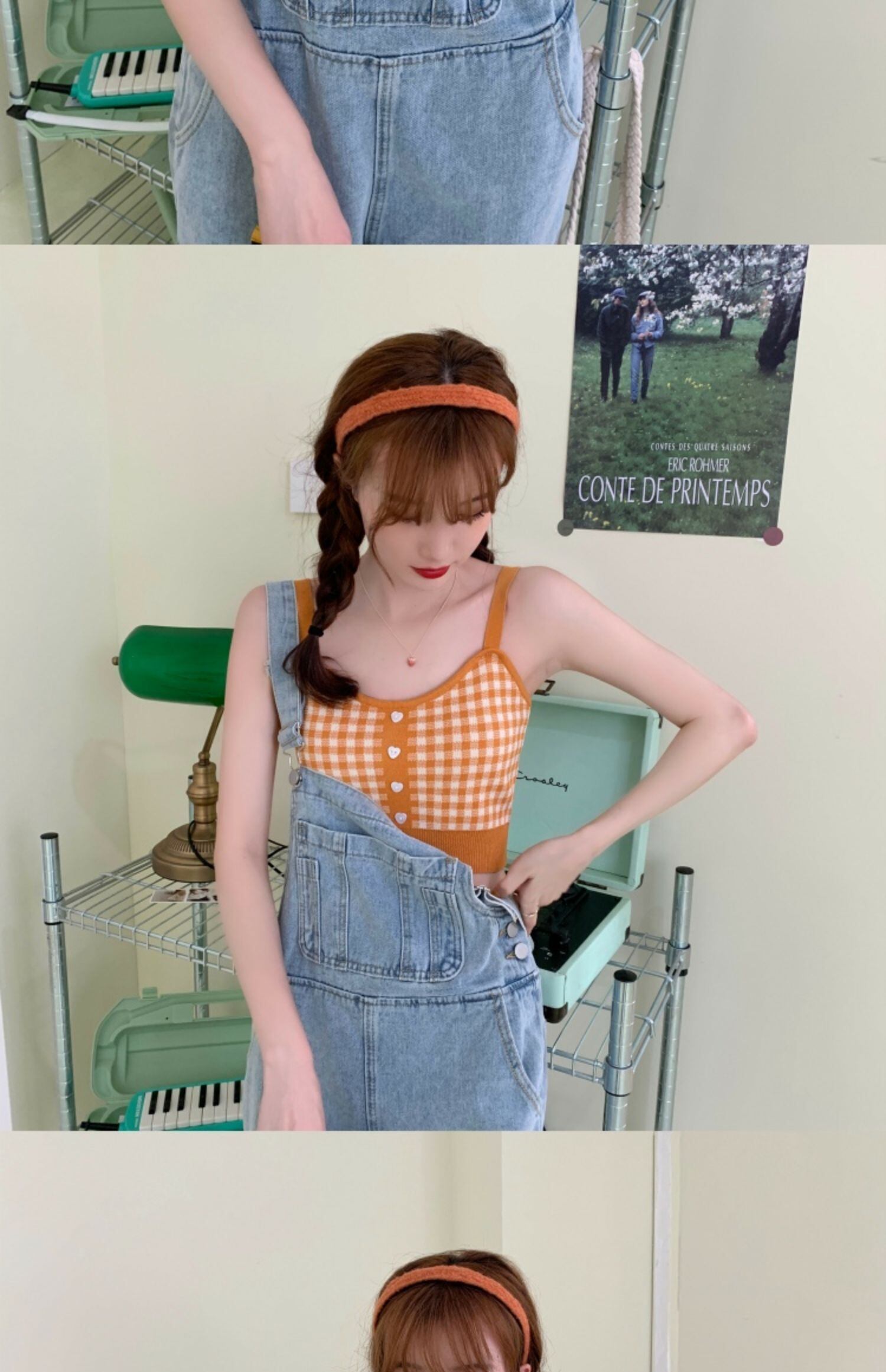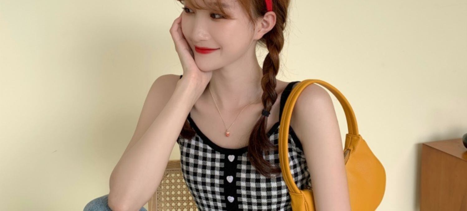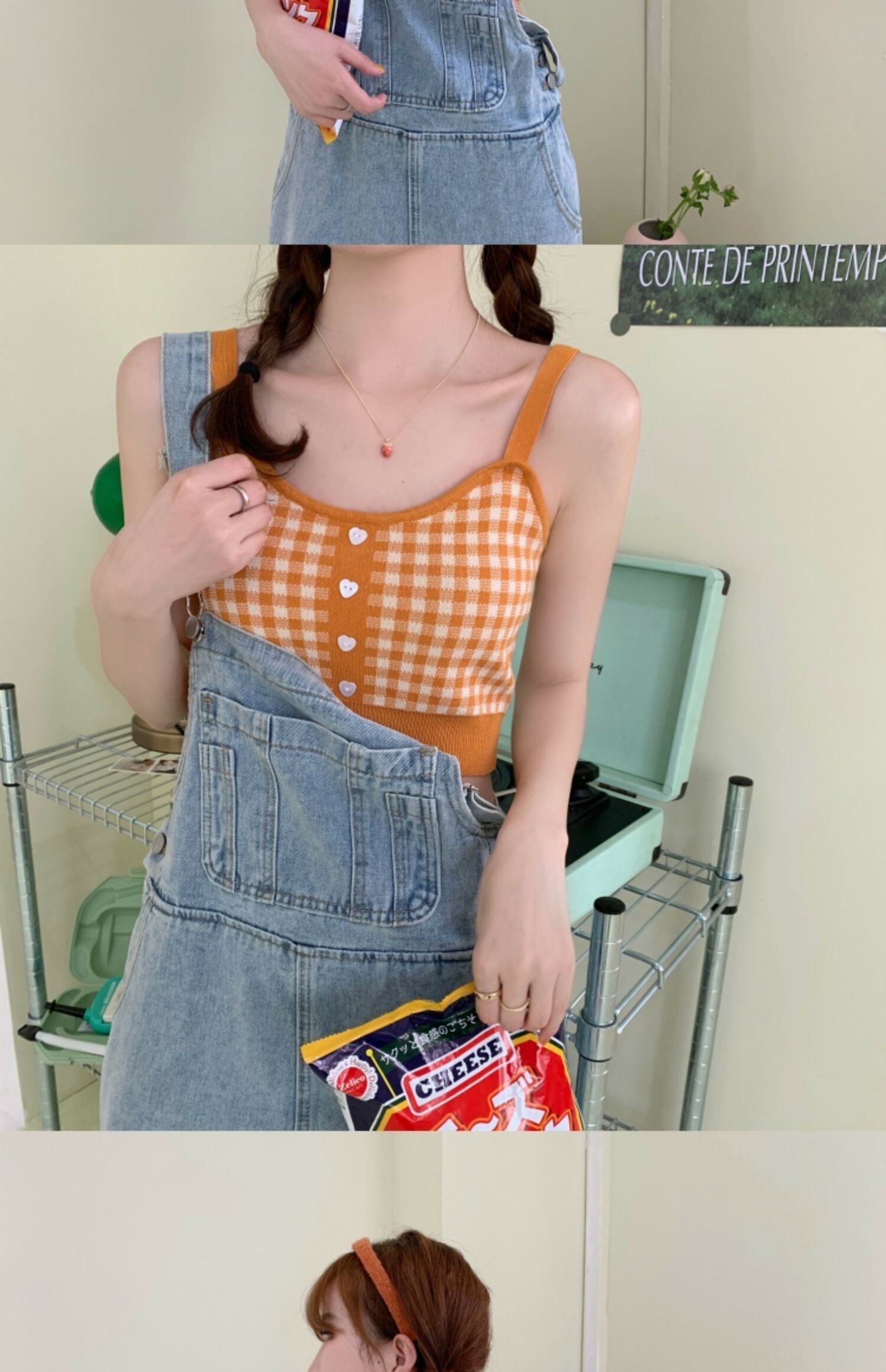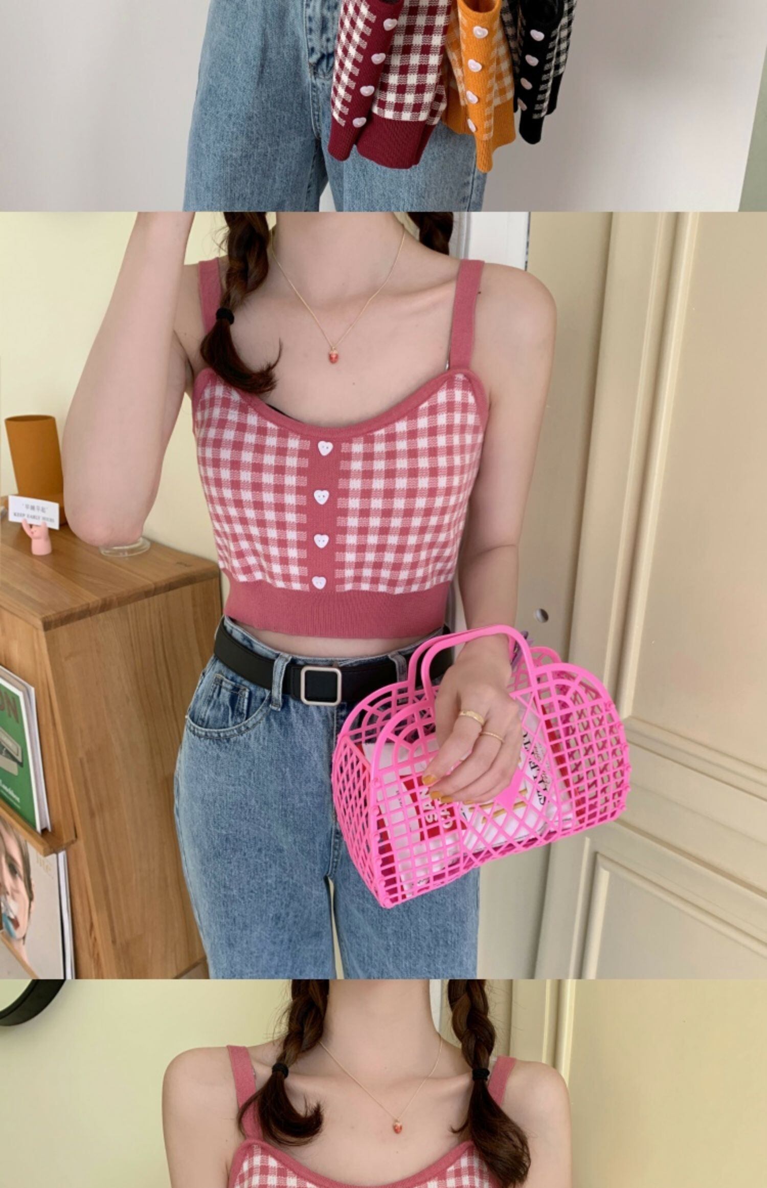 サマースタイルスタンダード格子柄クロップドショートニットブラウス レトロ 夏物 萌量不足37462849355