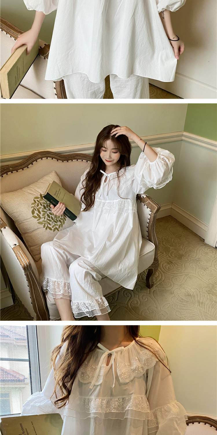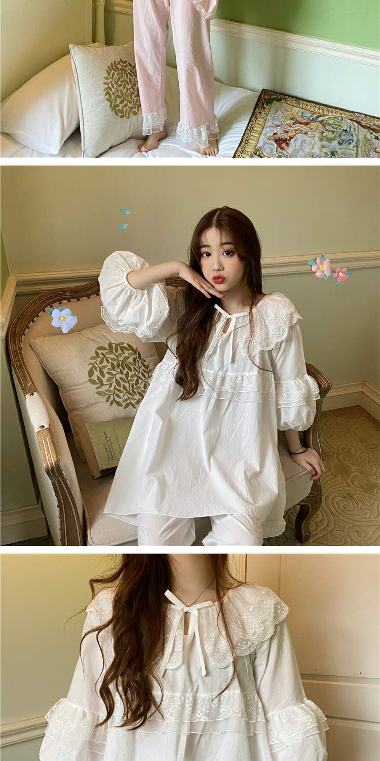 色:ピンクの寝間着,ピンクのパジャマセット,白のパジャマセット,白い寝間着