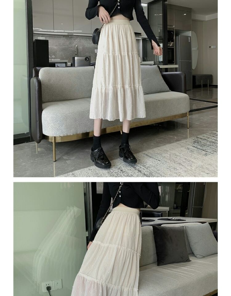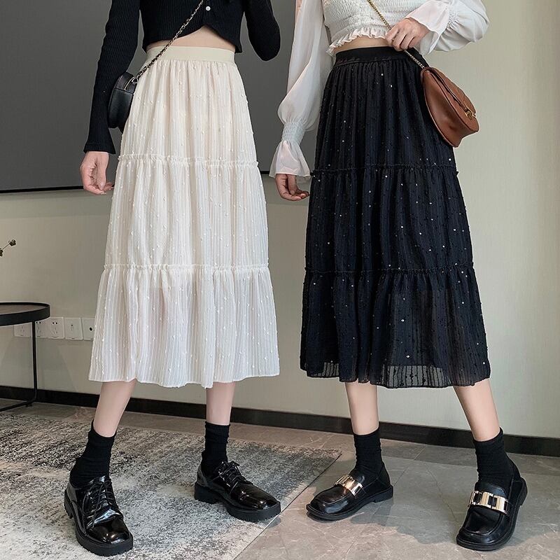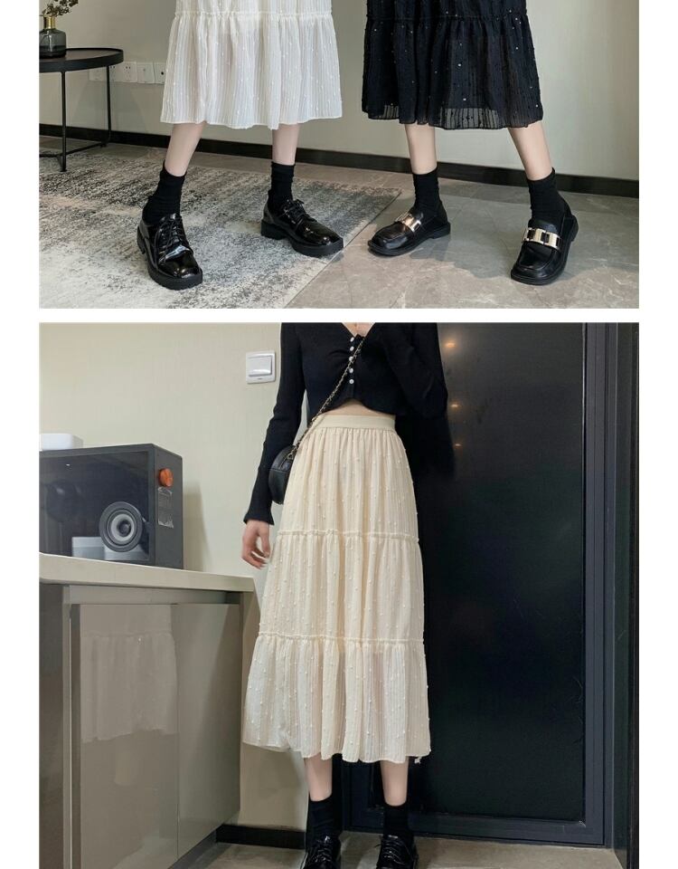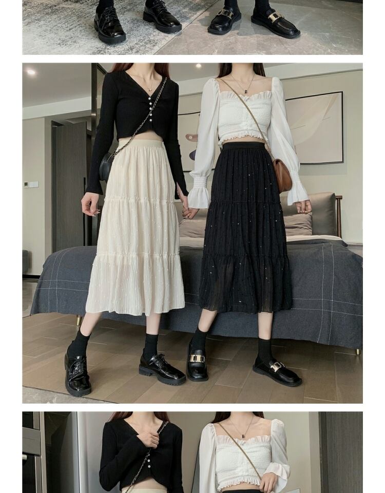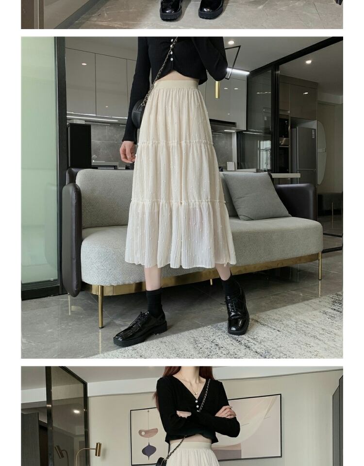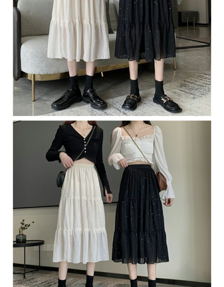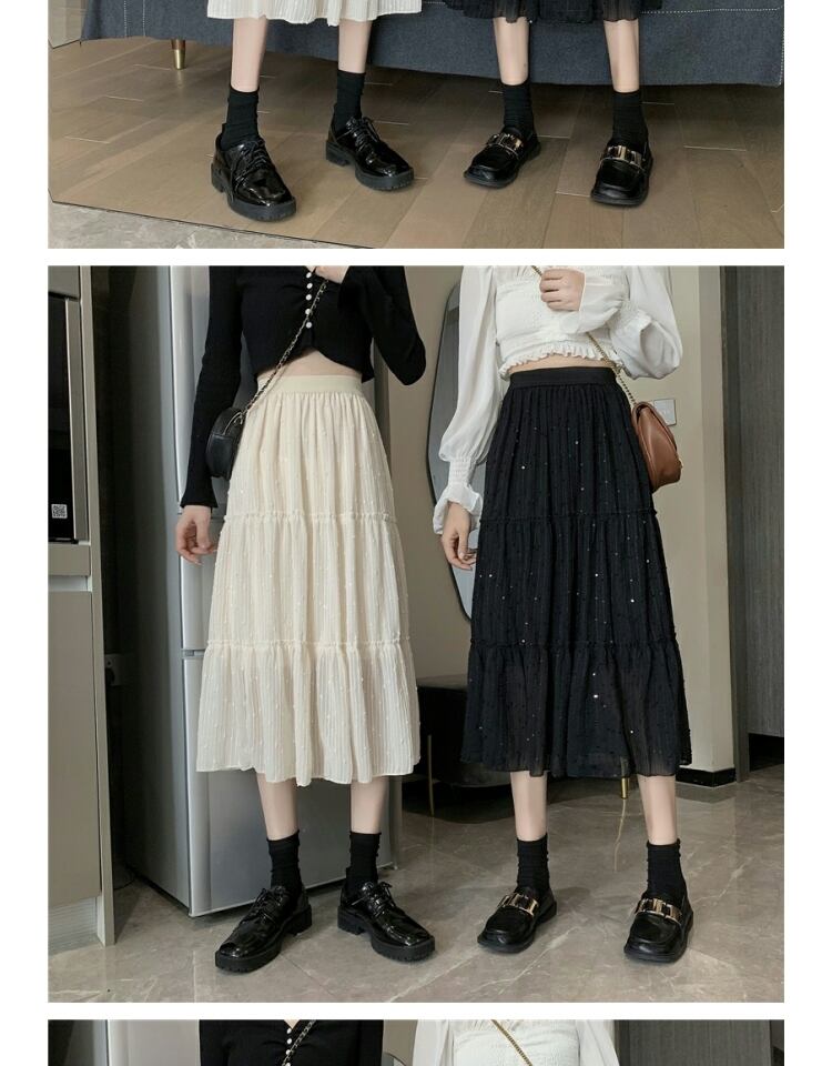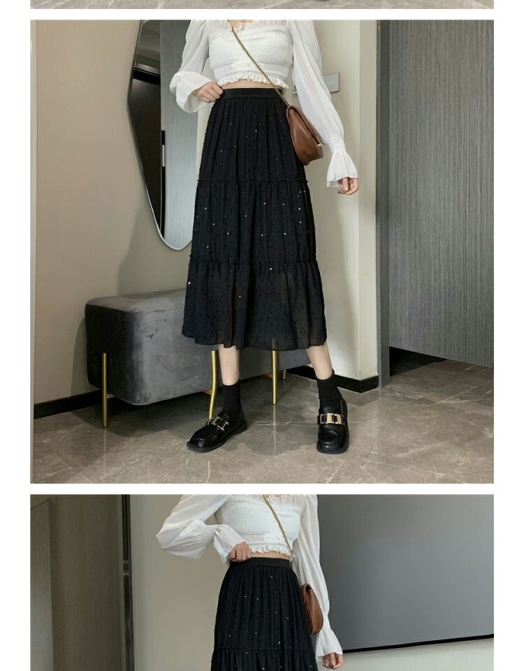 スカート オータム刺繍スパンコールハイウェストウェスト薄手Aライン 大人ガーリー スウィート キュート カジュアル 秋物 ステッチ 萌量不足35922955490