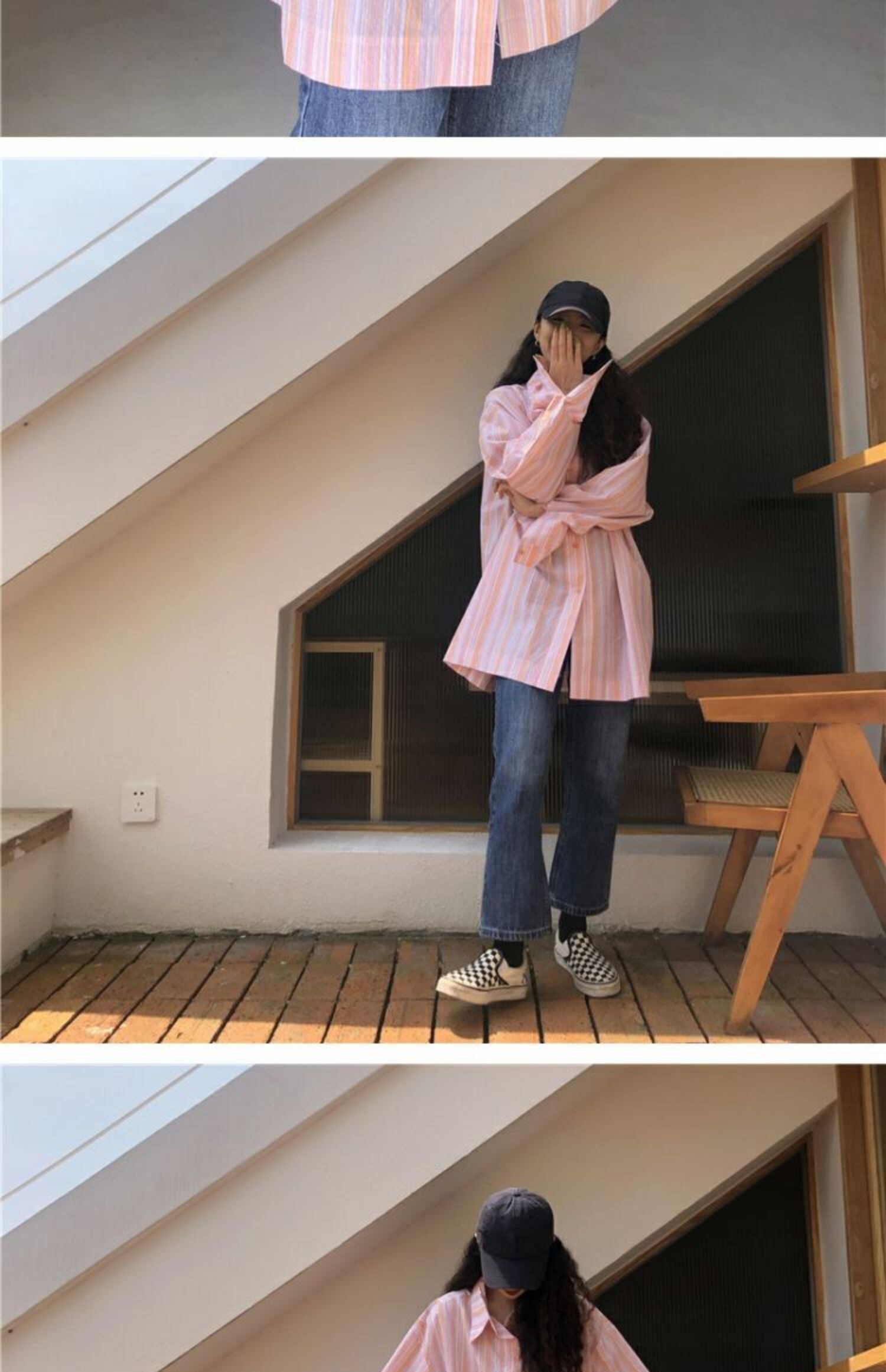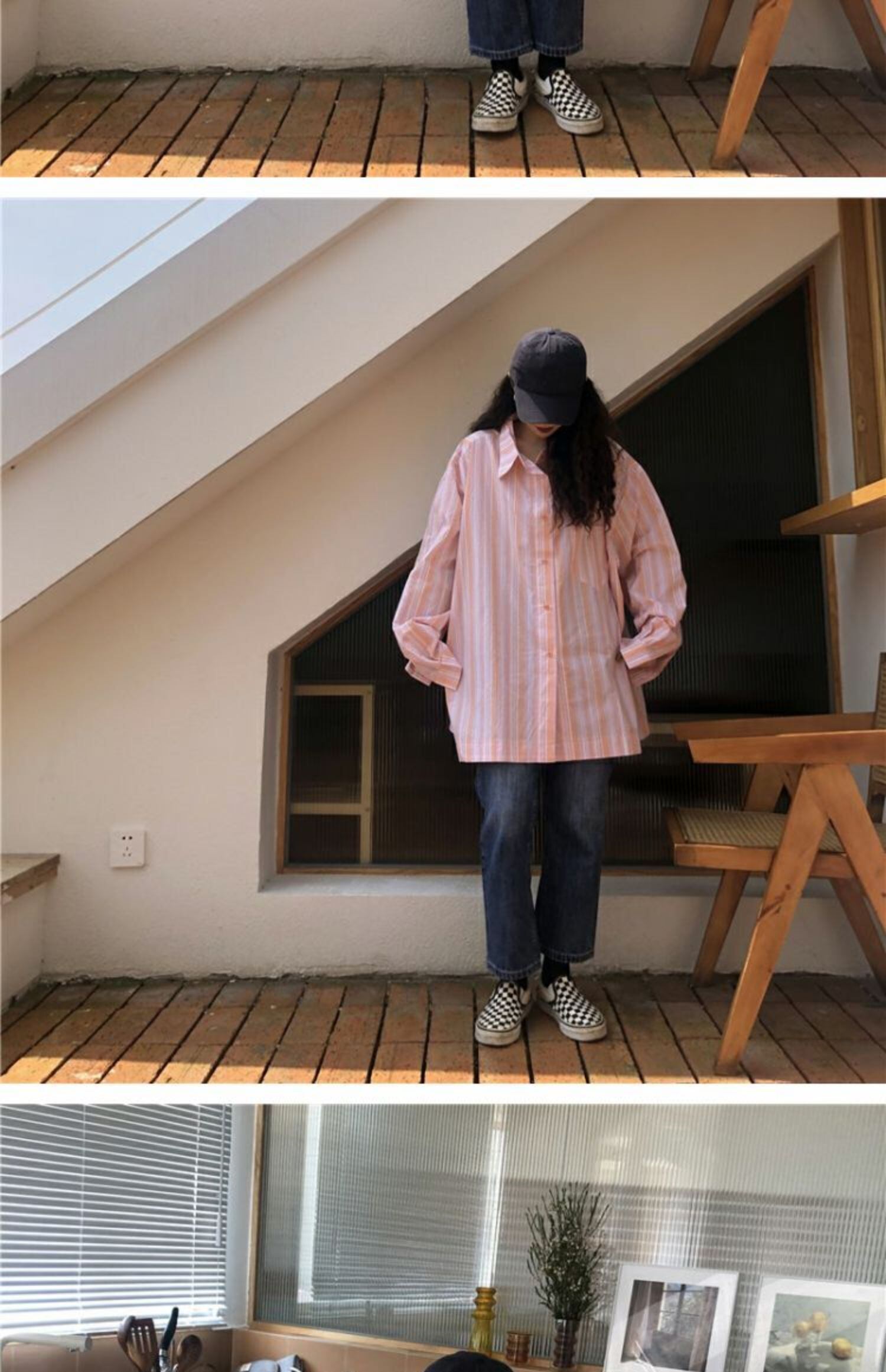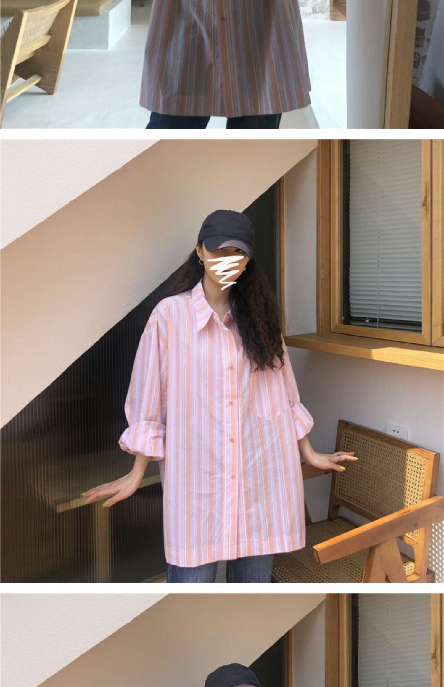 トップス サマーストライプルーズスプリングシャツ レディース ロング 春物 夏物 萌量不足25827832257