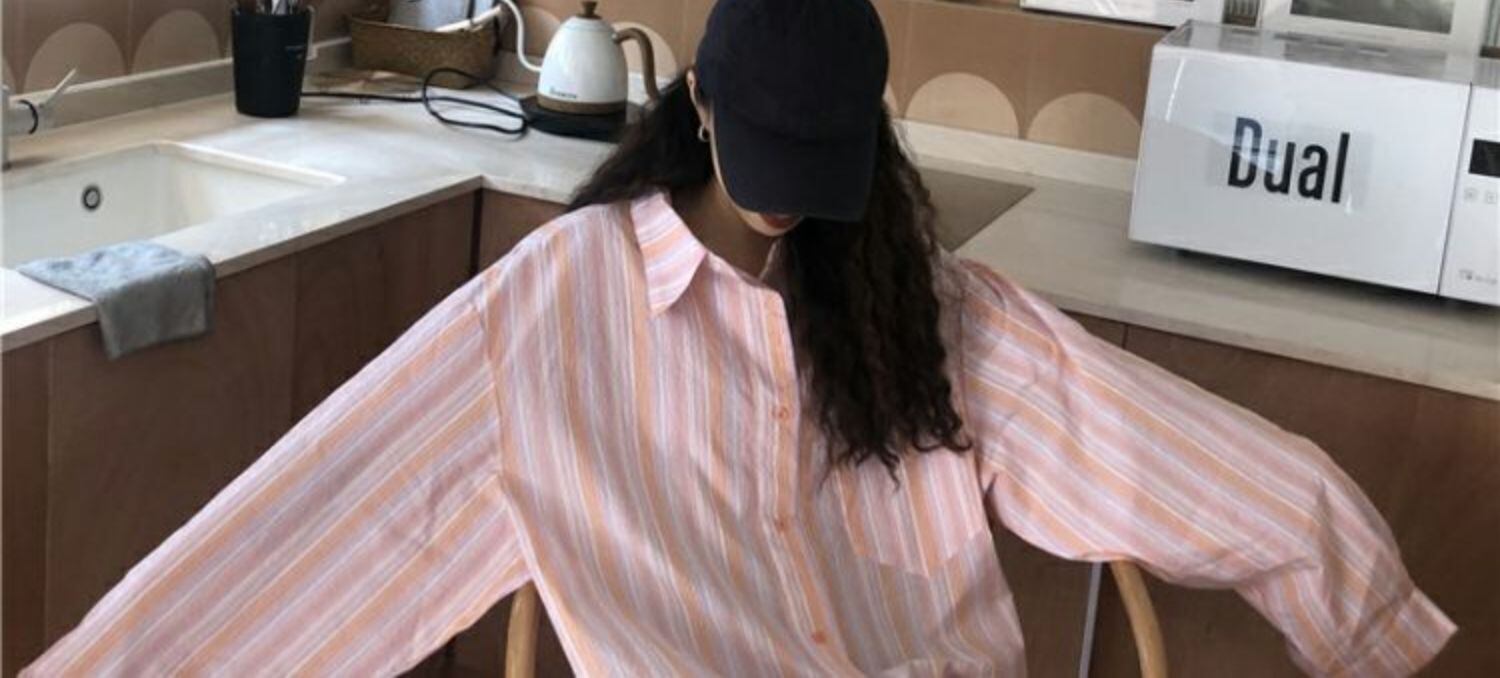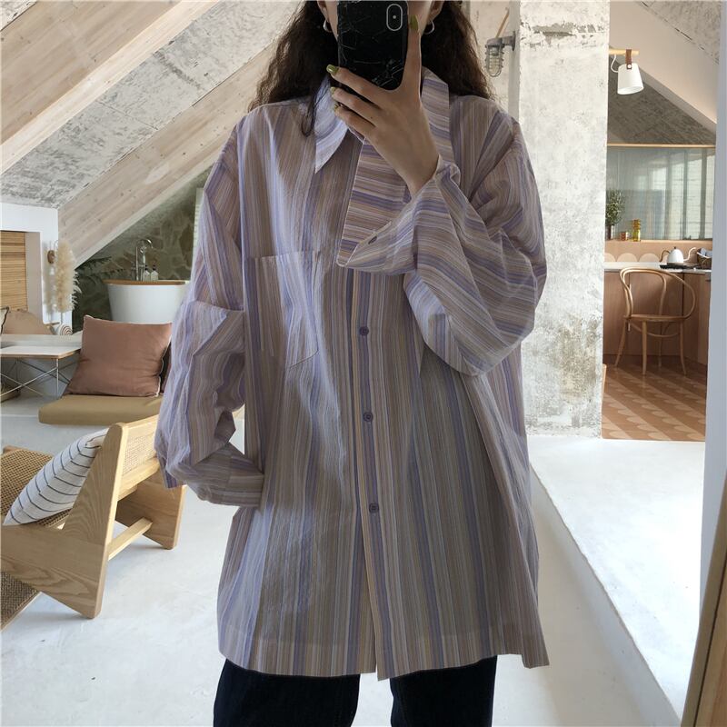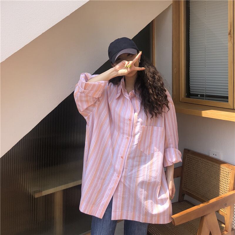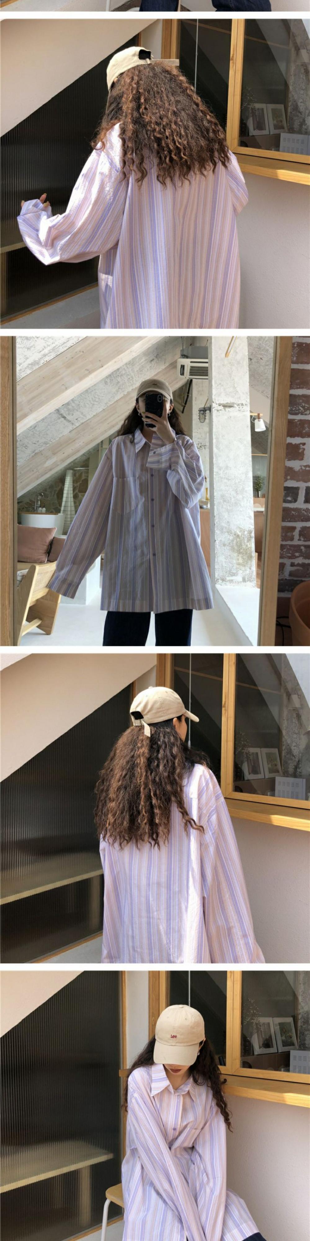 トップス サマーストライプルーズスプリングシャツ レディース ロング 春物 夏物 萌量不足25827832257
