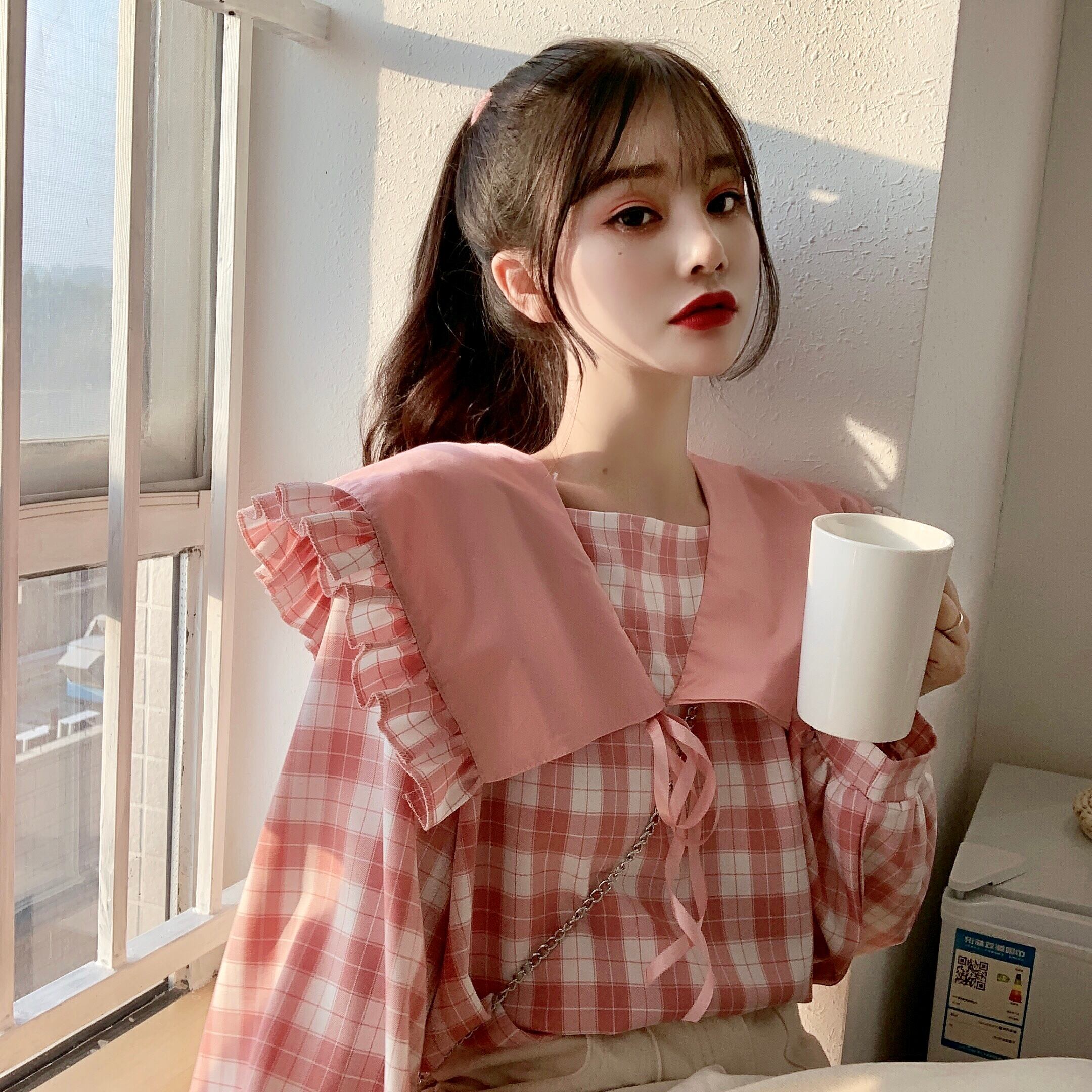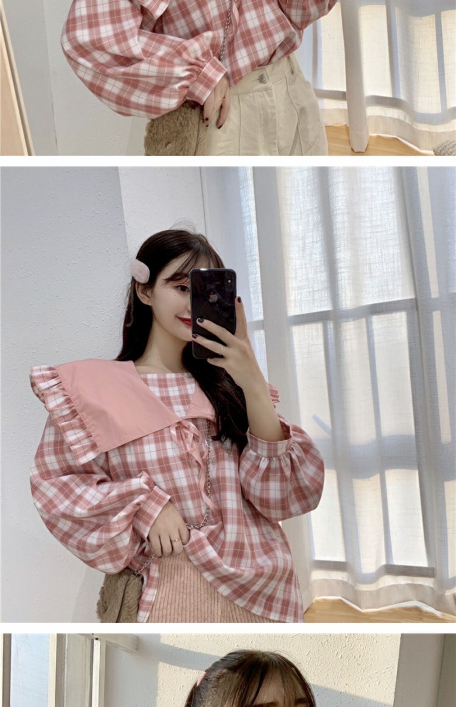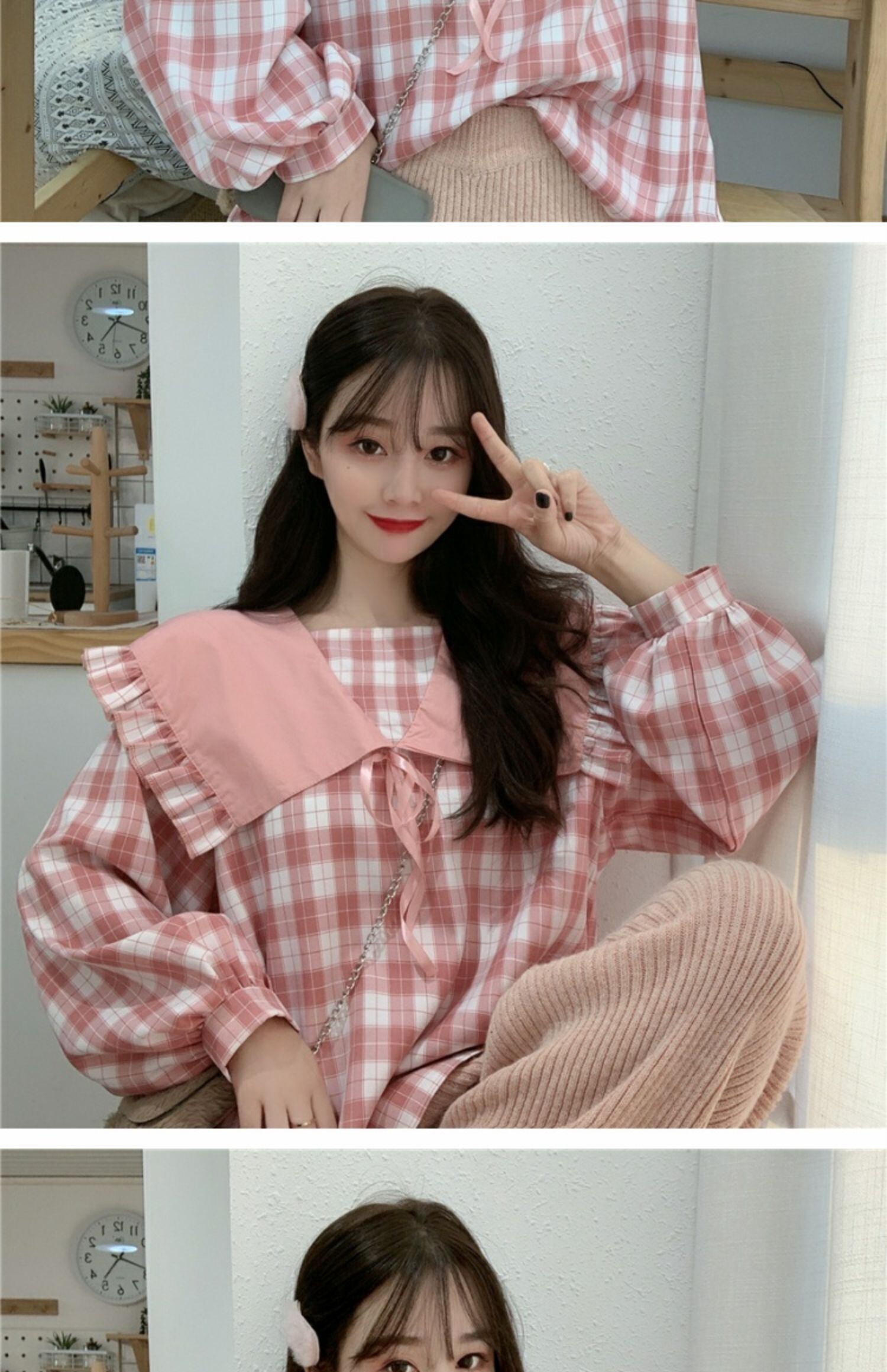 スプリングオータムトップス カラーシャツ 長袖スリーブ ロング 大人ガーリー スウィート キュート カジュアル 春物 秋物 萌量不足33990263150