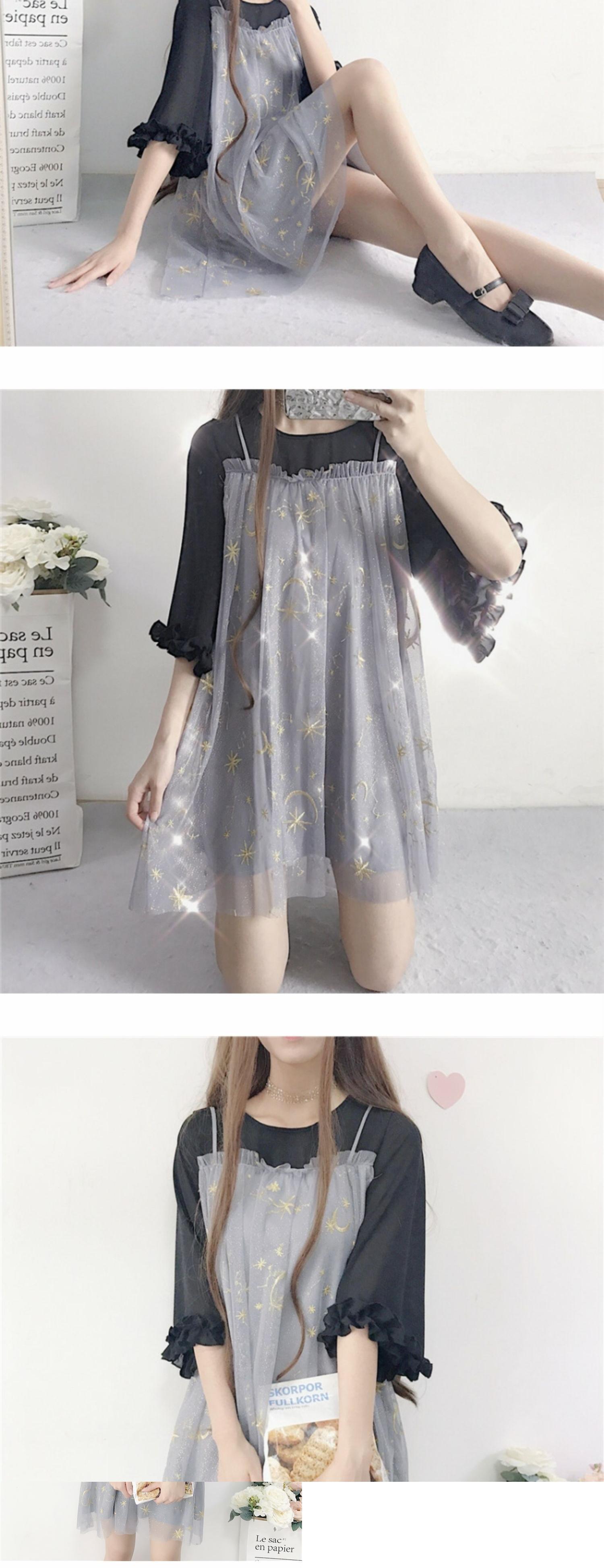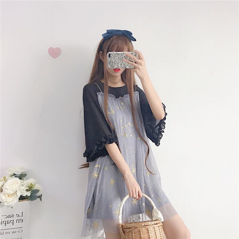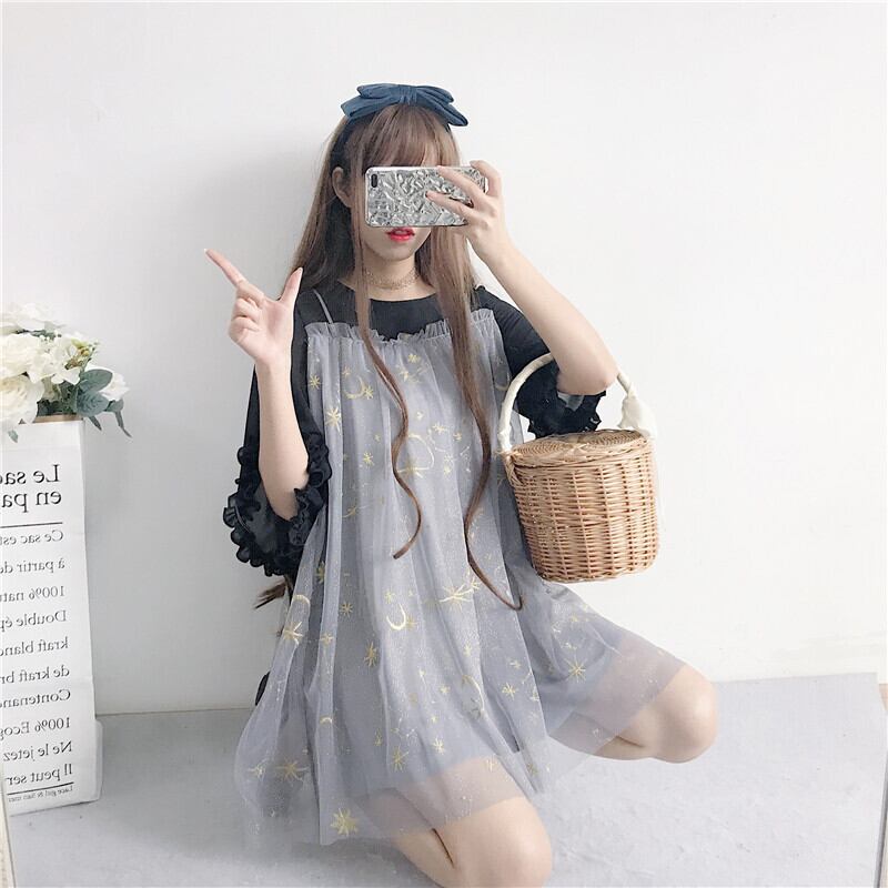 スカート サマースタイルルーズメッシュドレス 大人ガーリー スウィート キュート カジュアル 夏物 ステッチ 萌量不足40546668566