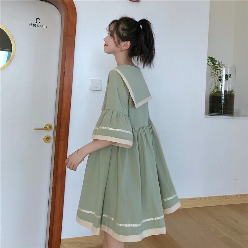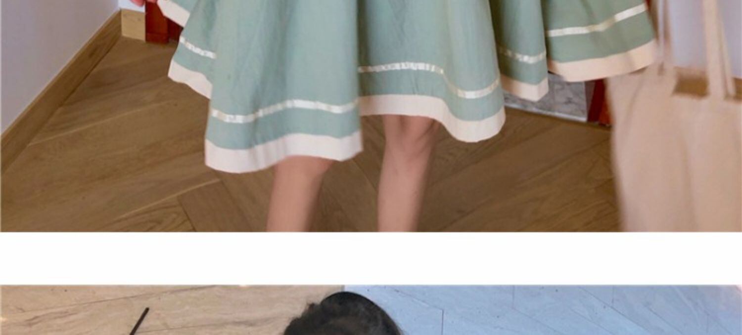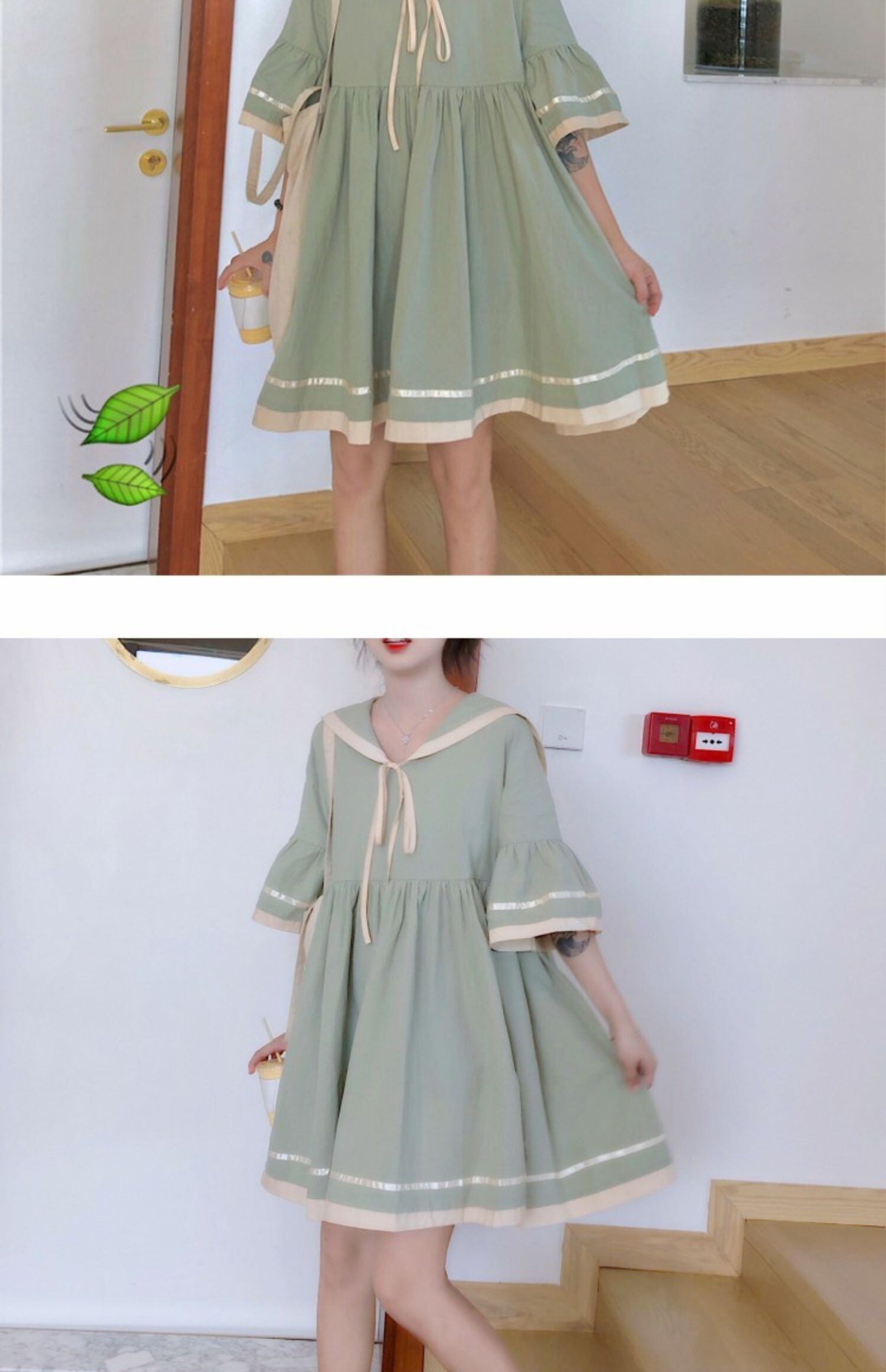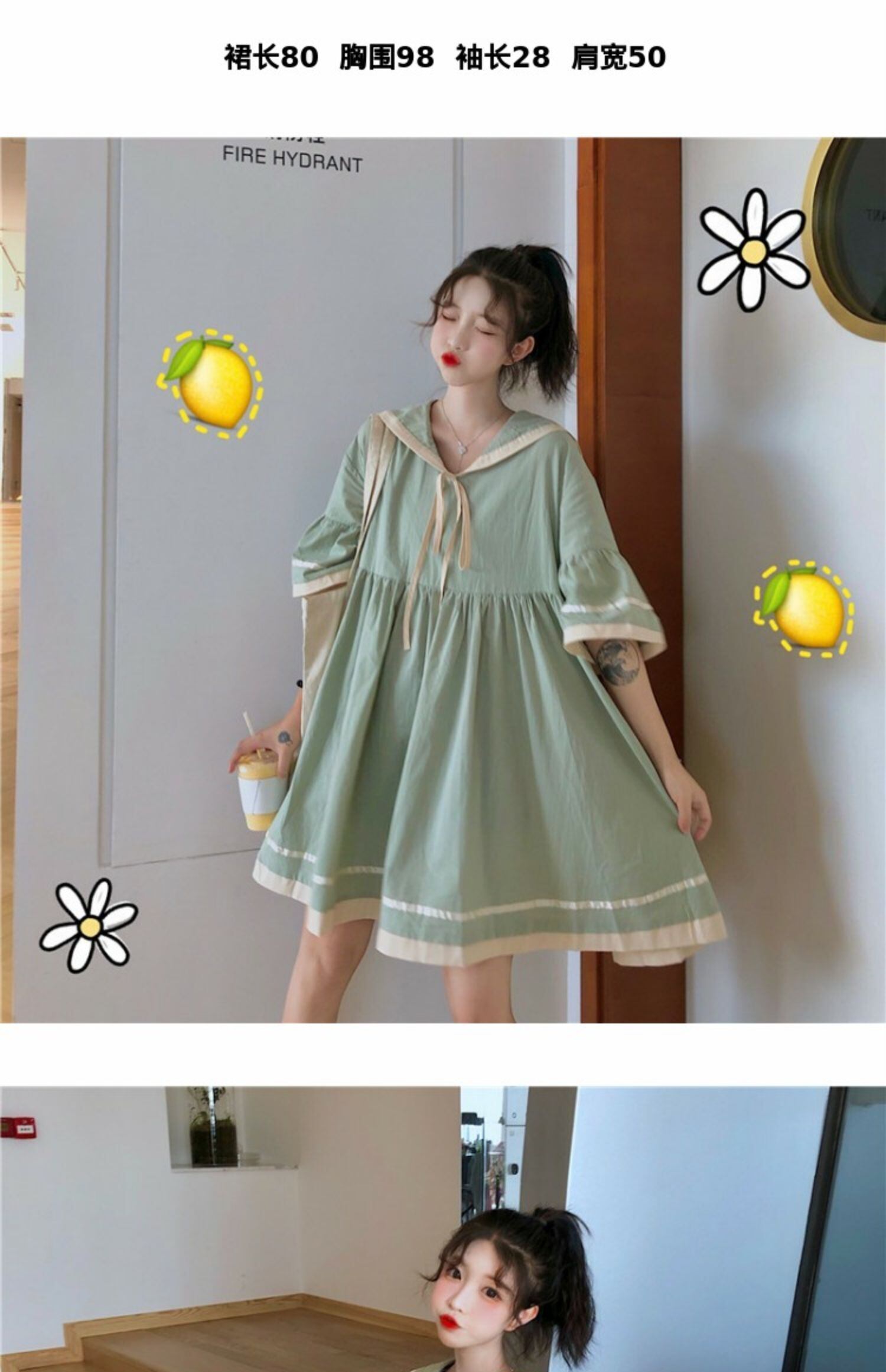 ドレス サマーネイビーカラースリーブスカート 大人ガーリー スウィート キュート カジュアル 夏物 萌量不足25009877680