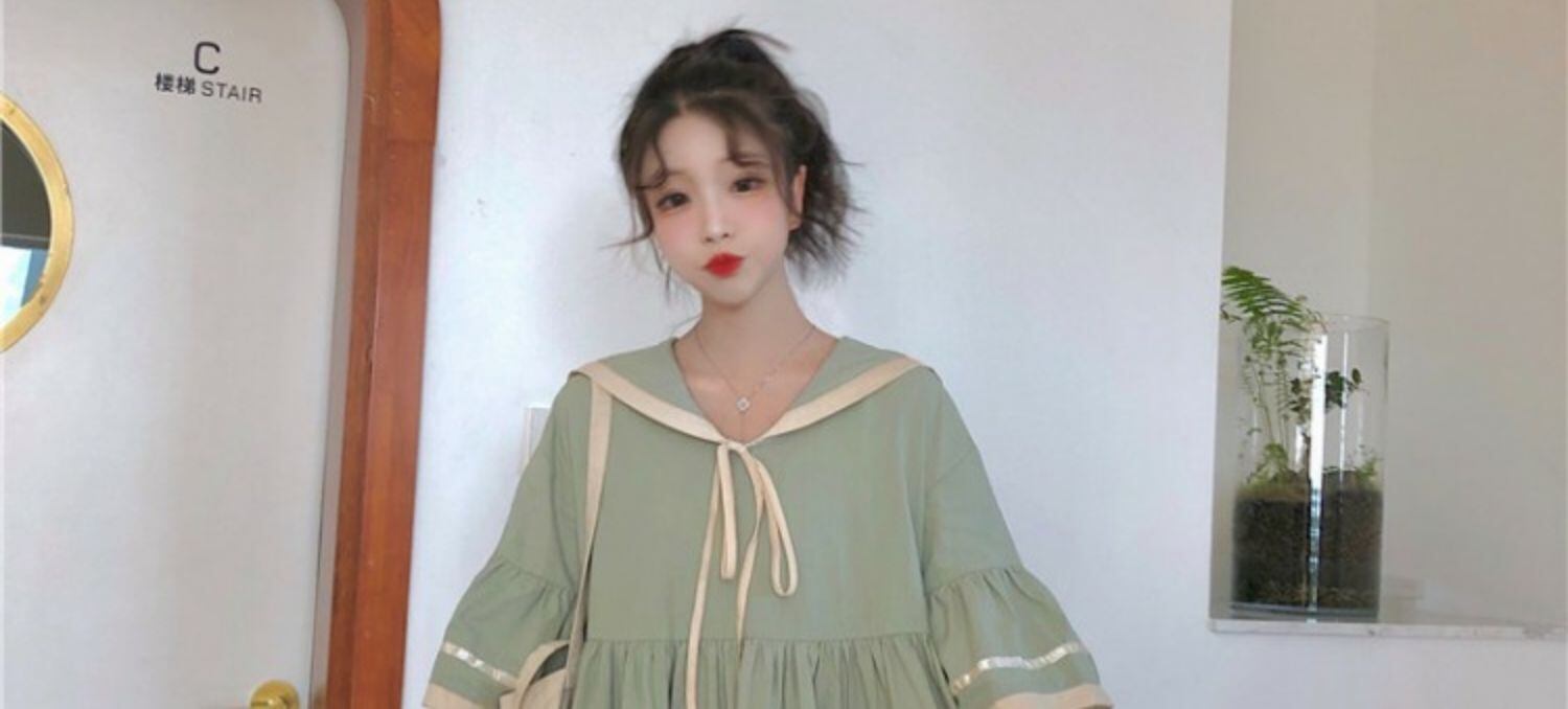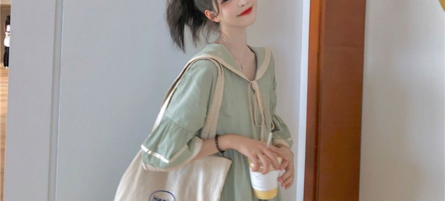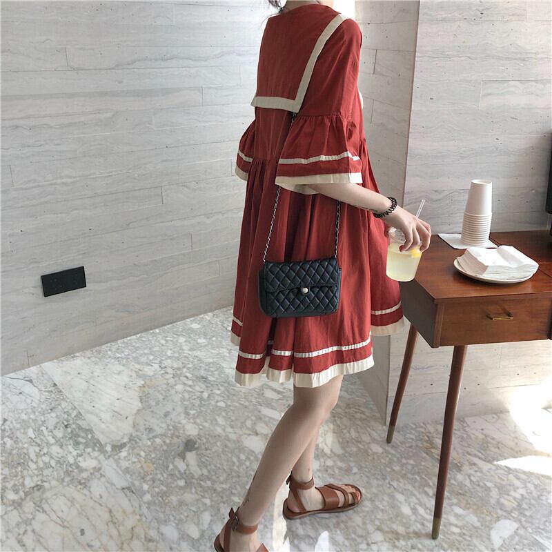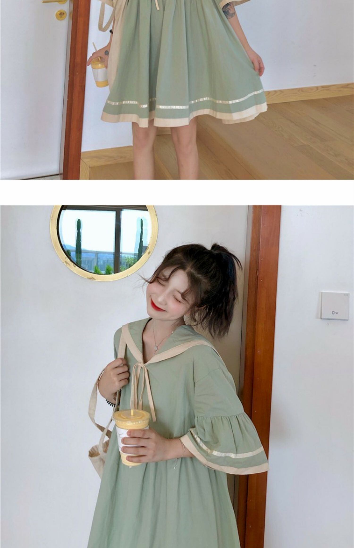 ドレス サマーネイビーカラースリーブスカート 大人ガーリー スウィート キュート カジュアル 夏物 萌量不足25009877680