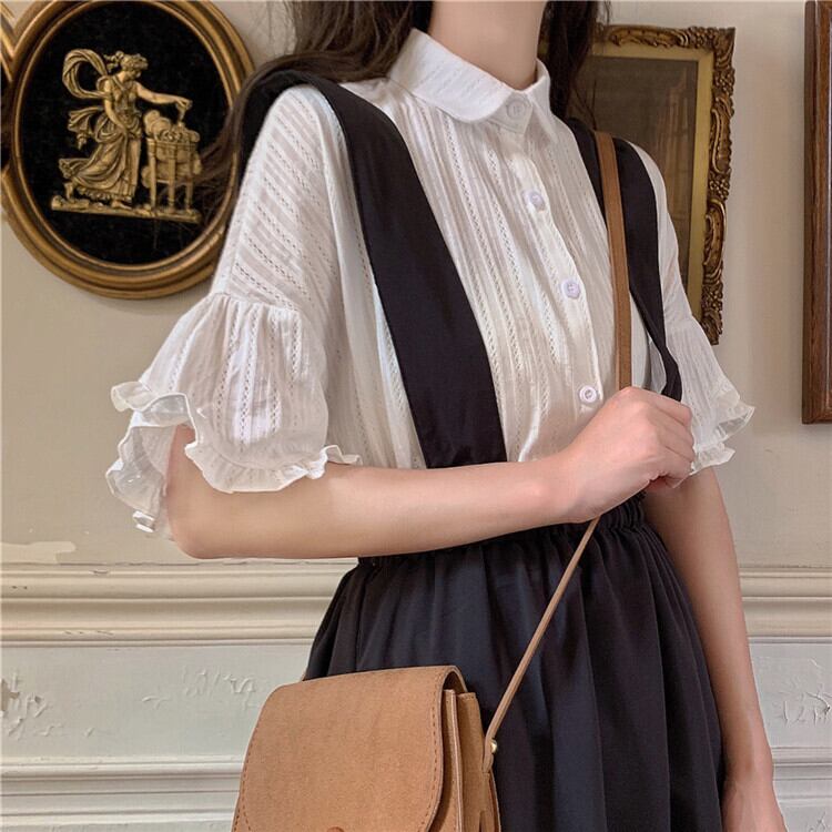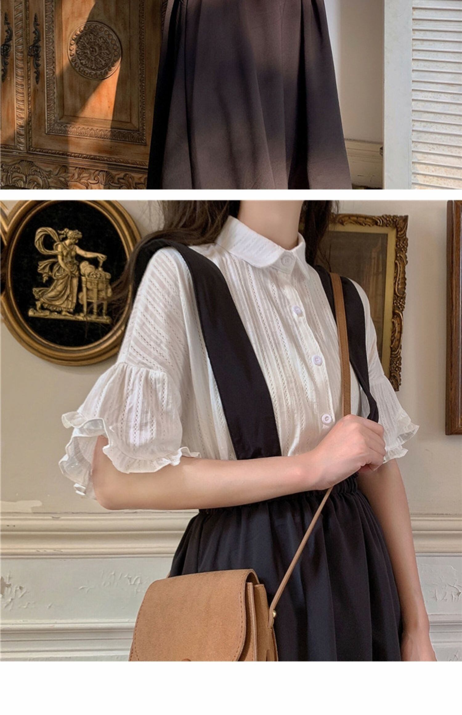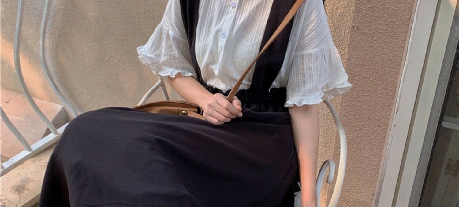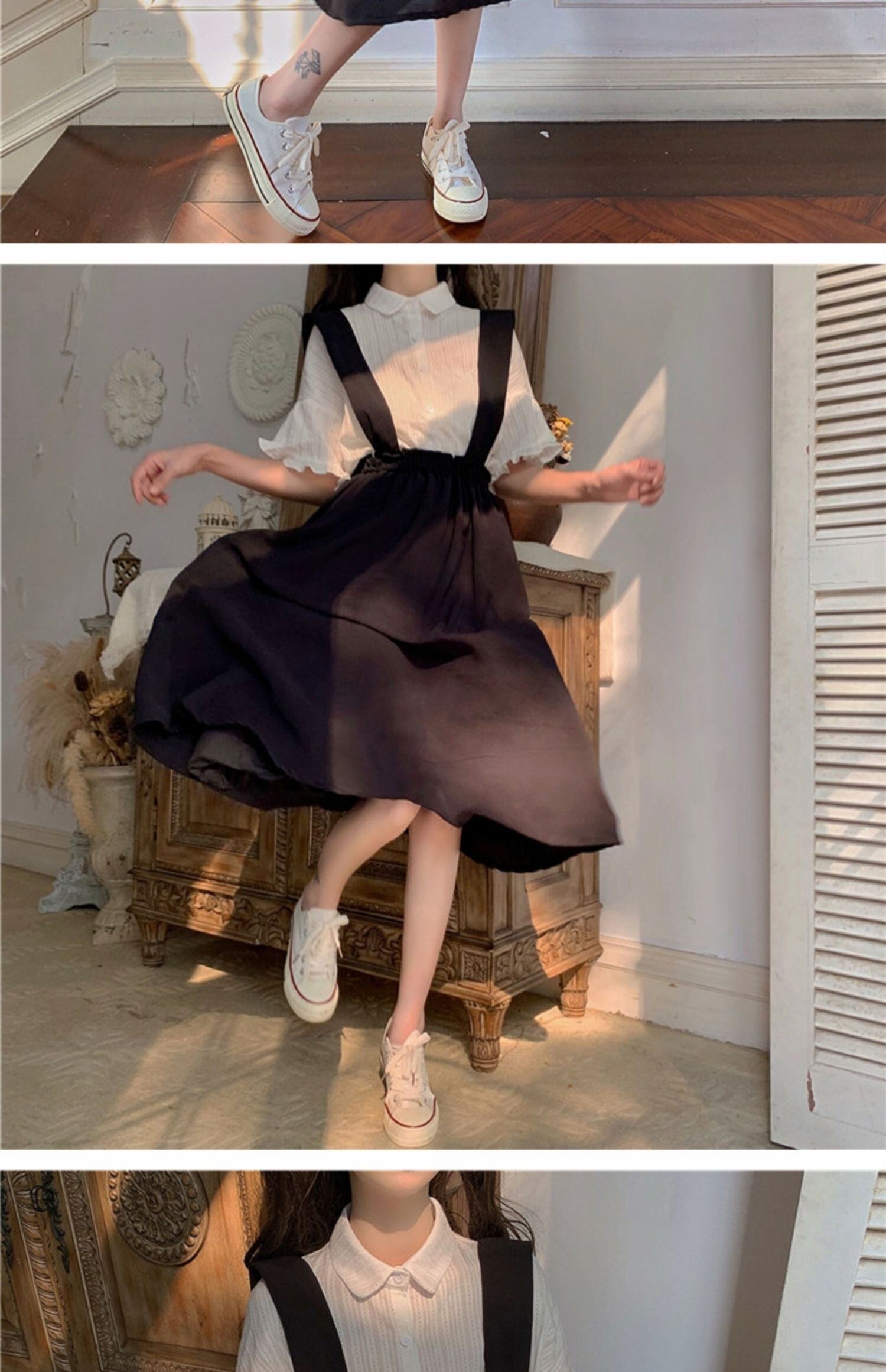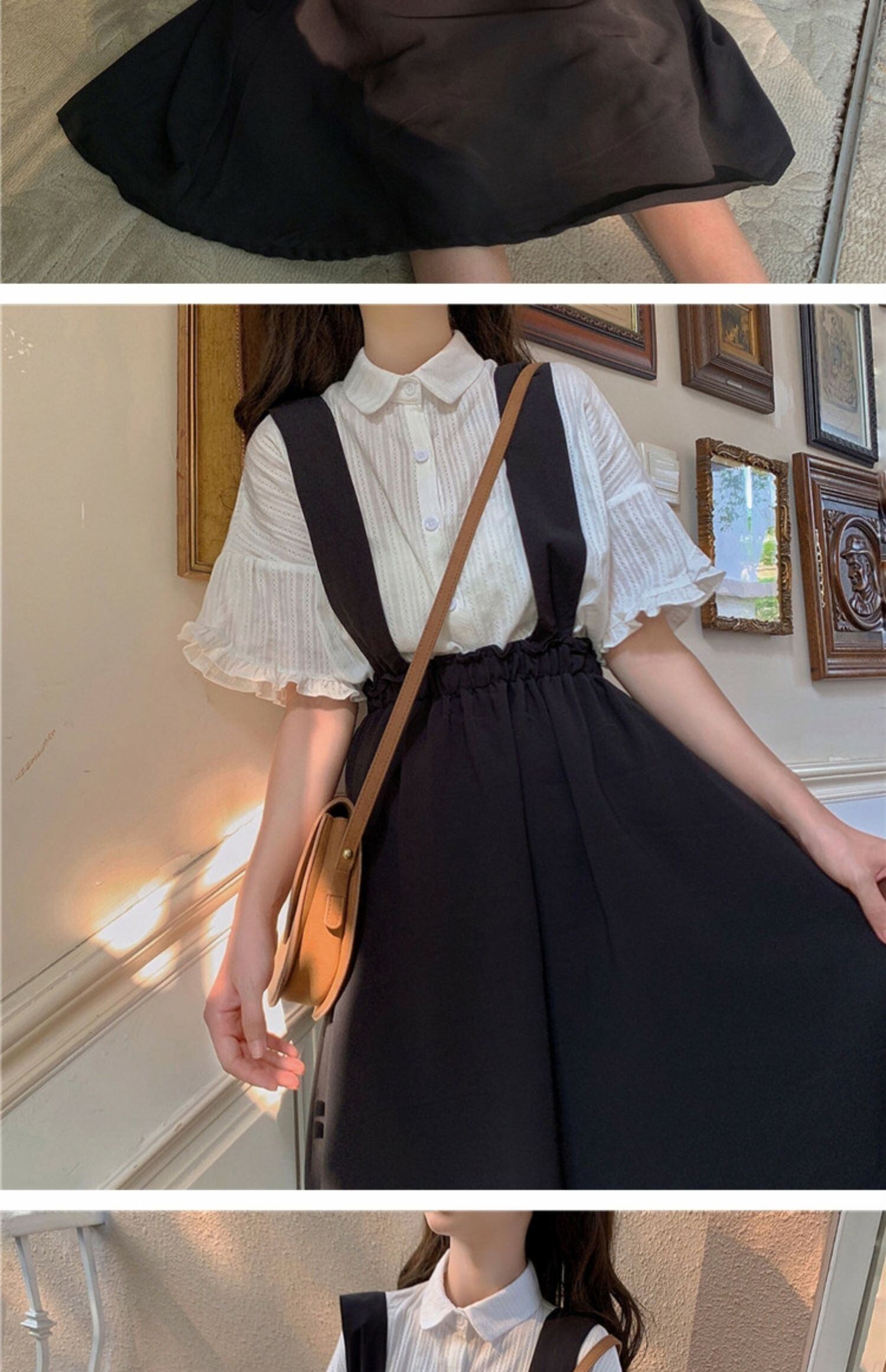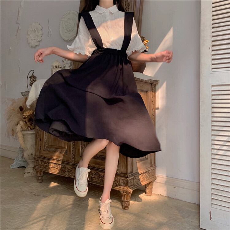 色:白いシャツ(シングルピース),黒ストラップスカート(ワンピース)