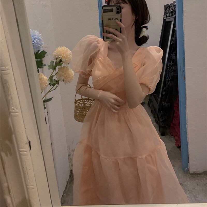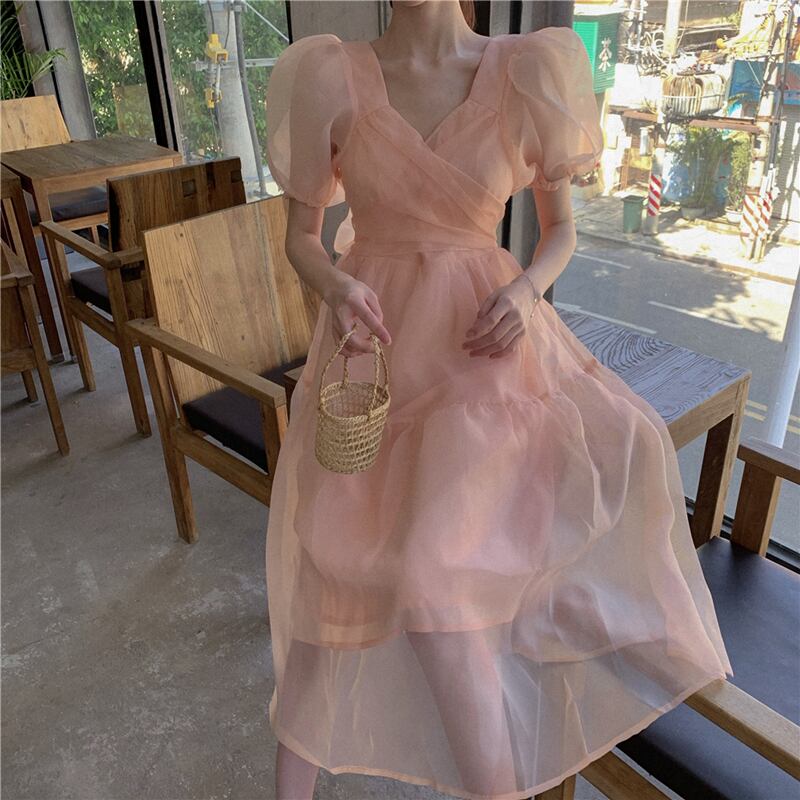 サマースタイルスカート リボンスリーブドレス レディース 大人ガーリー スウィート キュート カジュアル 夏物 萌量不足56477575210