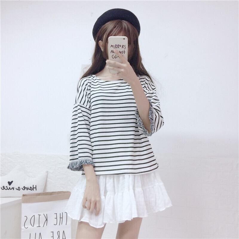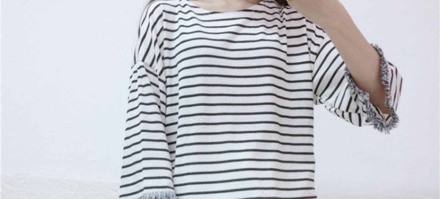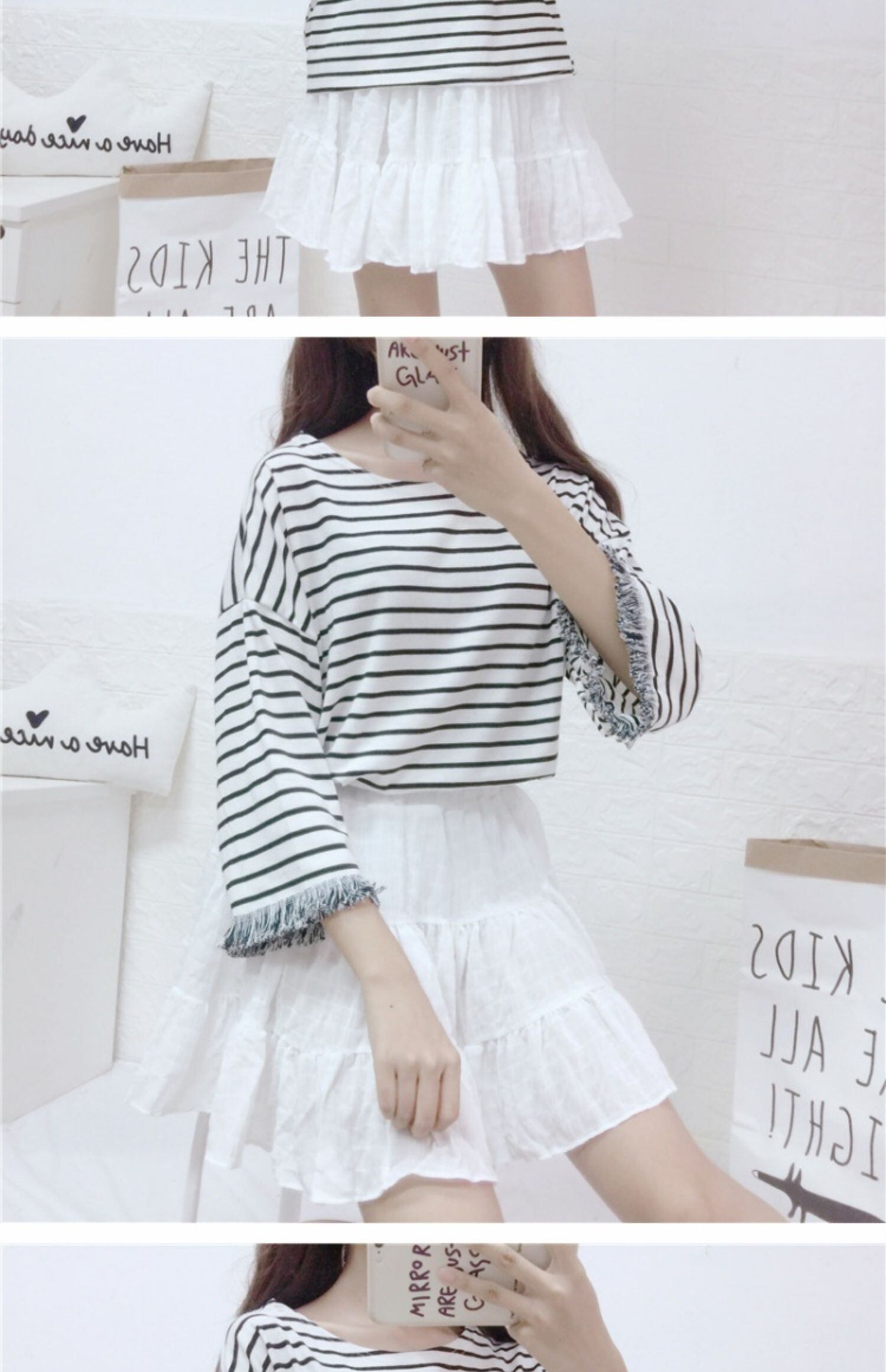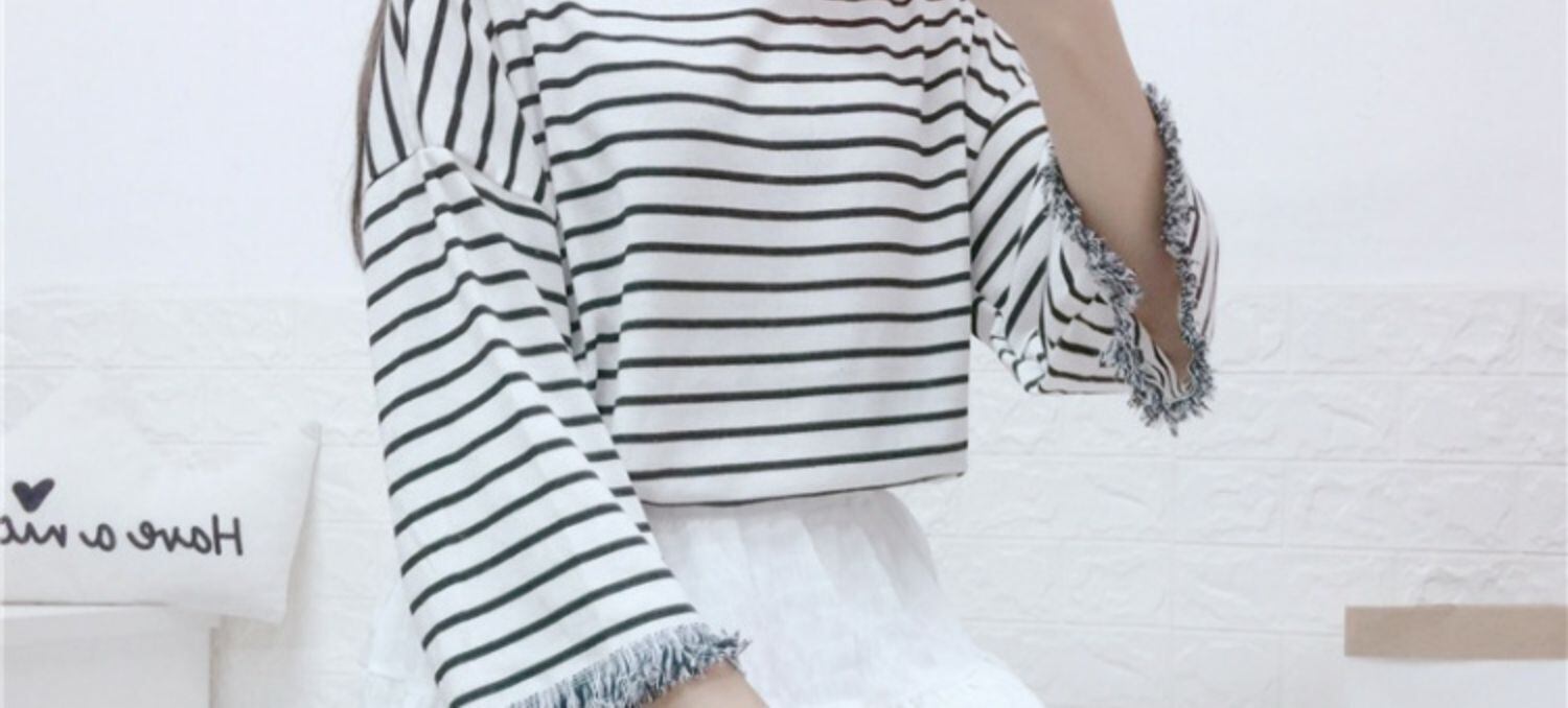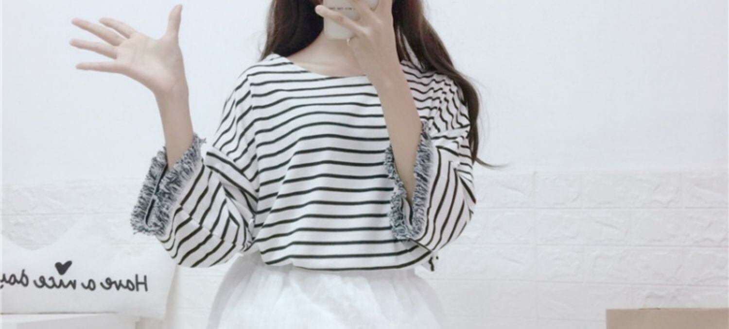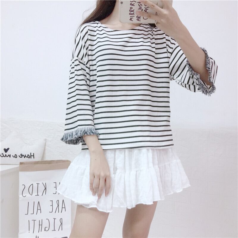 サマールーズ薄手ストライプラウンドネックTシャツ シャツ トップス 夏物 Oネック 萌量不足76124139077