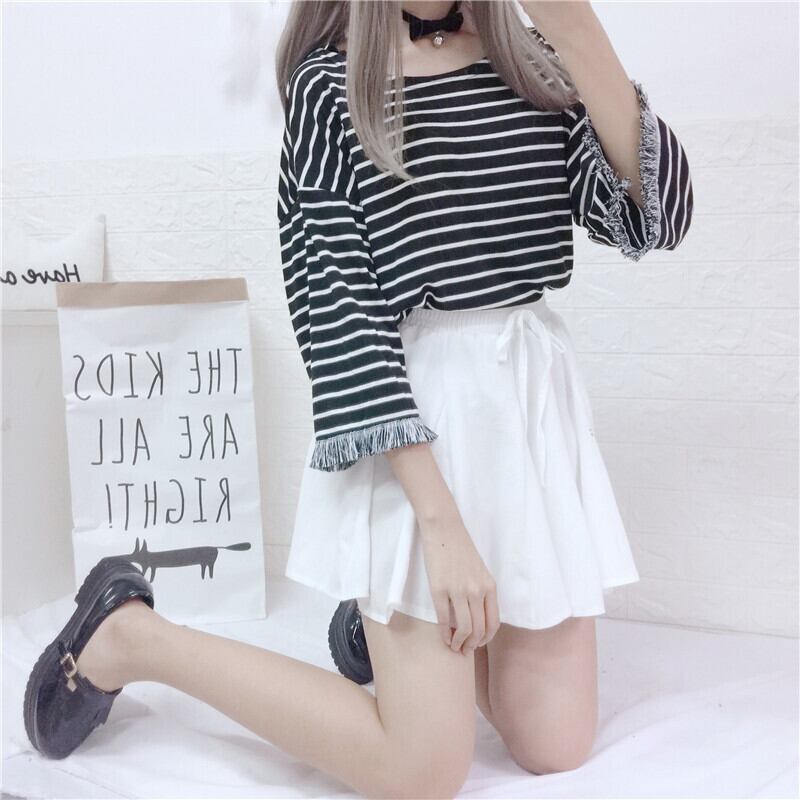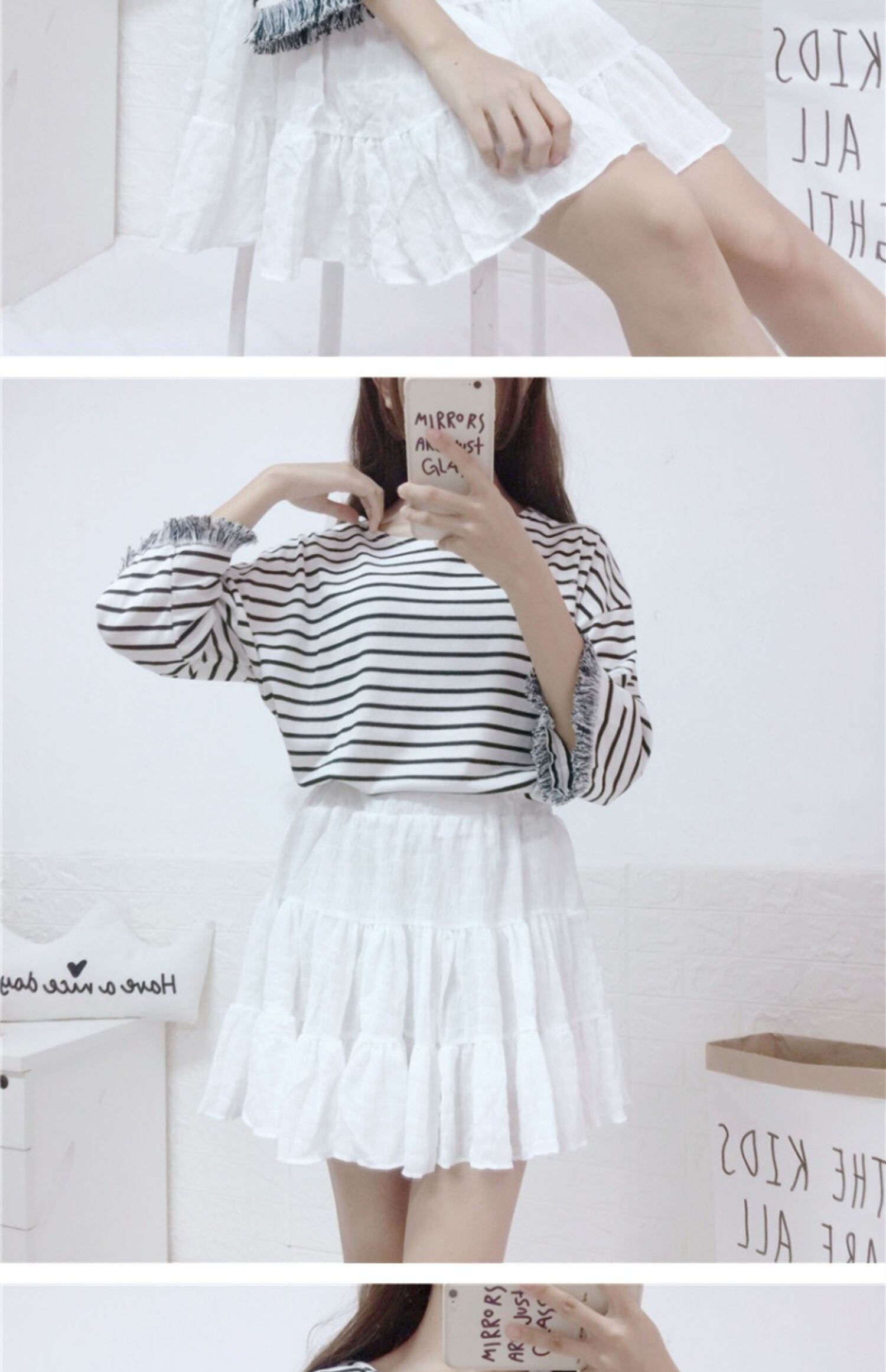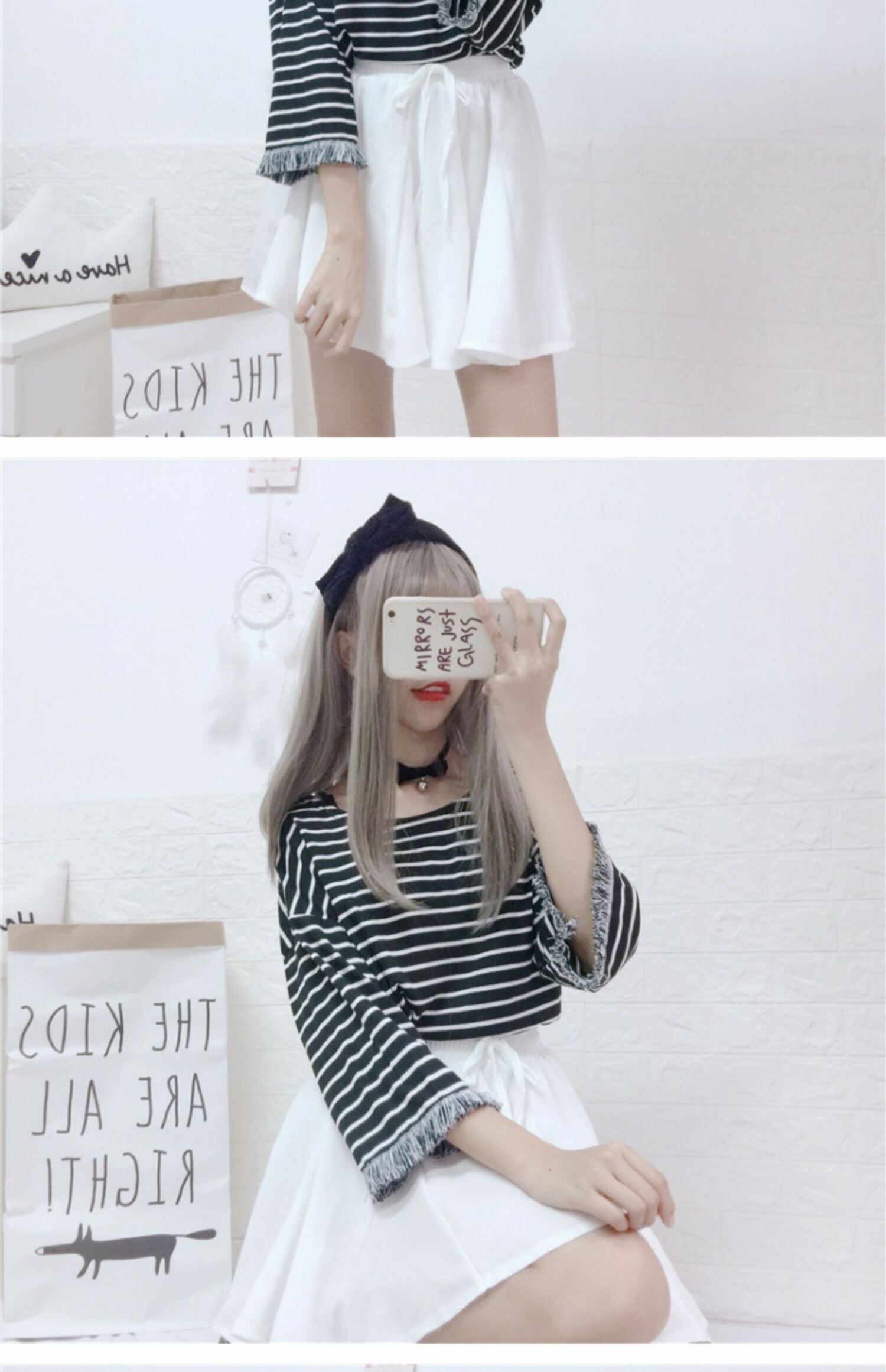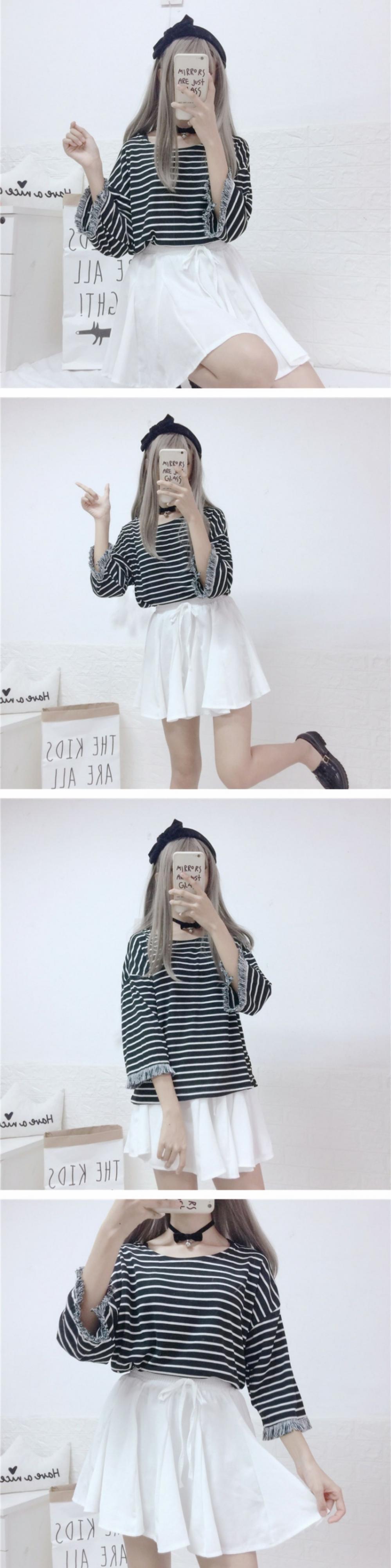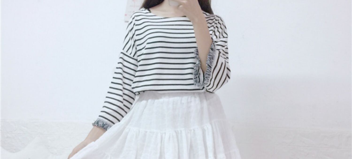 サマールーズ薄手ストライプラウンドネックTシャツ シャツ トップス 夏物 Oネック 萌量不足76124139077