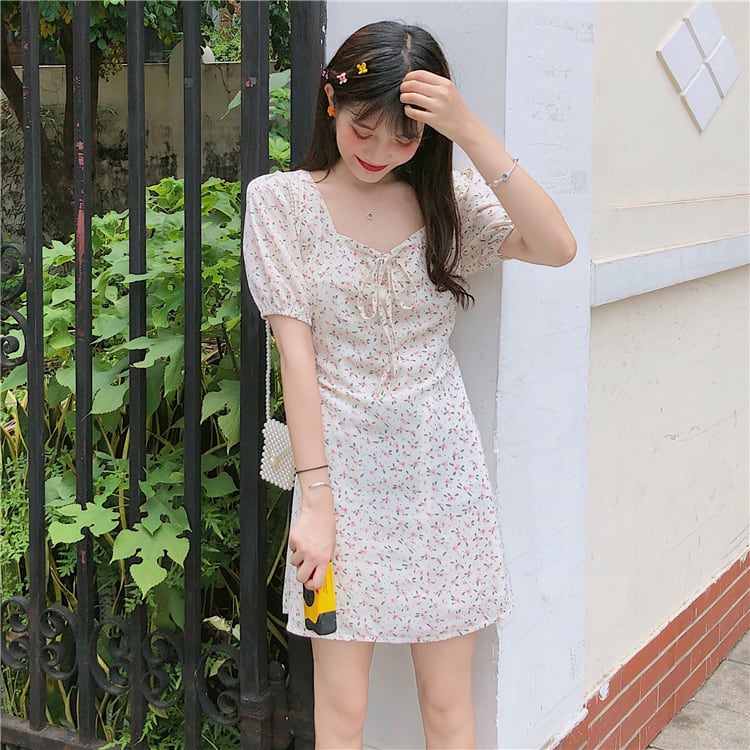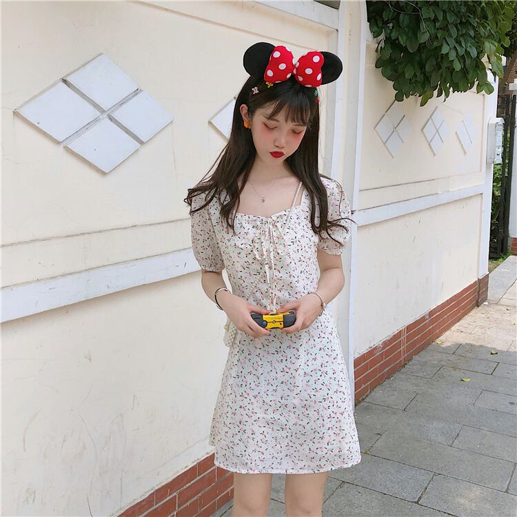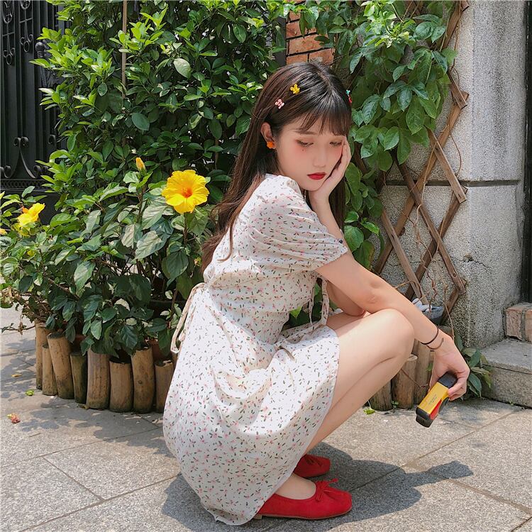 薄手フローラルスカート カラースタイルドレス サマー 夏物 花柄 スクウェア 萌量不足16920786477