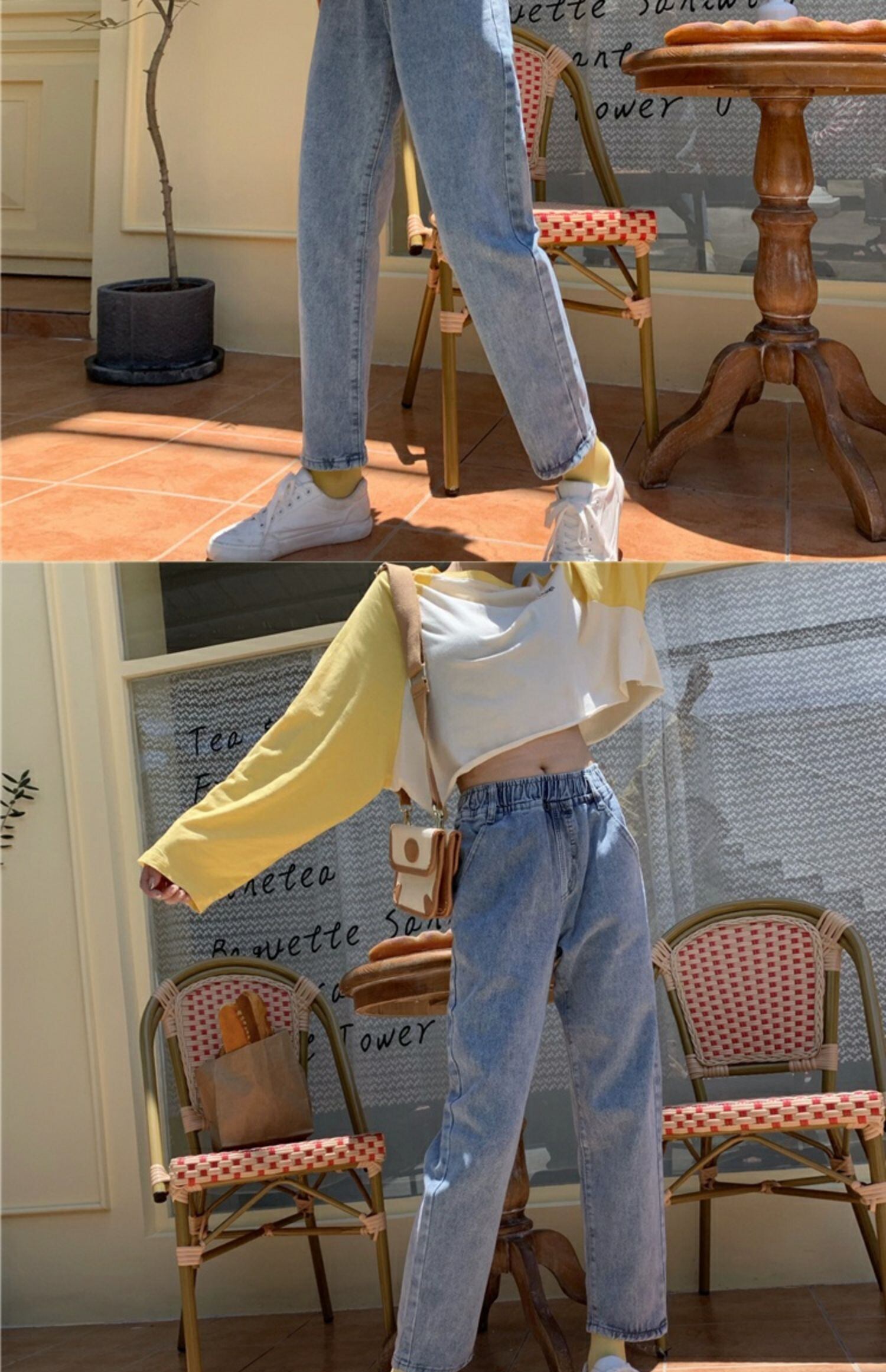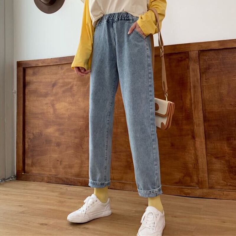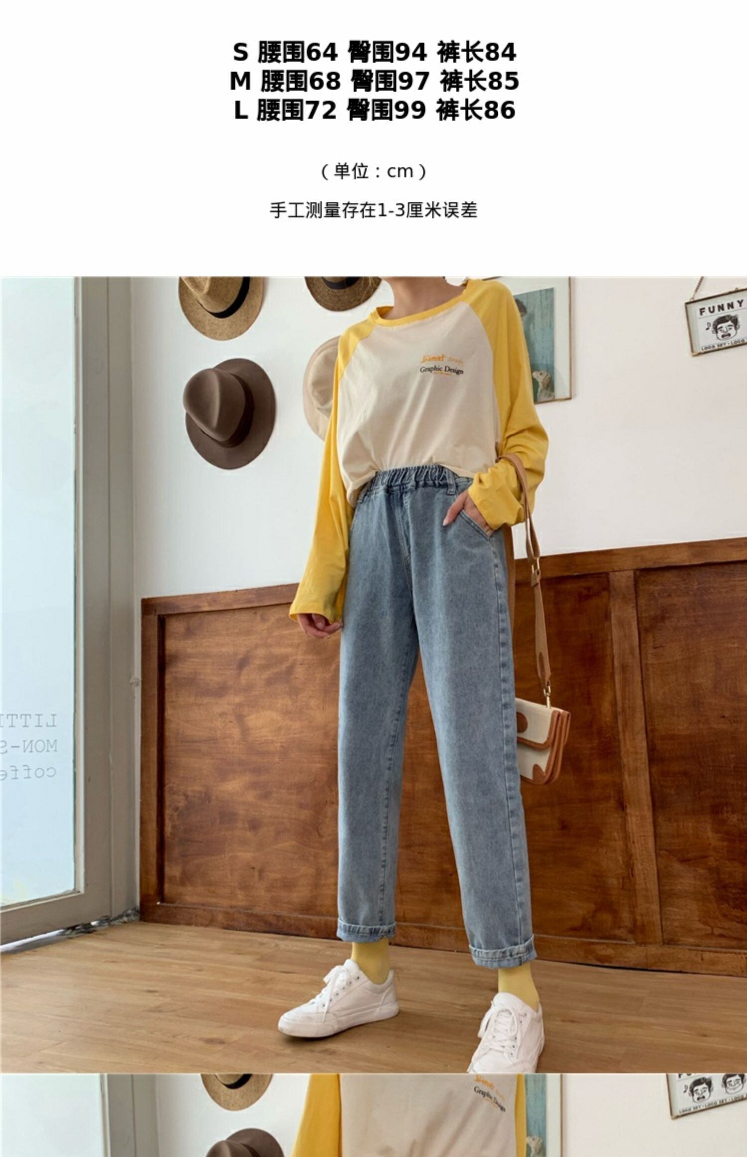 ウェストスリムストレッチジーンズ スプリングオータムルーズクロップドパンツ エラスティック 伸縮 春物 秋物 萌量不足26776360112
