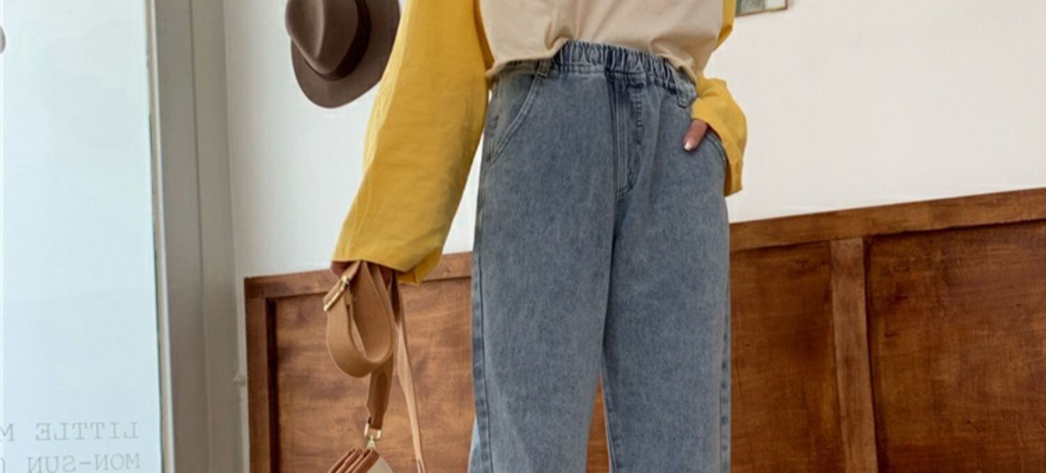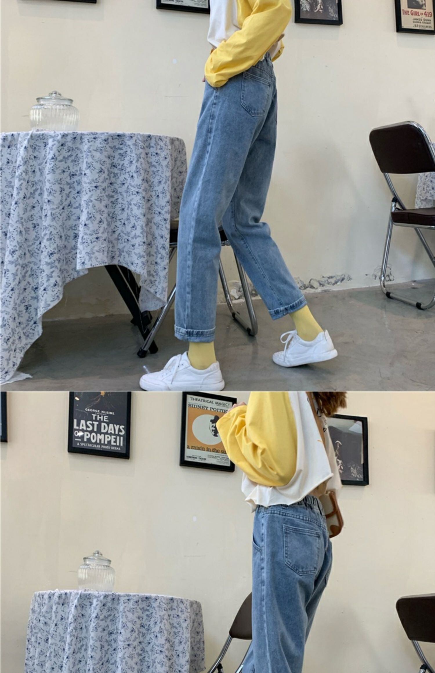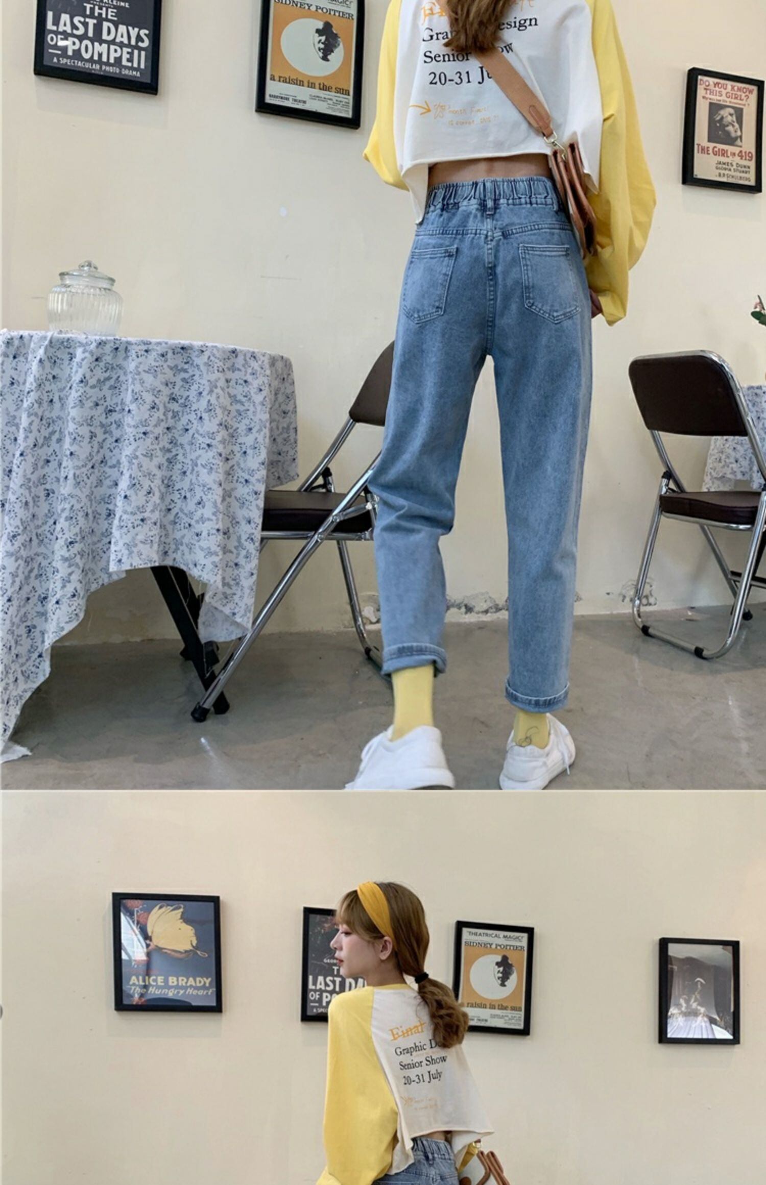 ウェストスリムストレッチジーンズ スプリングオータムルーズクロップドパンツ エラスティック 伸縮 春物 秋物 萌量不足26776360112
