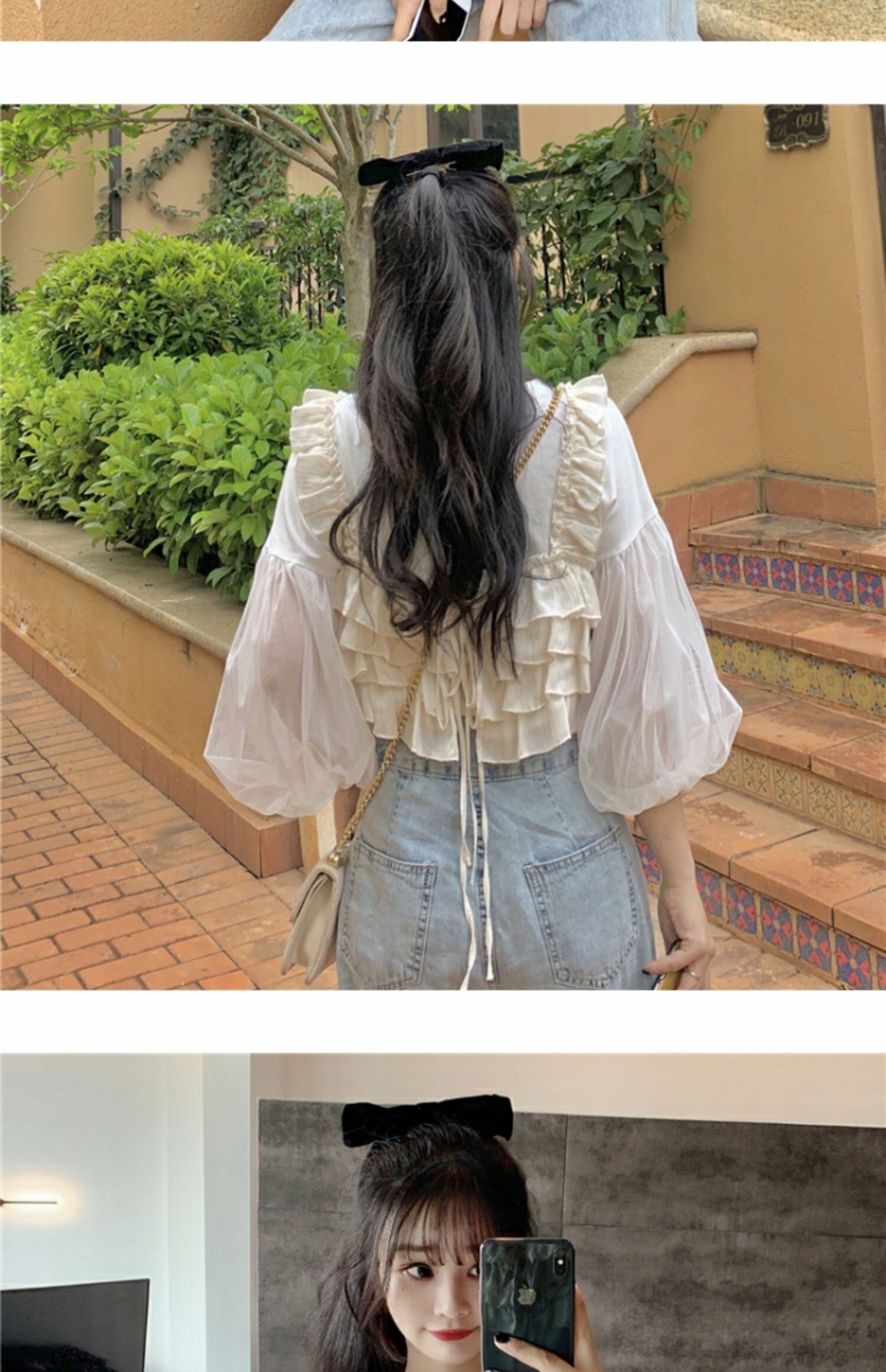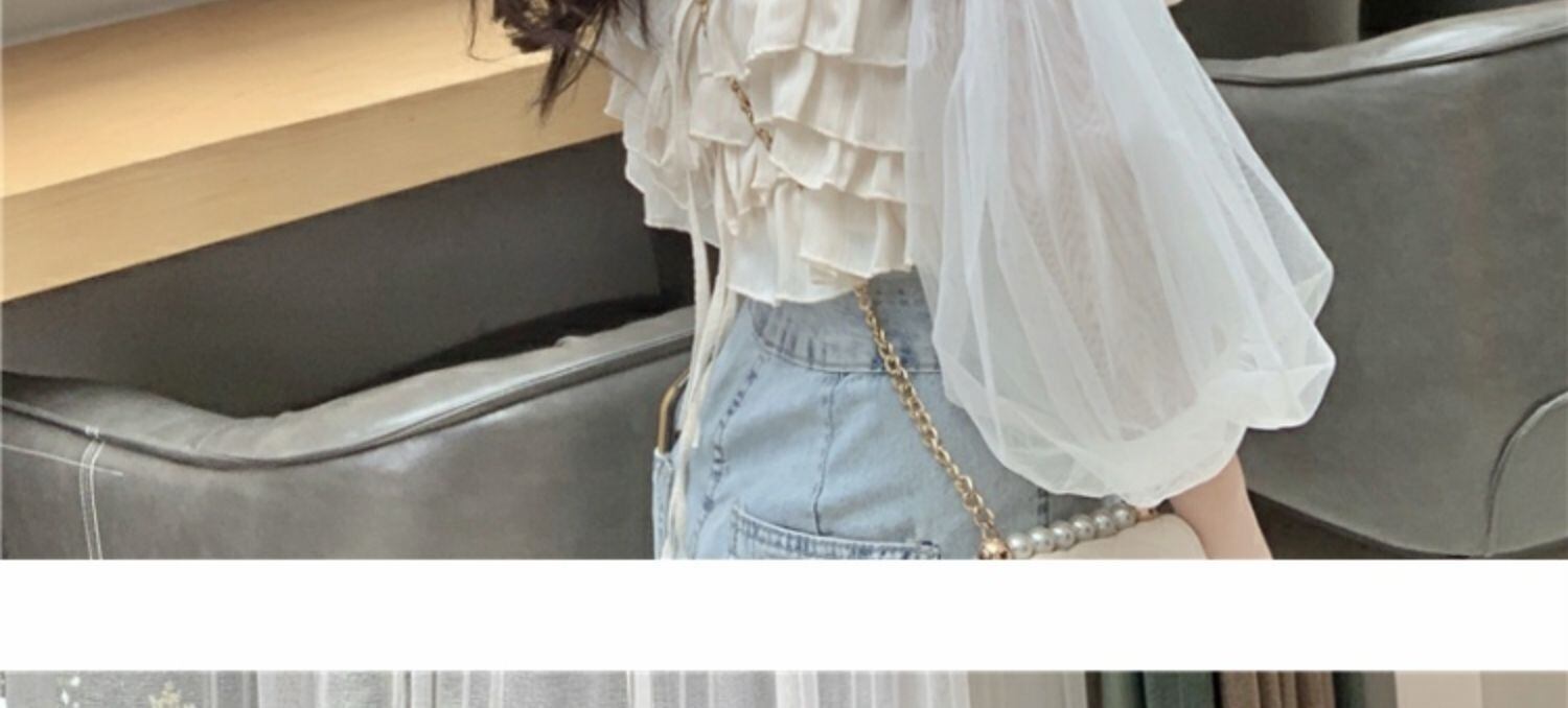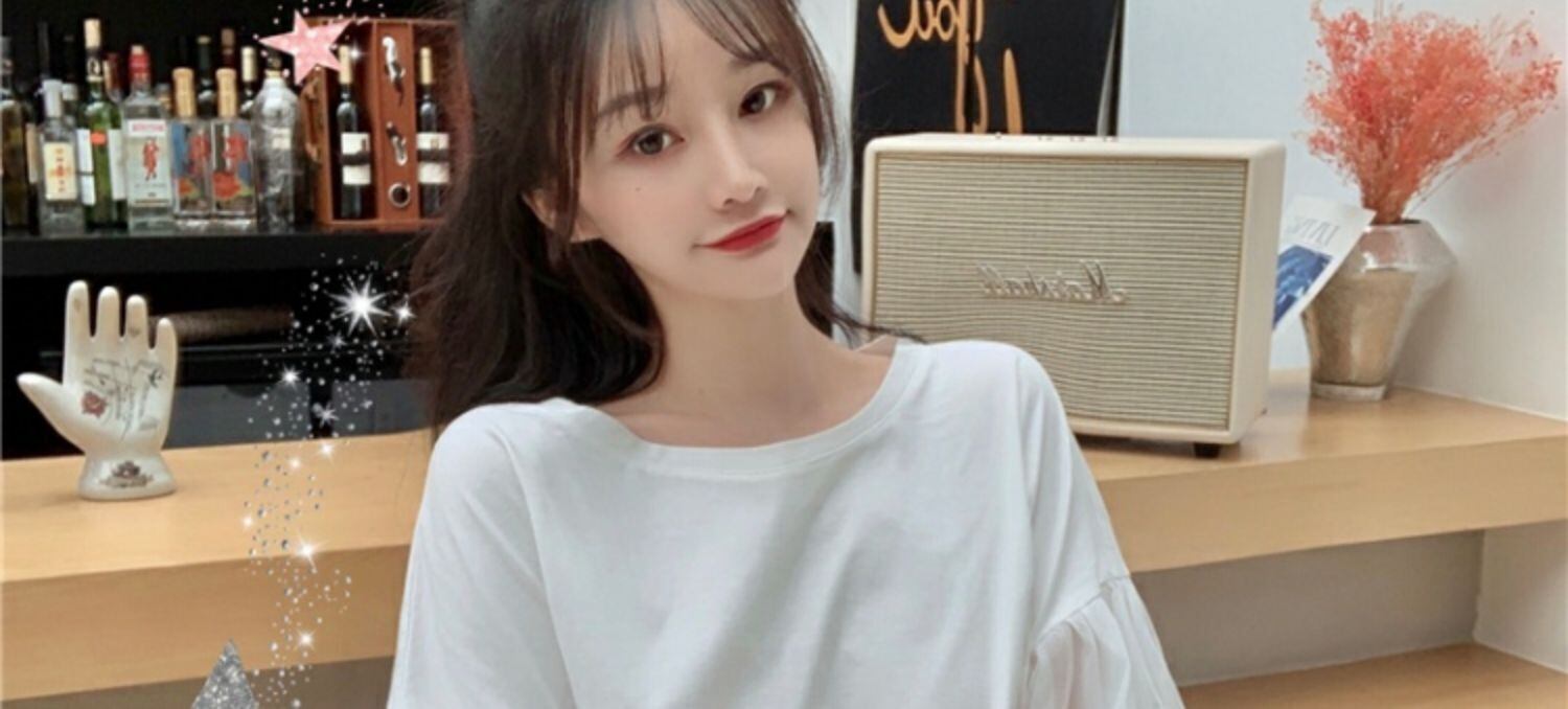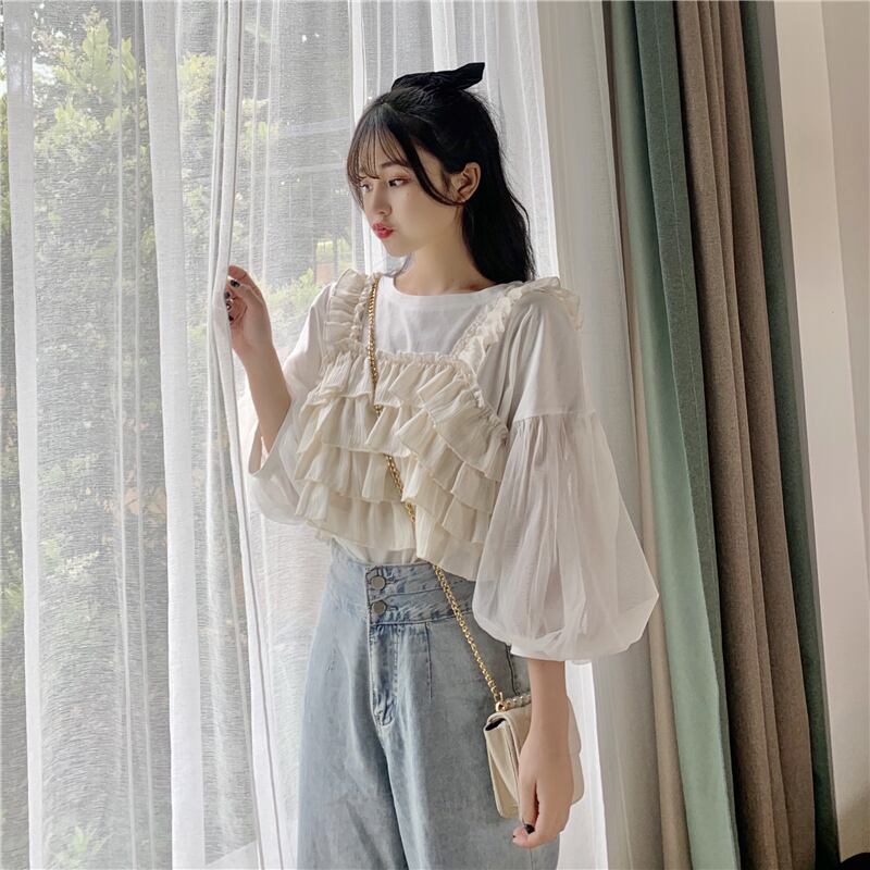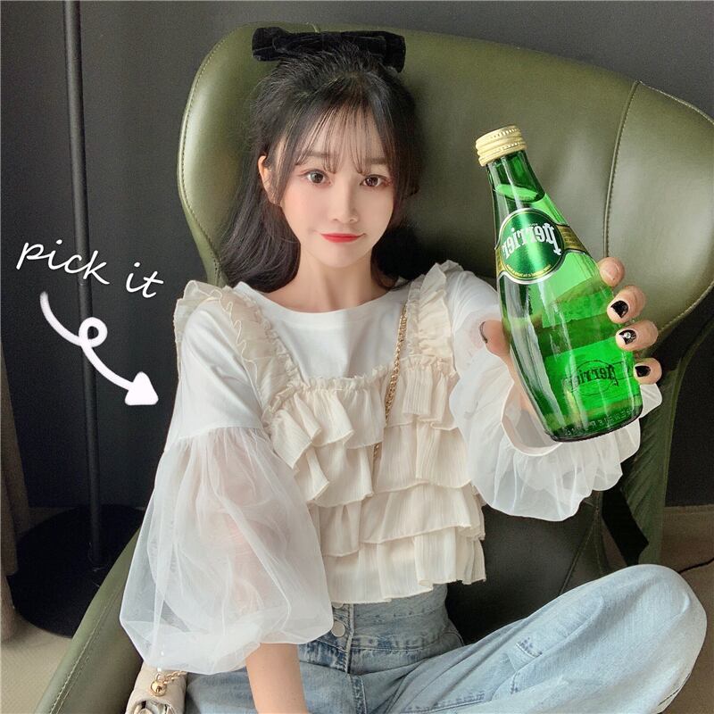 メッシュラウンドネックスリーブトップス サマーソリッド カラーTシャツ レディース ランタンスリーブ 夏物 Oネック ソリッドカラー ステッチ 萌量不足54892307557