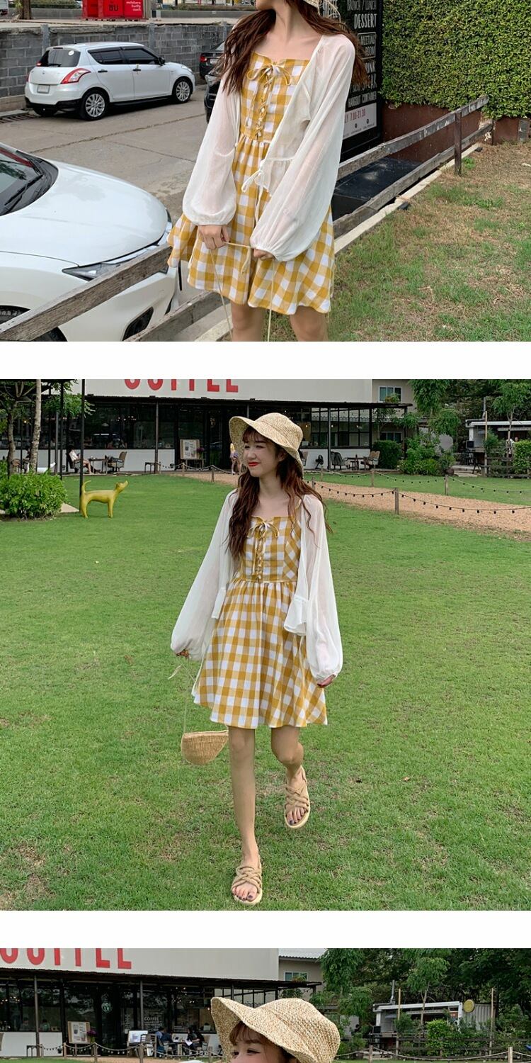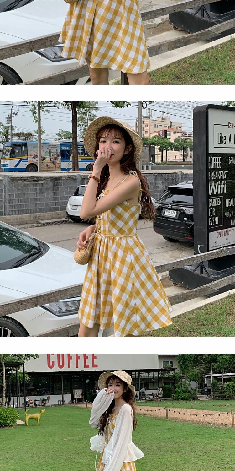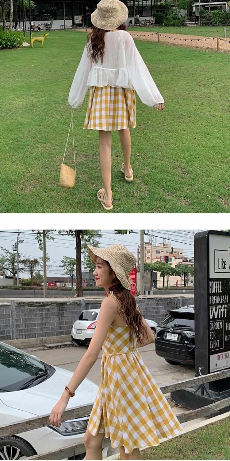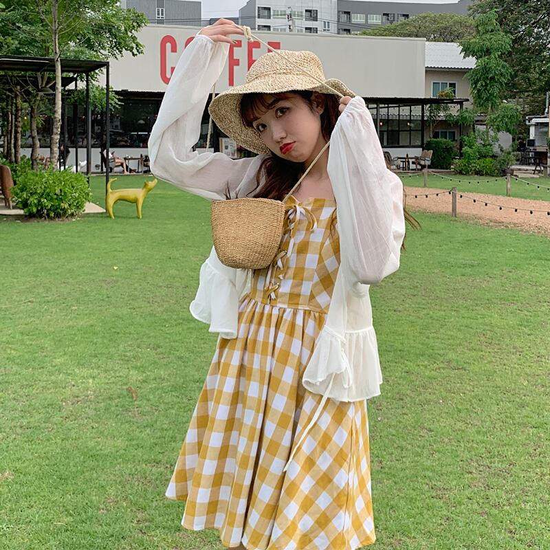 色:イエローグリッドスカート(ワンピース),日焼け止め服(ワンピース)