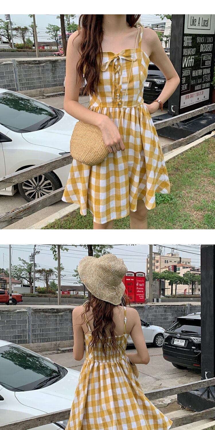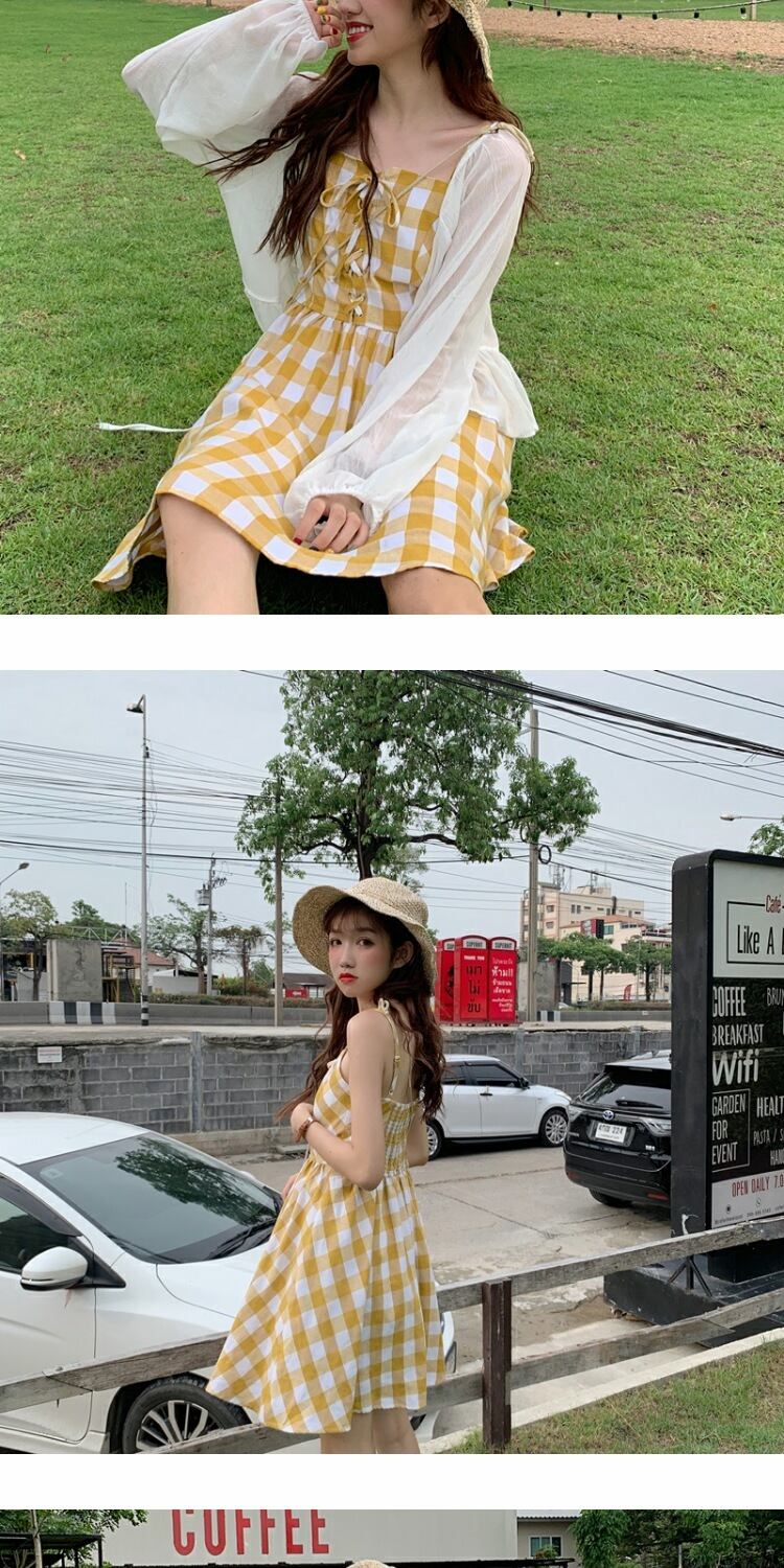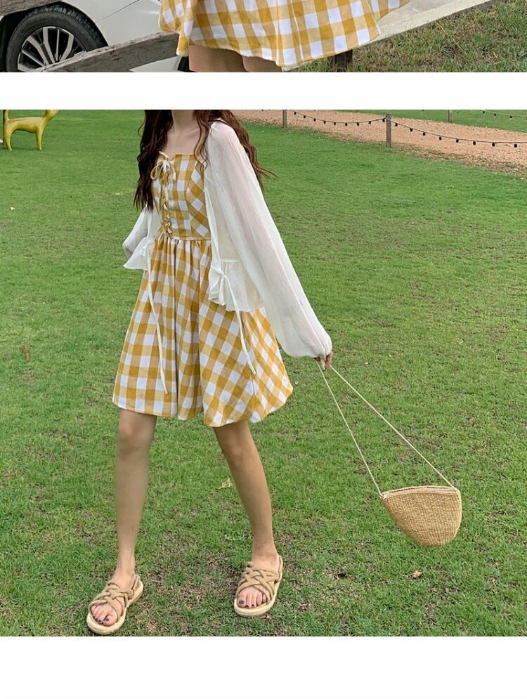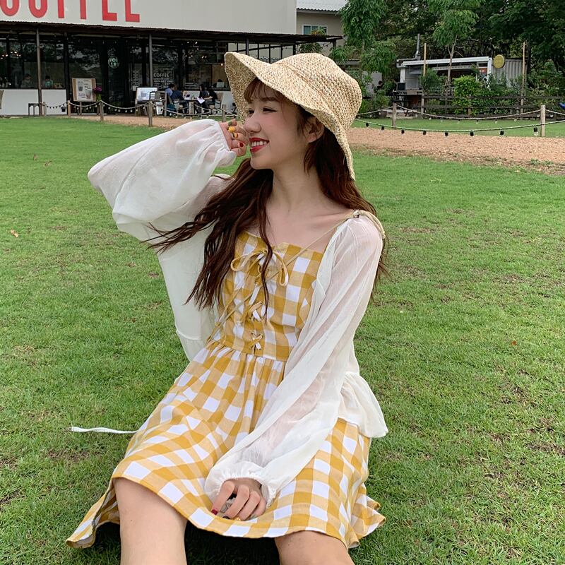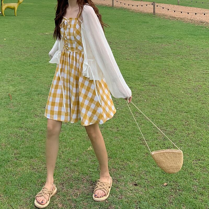 色:イエローグリッドスカート(ワンピース),日焼け止め服(ワンピース)