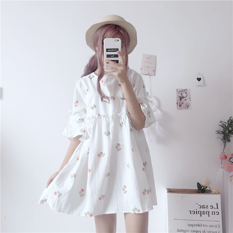 Flowerデザイン ドレス サマースタイルルーズスカート 大人ガーリー スウィート キュート カジュアル 夏物 フラワーデザイン 萌量不足71755844517