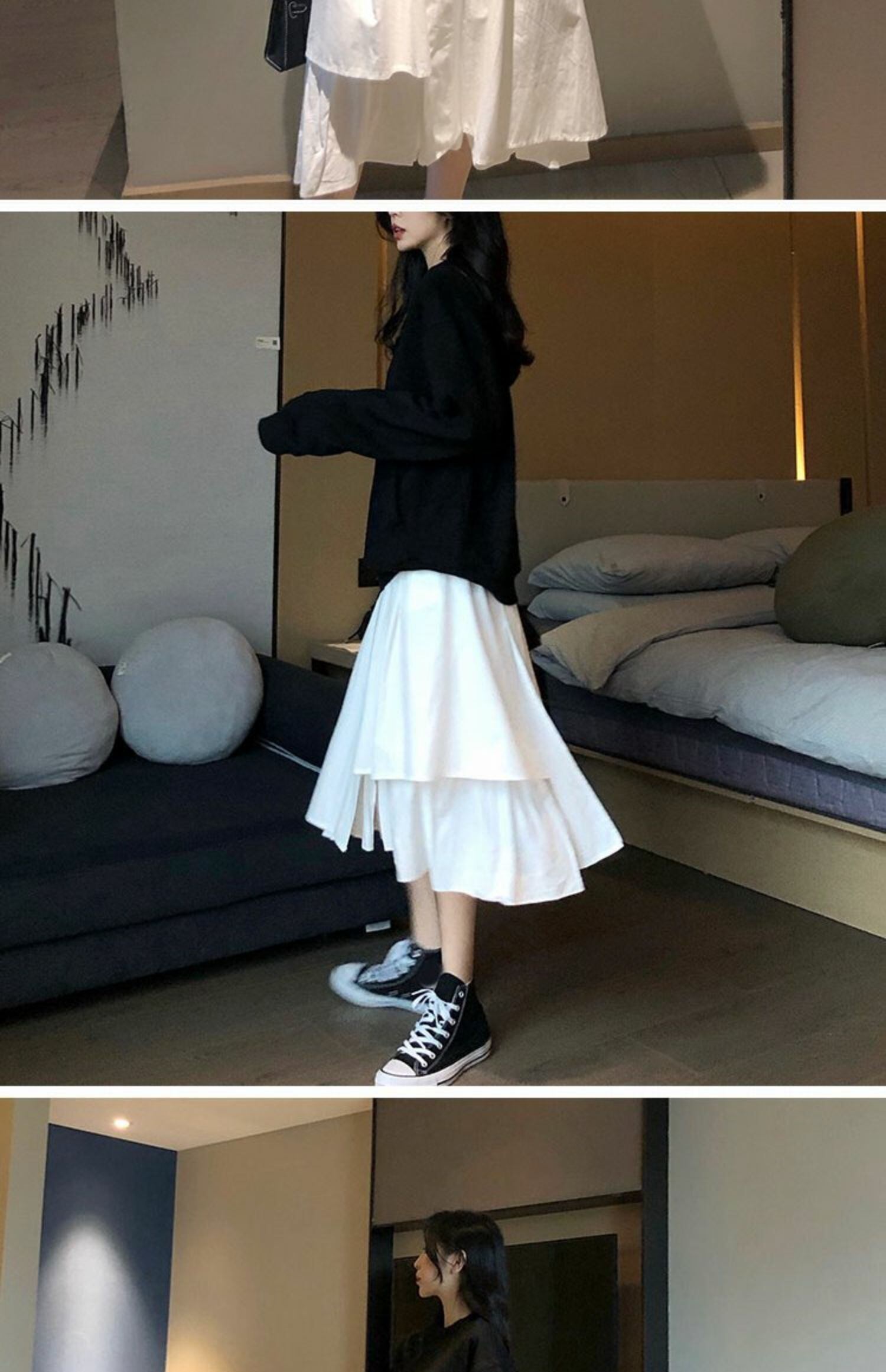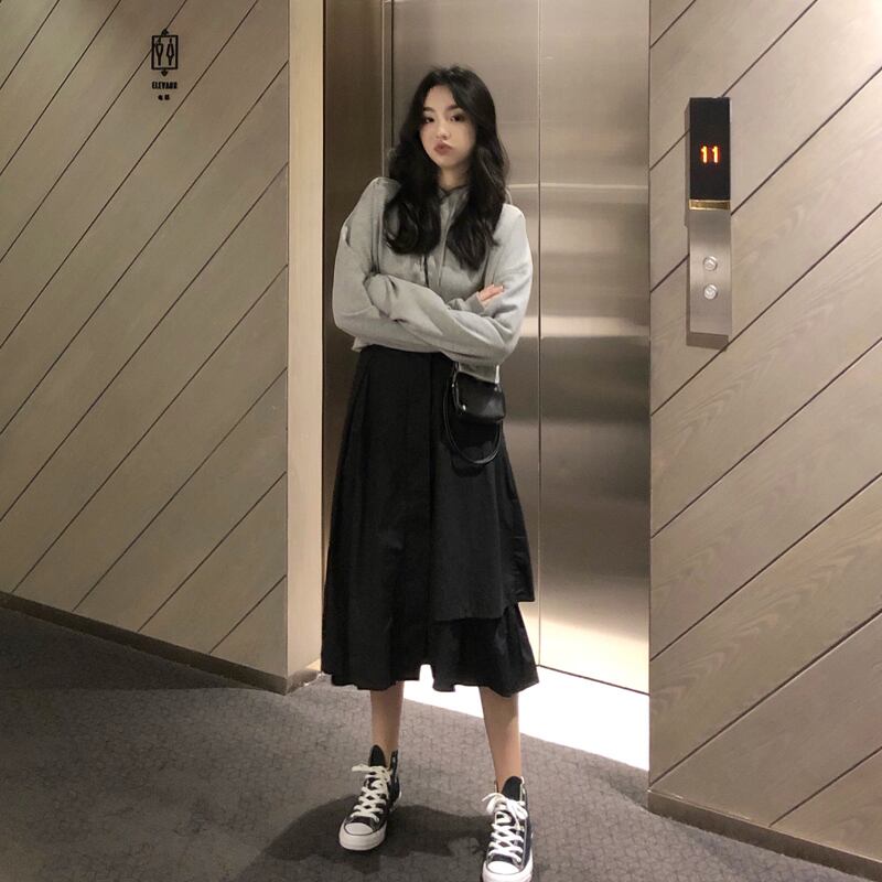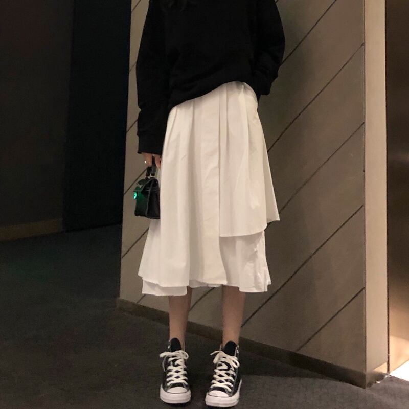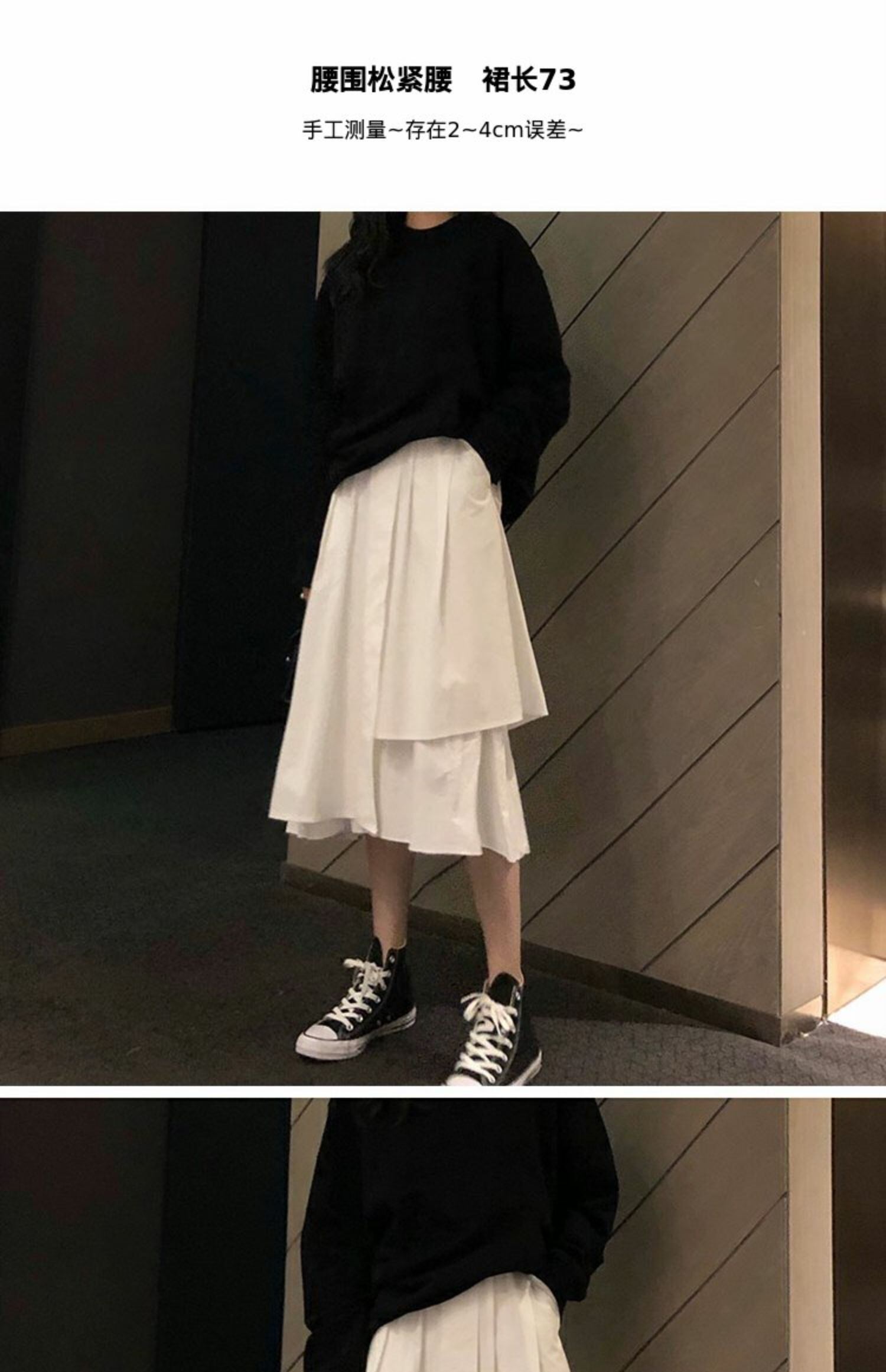 スタンダード薄手ホワイトハイウェストウェストスカート Aラインオータム レトロ 秋物 萌量不足63664433737