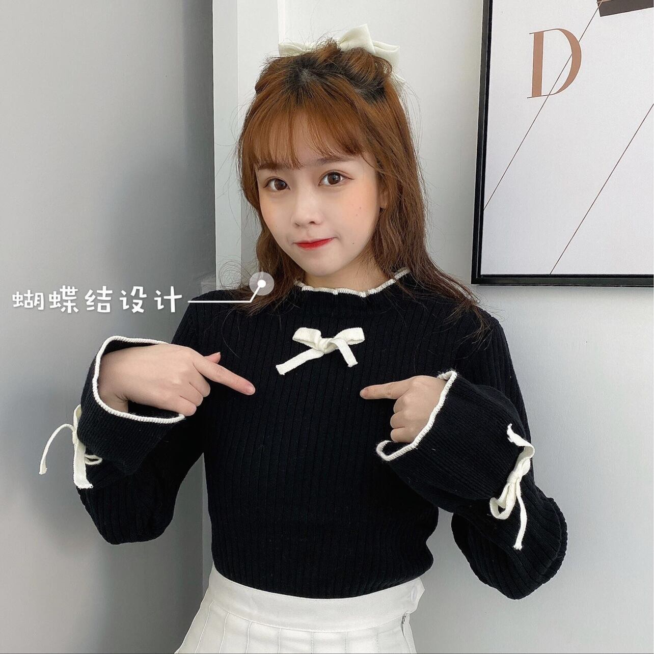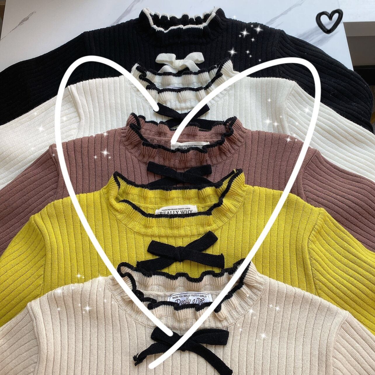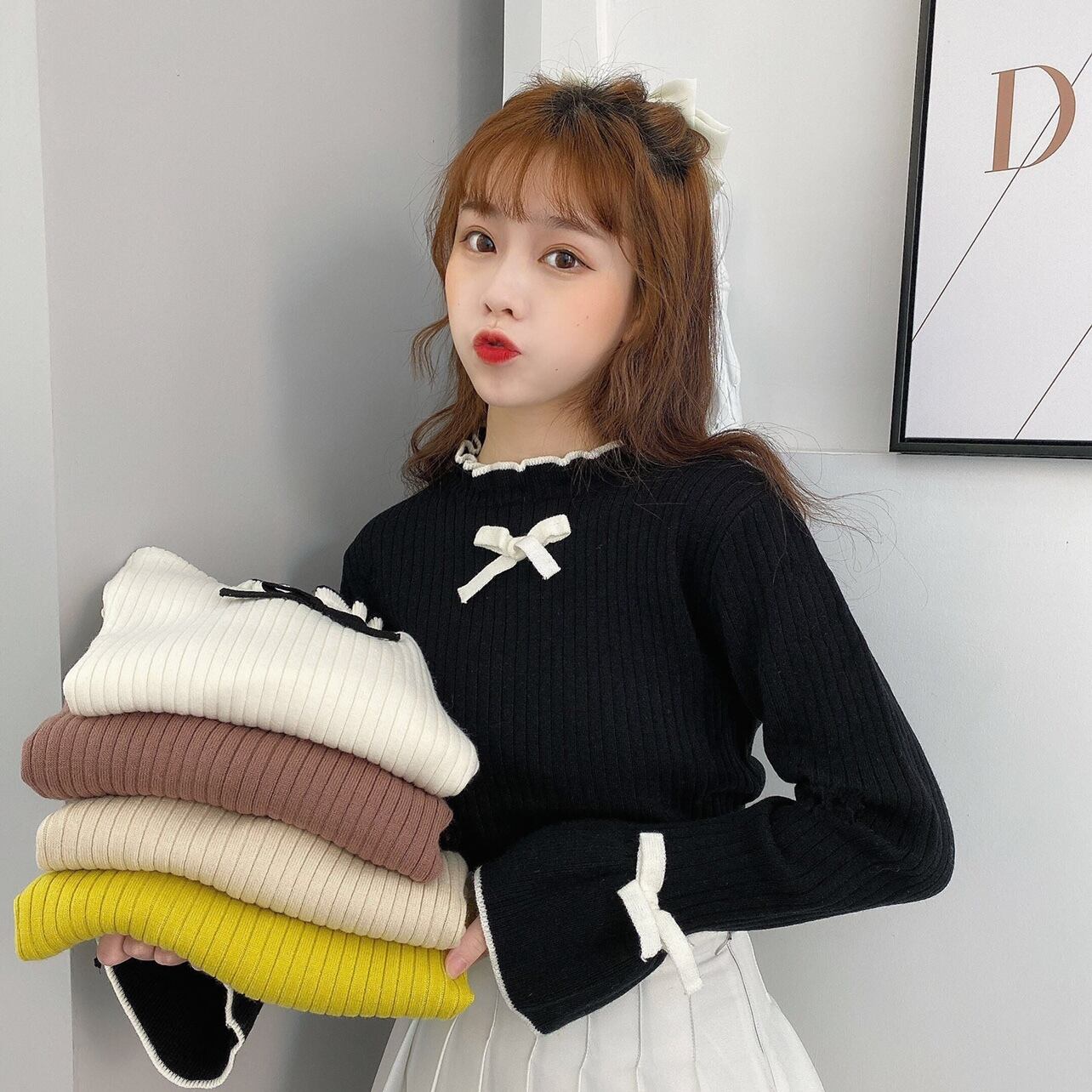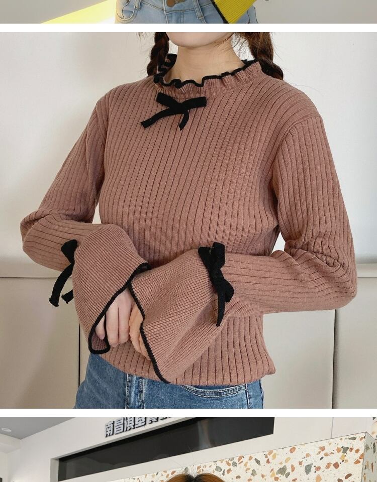 リボンニットシャツ スプリングオータム薄手スタイルスリーブトップス 大人ガーリー スウィート キュート カジュアル 春物 秋物 萌量不足56365560832