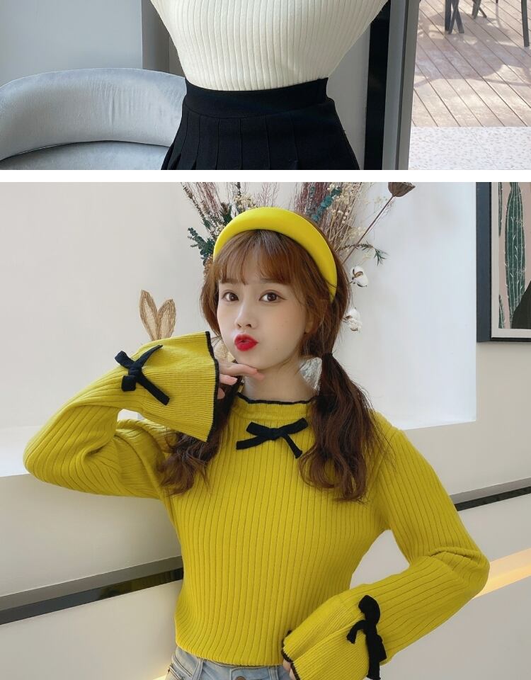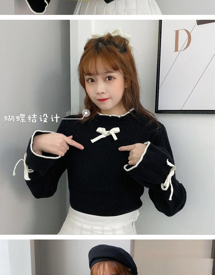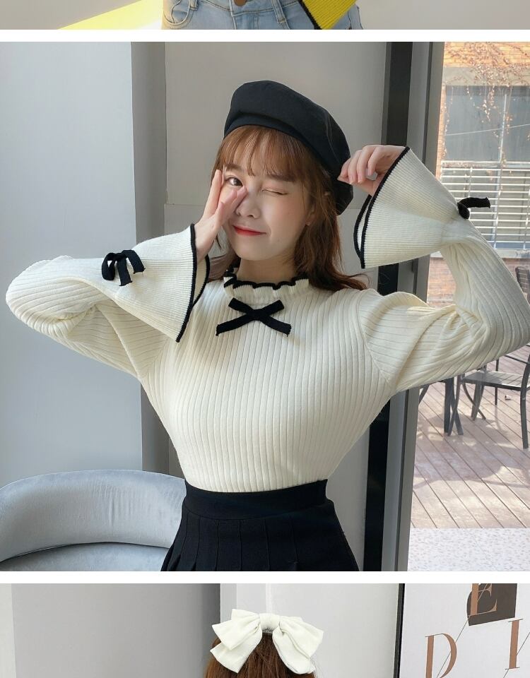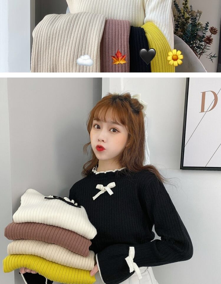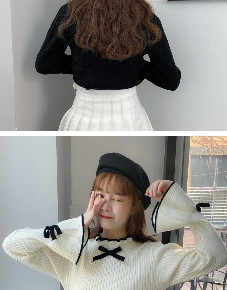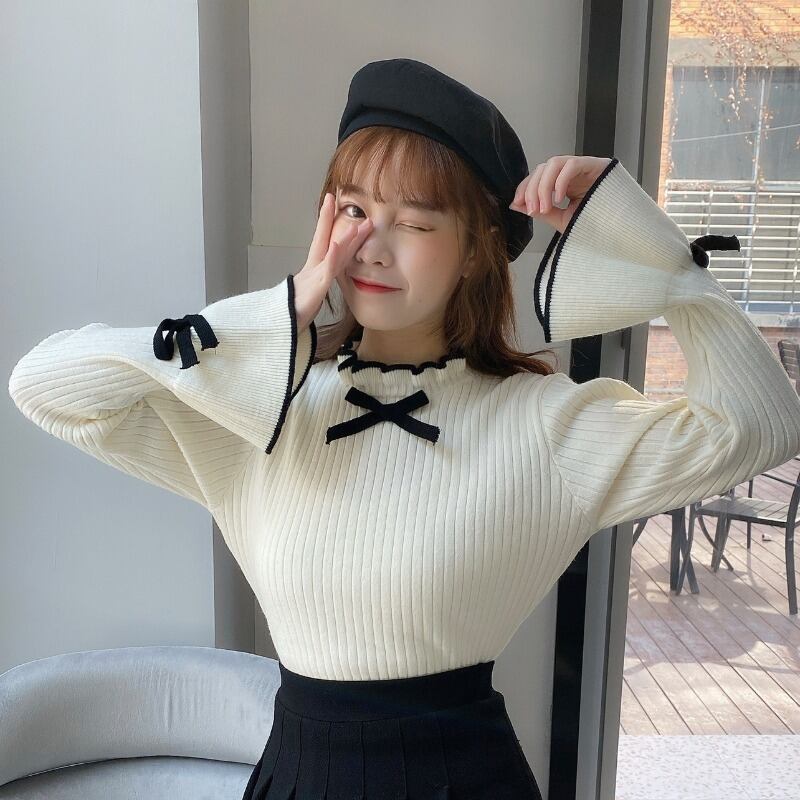 リボンニットシャツ スプリングオータム薄手スタイルスリーブトップス 大人ガーリー スウィート キュート カジュアル 春物 秋物 萌量不足56365560832