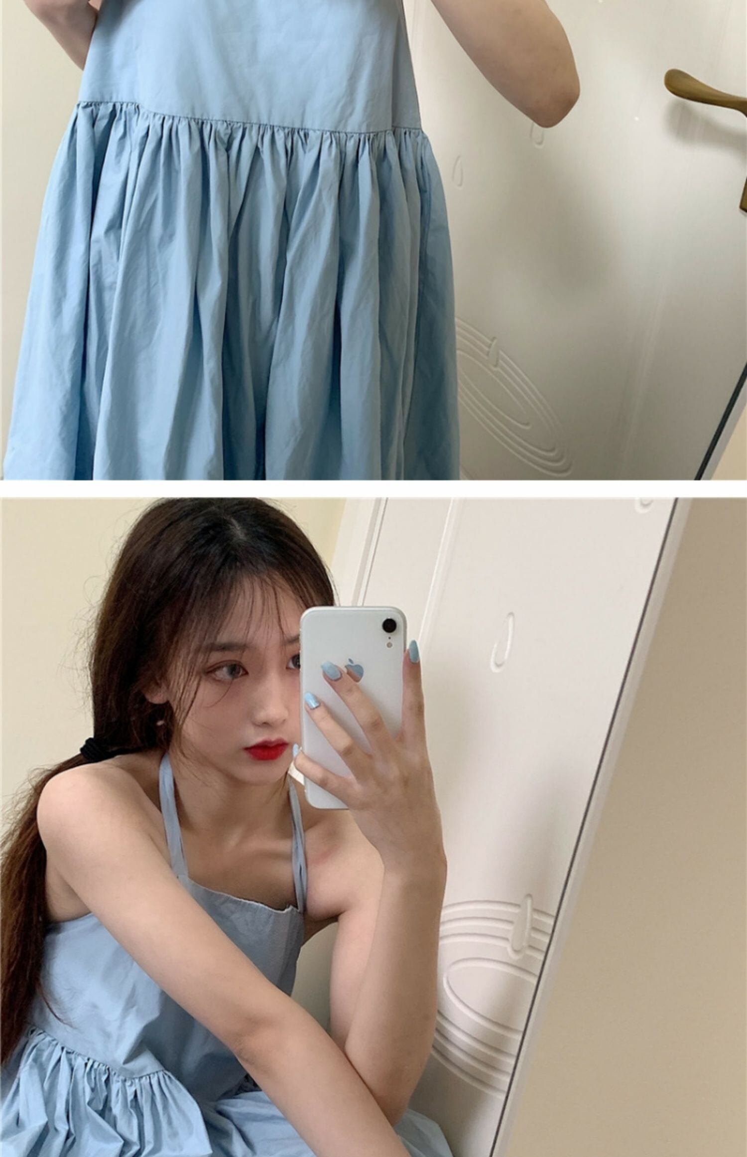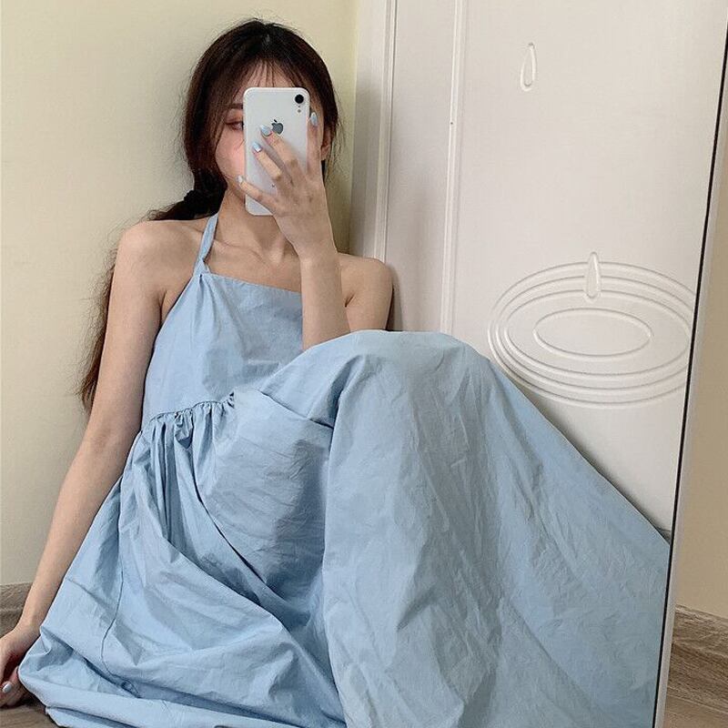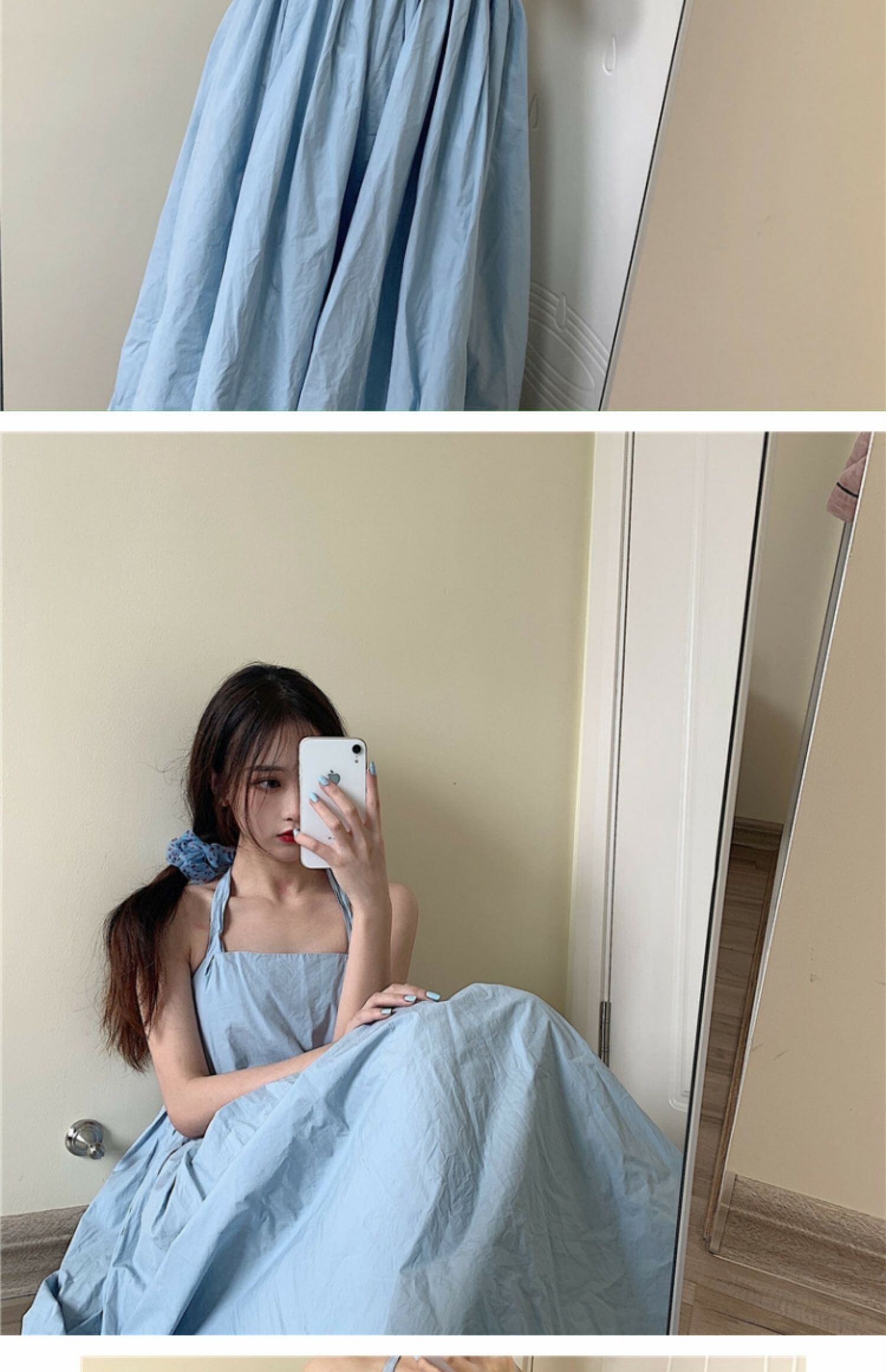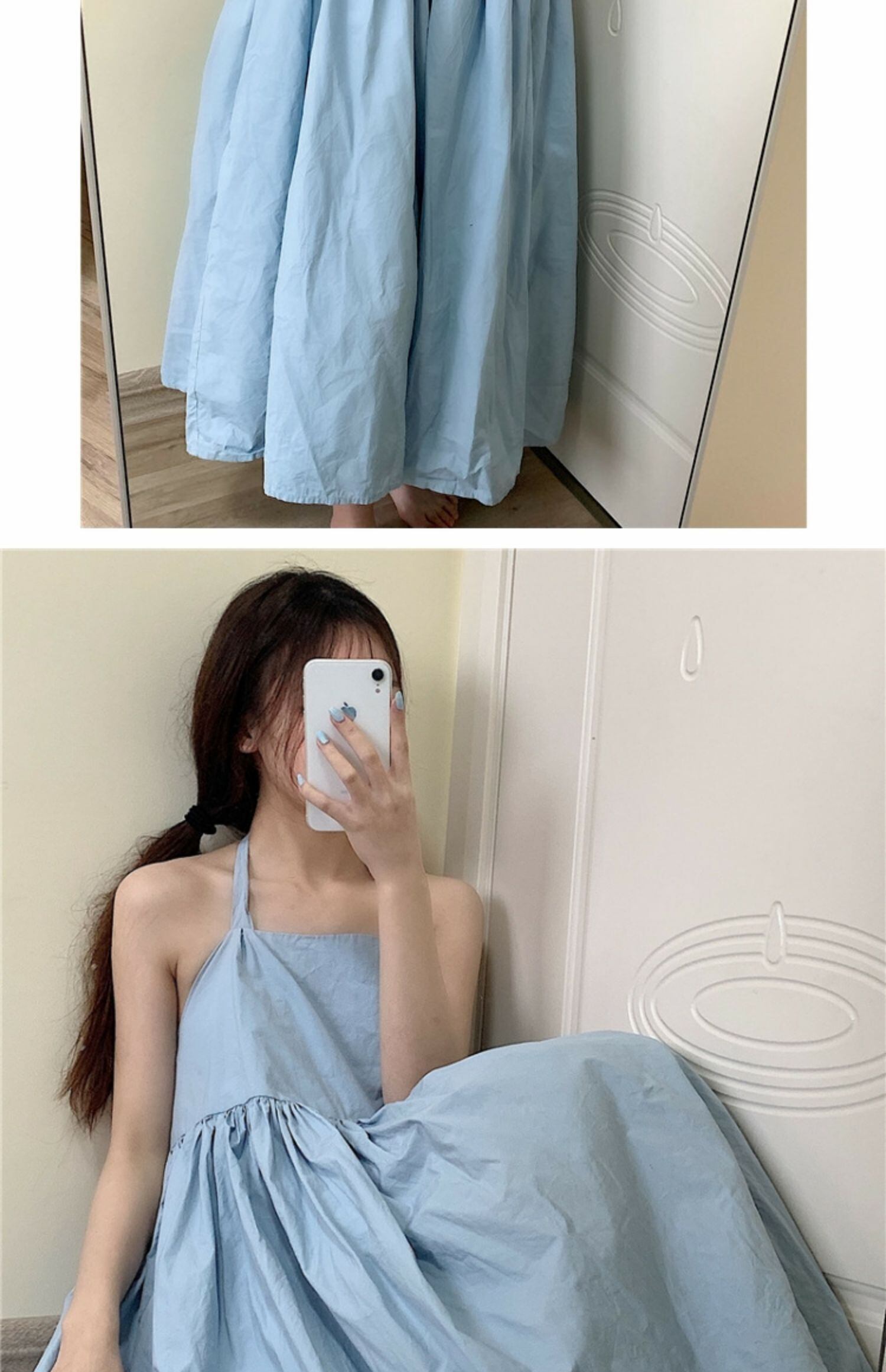サマーブルースカート リボンドレス スリム薄手 夏物 萌量不足97194332889