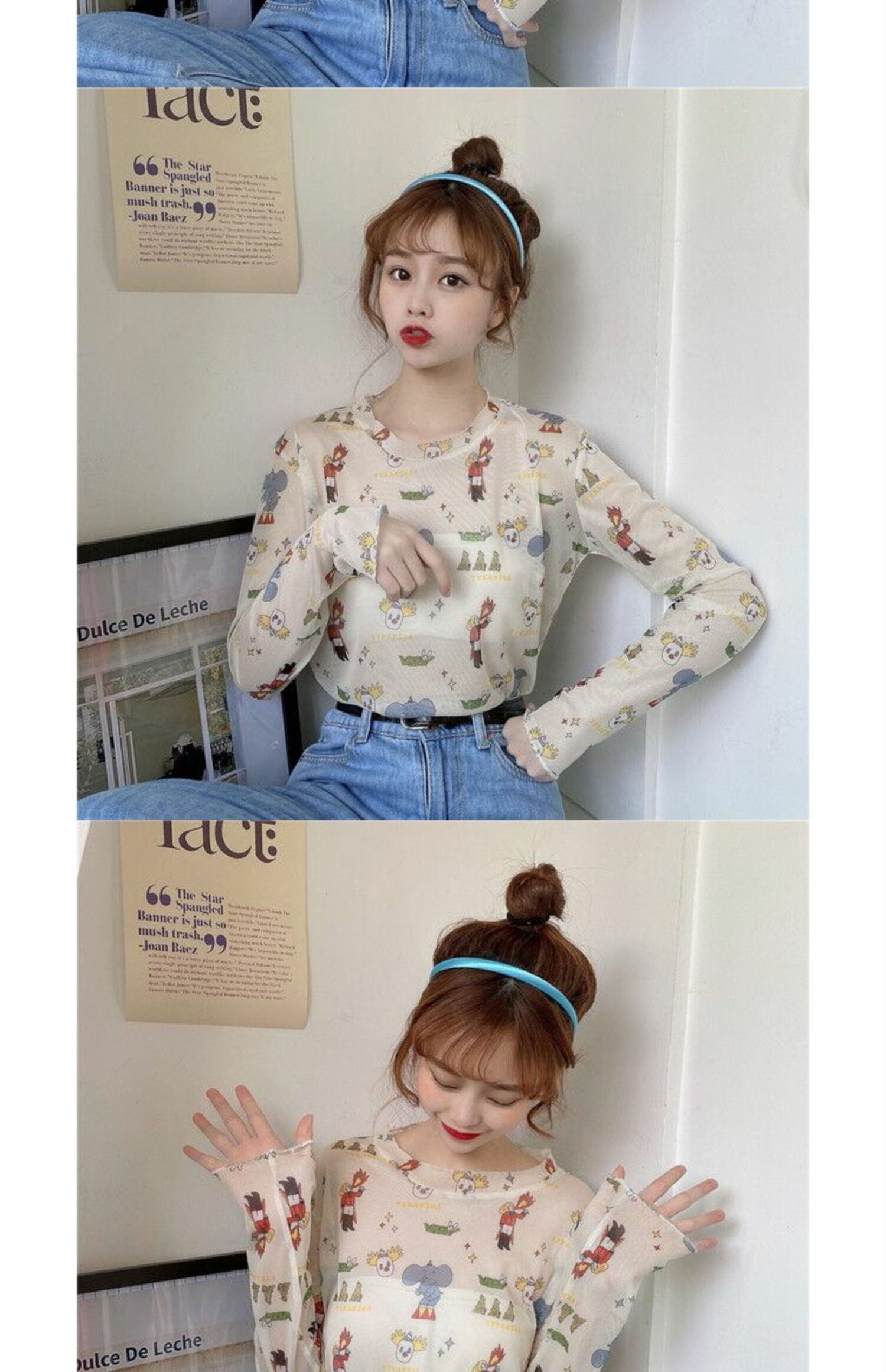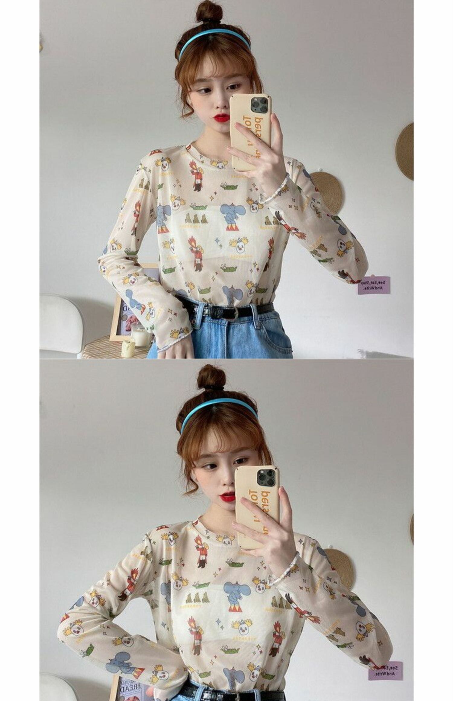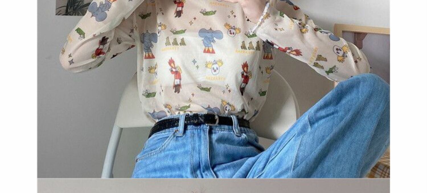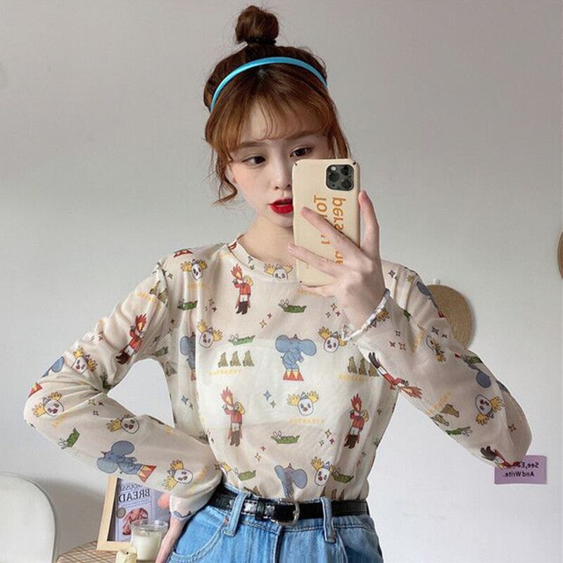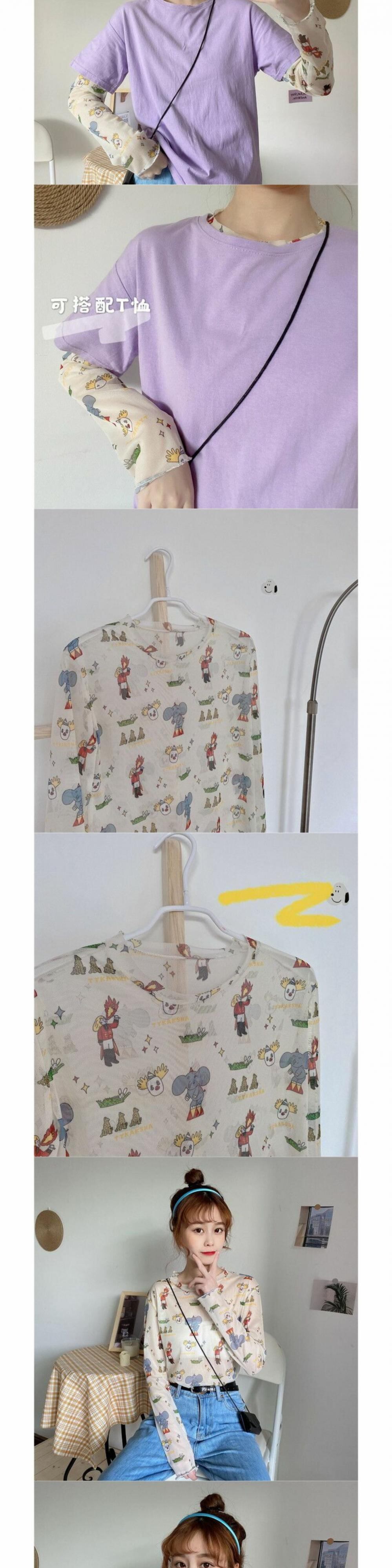 サマーメッシュシャツ トップス プリント柄Tシャツ ロング 夏物 萌量不足3433184267