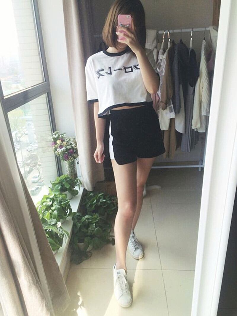 レディースサマープリントラウンドネックTシャツ ハイウェストカジュアルショーツ セット 夏物 ブルマー Oネック 萌量不足85664516866