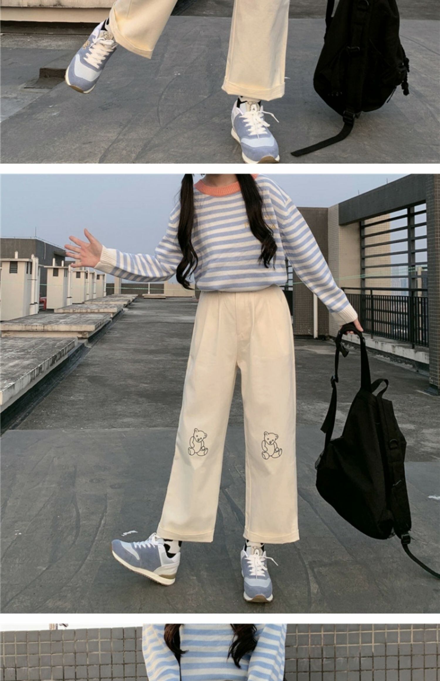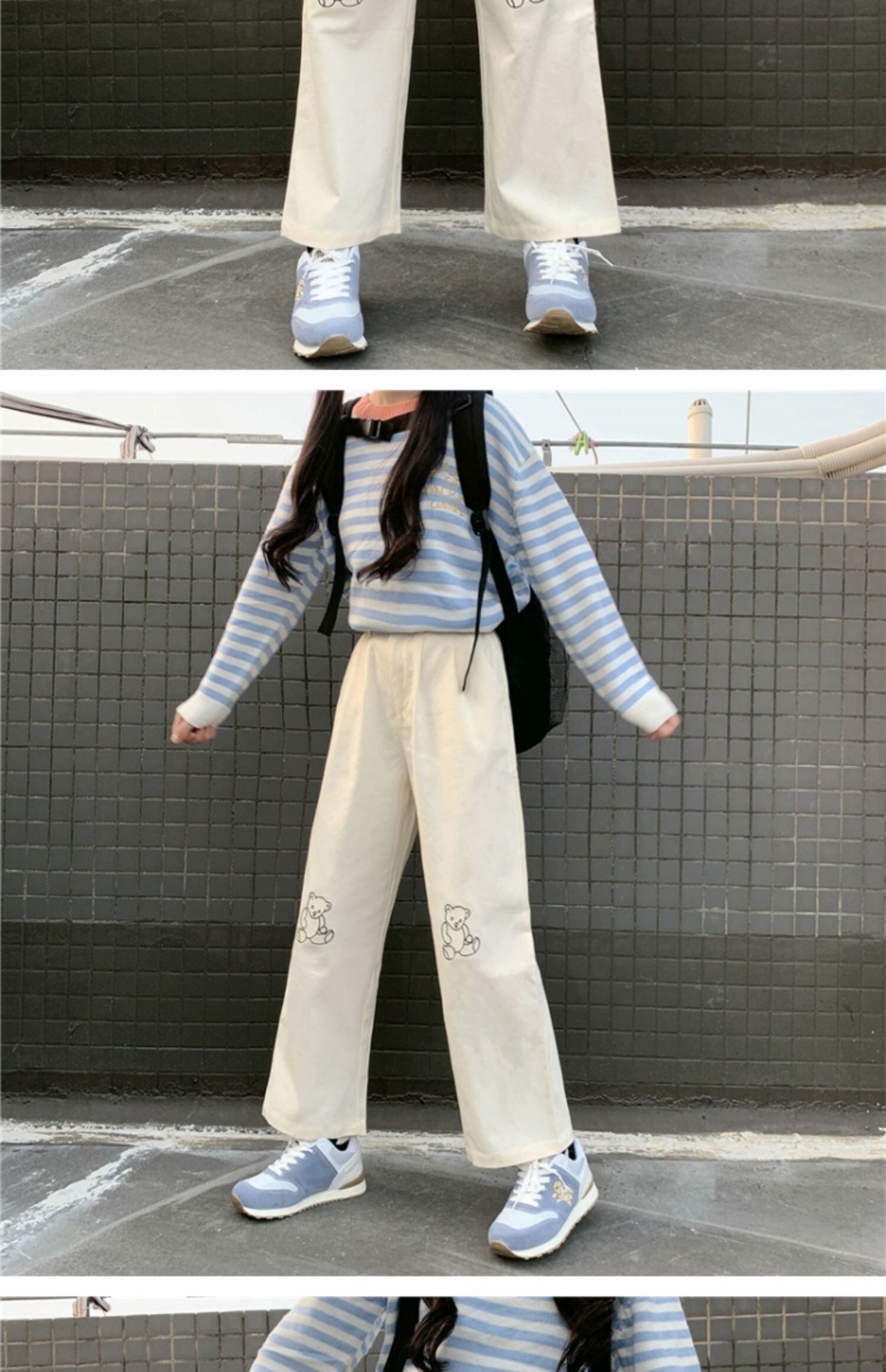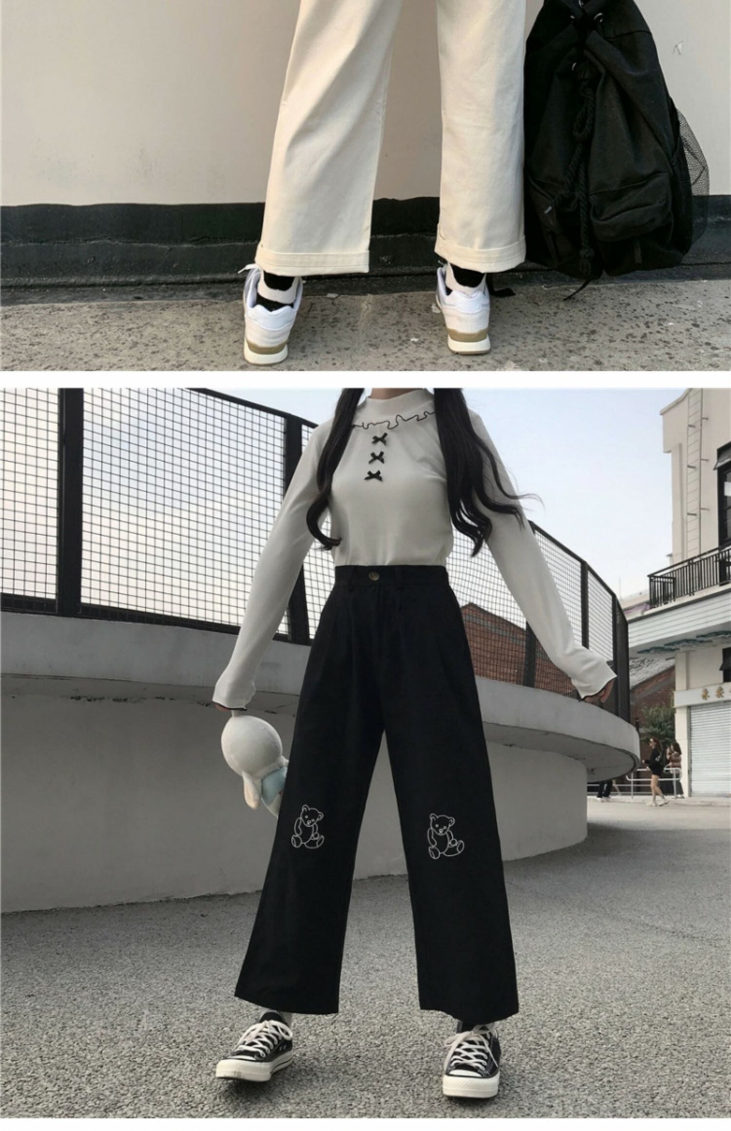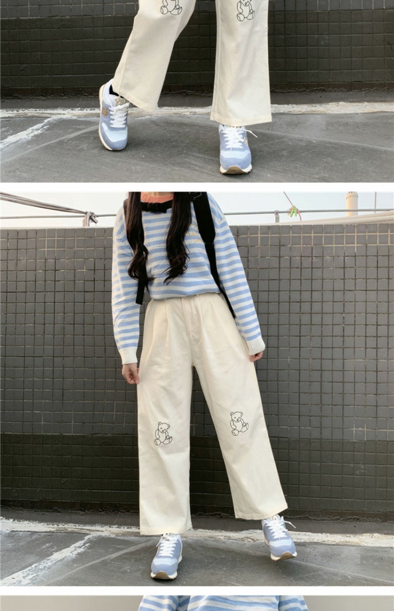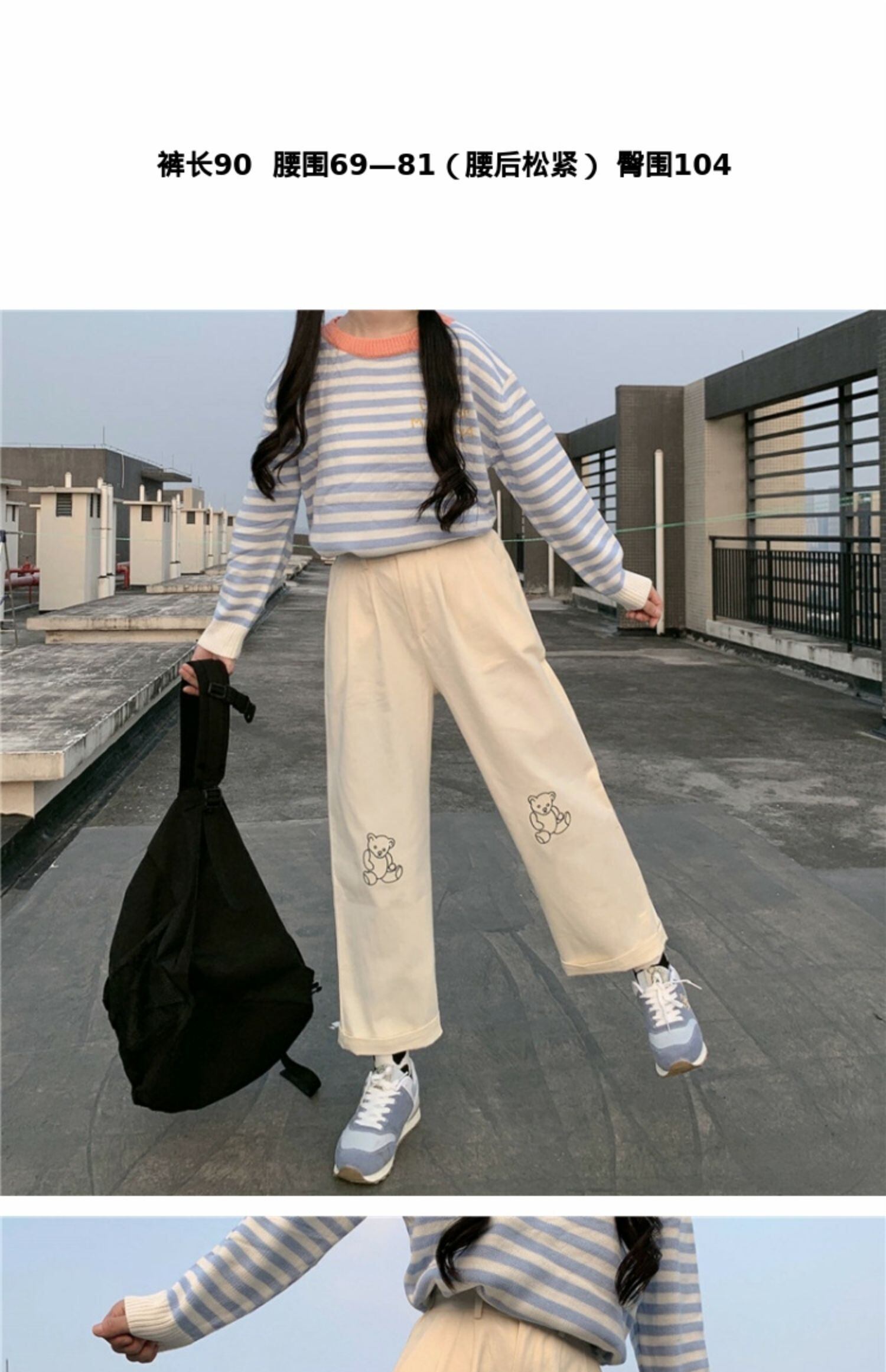 パンツ スプリングオータムルーズ薄手ストレッチハイウェストウェスト刺繍カジュアルレディース エラスティック 伸縮 春物 秋物 萌量不足36522634446