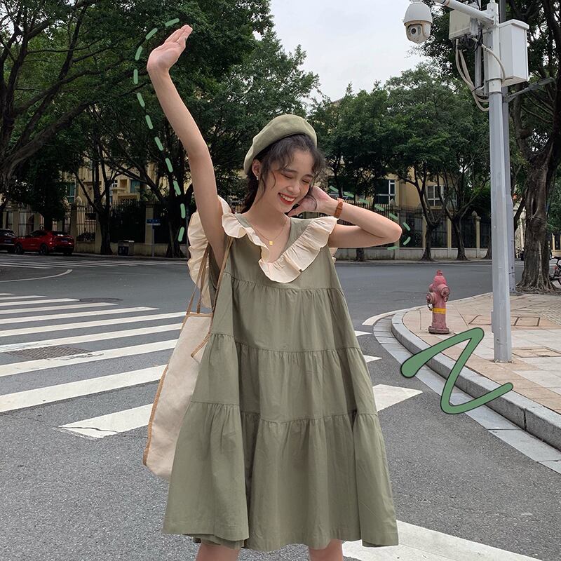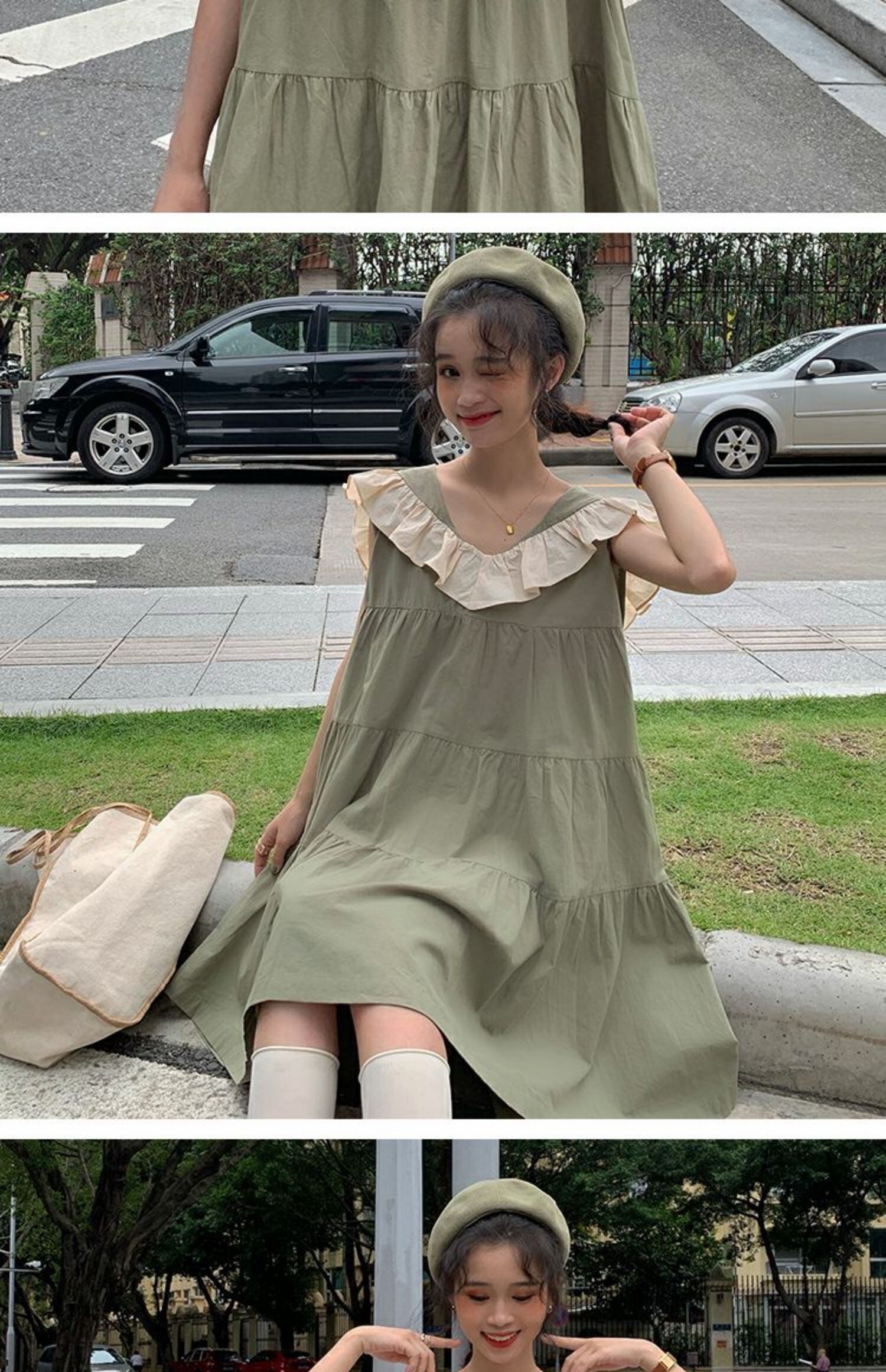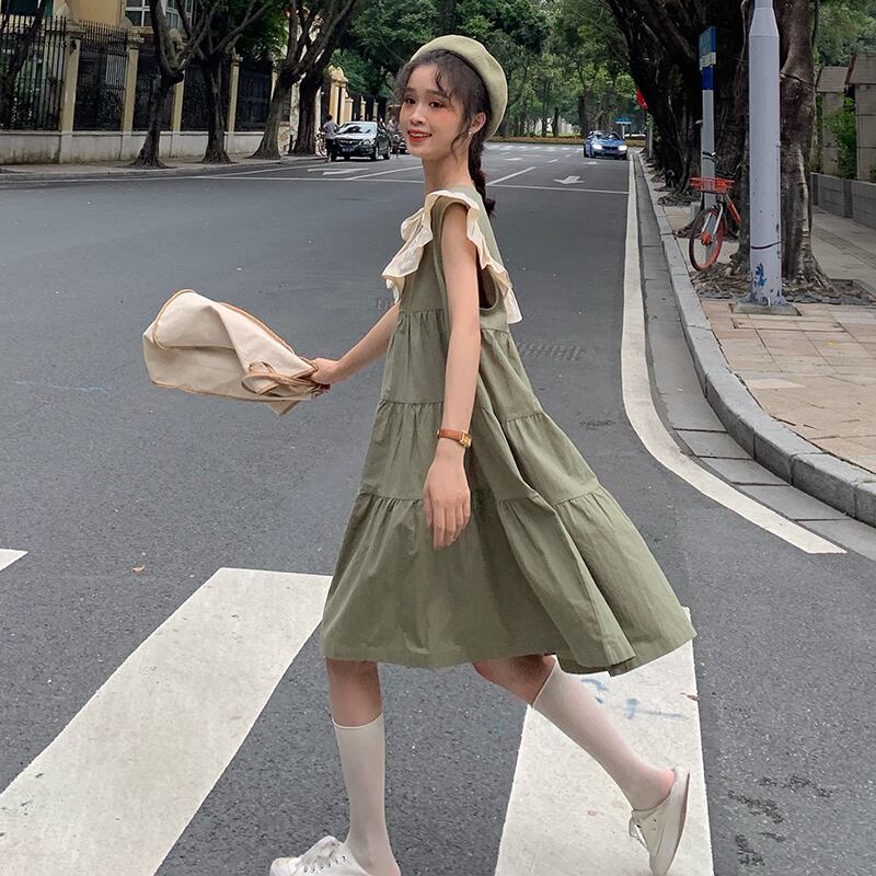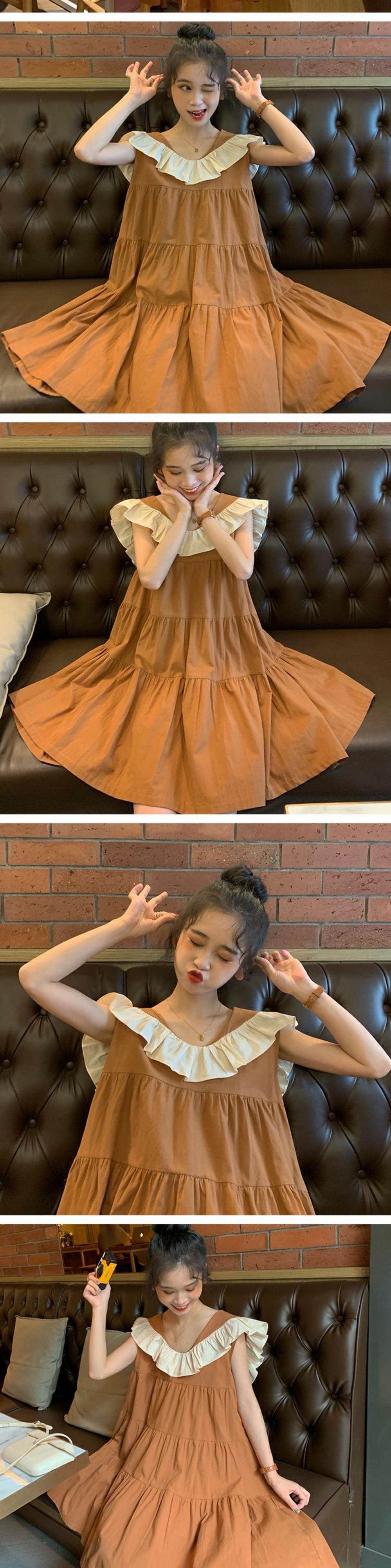 スカート ルーズ薄手カラーノースリーブドレス スプリング 大人ガーリー スウィート キュート カジュアル 春物 萌量不足53855381695