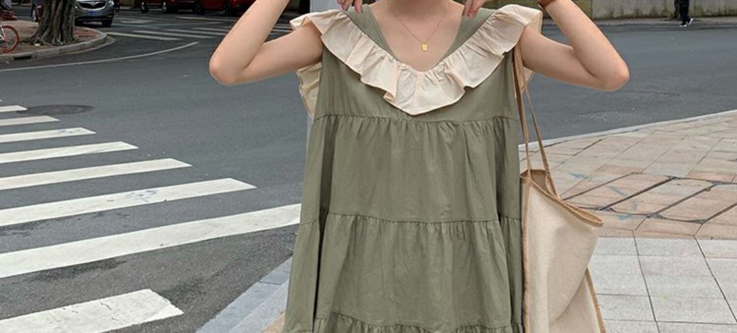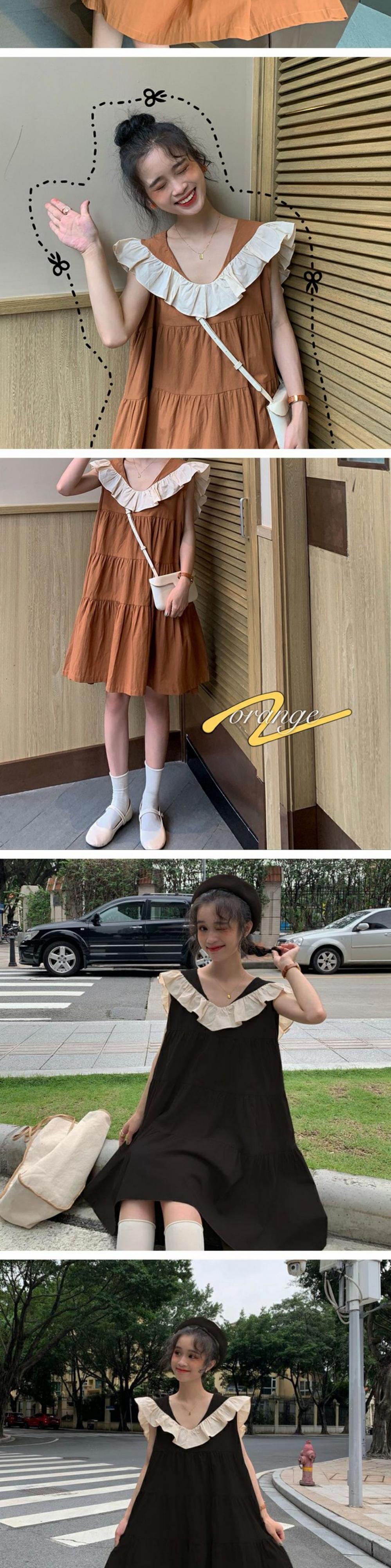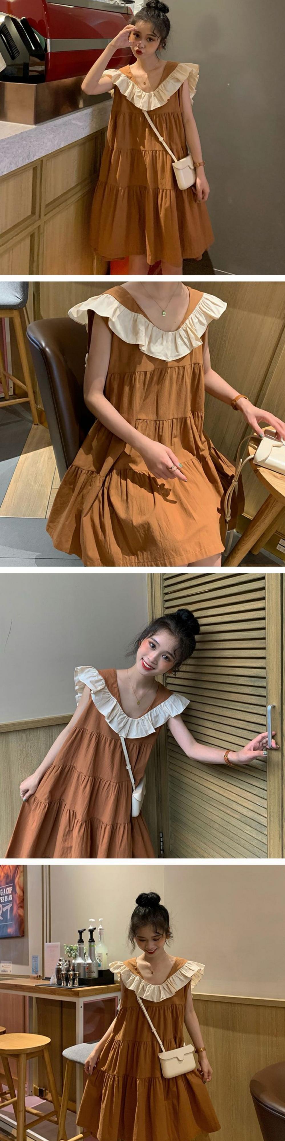 スカート ルーズ薄手カラーノースリーブドレス スプリング 大人ガーリー スウィート キュート カジュアル 春物 萌量不足53855381695