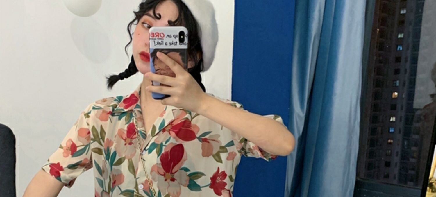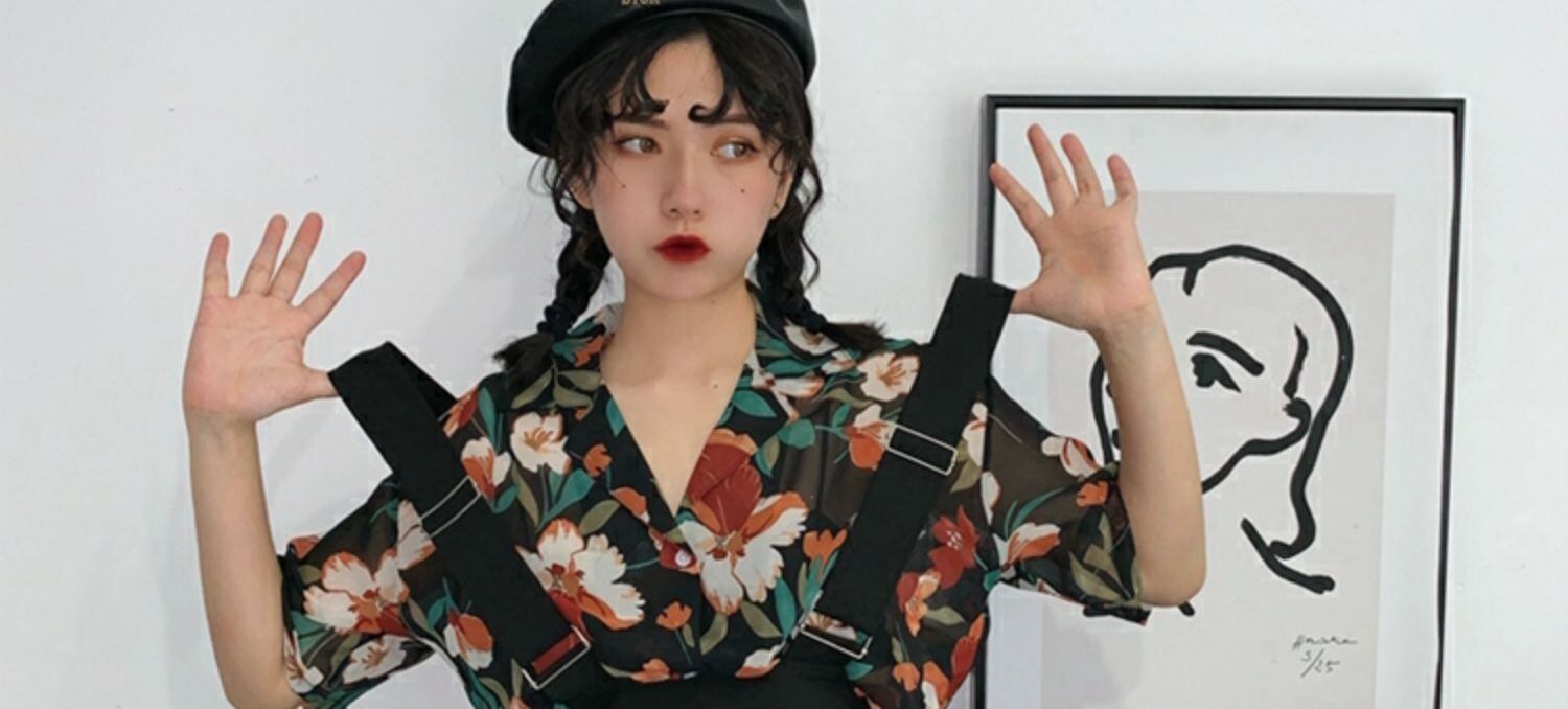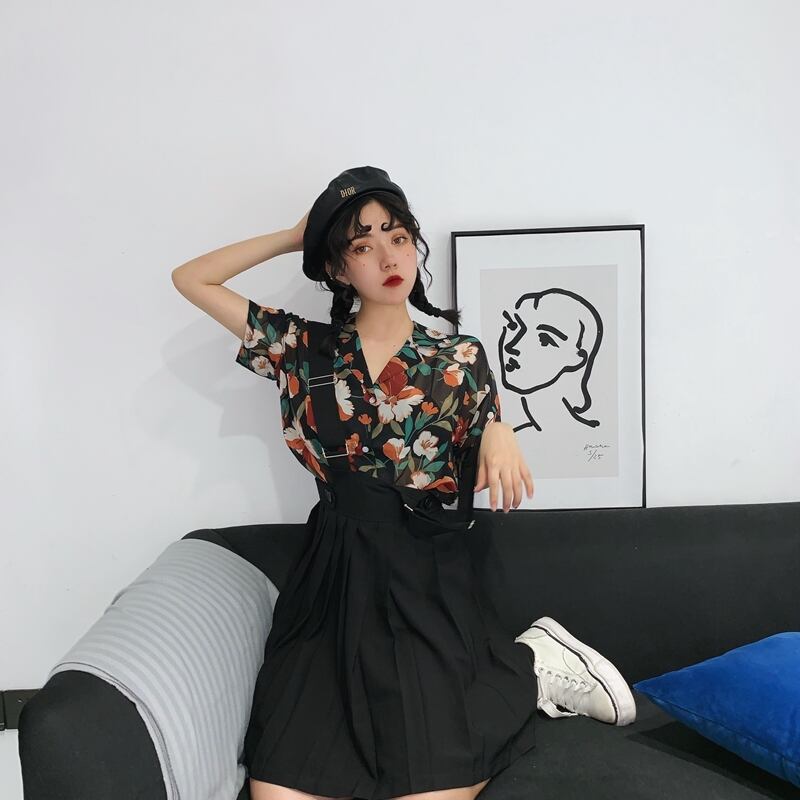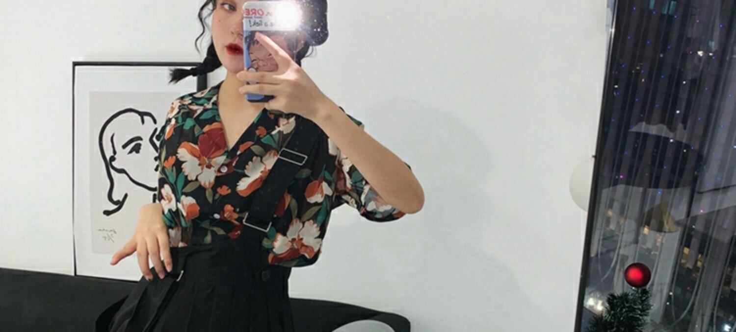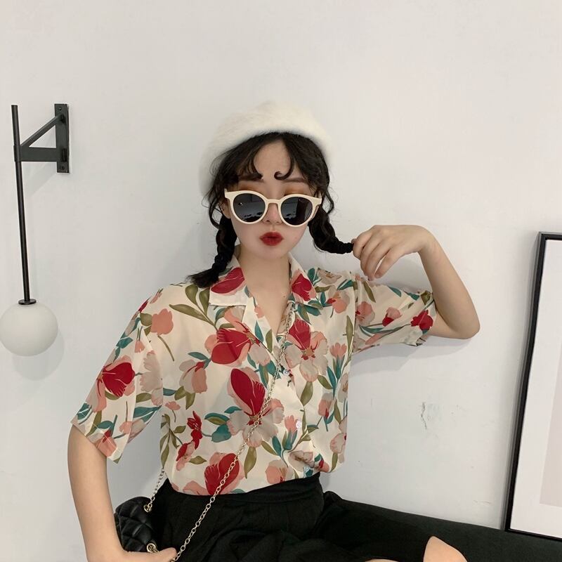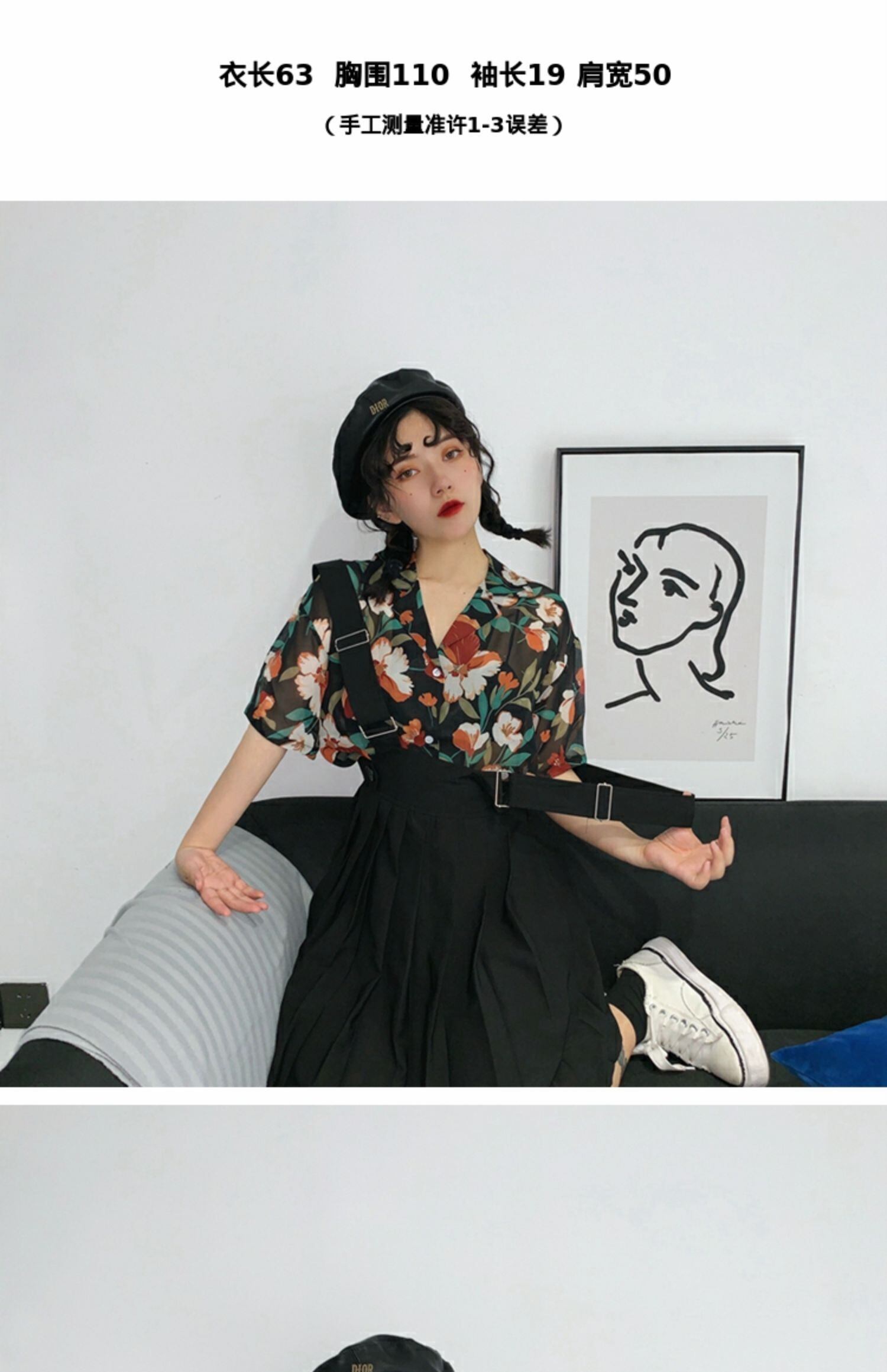 シャツ サマースタンダードスタイルカラールーズフローラルシフォントップス レトロ 夏物 花柄 萌量不足62447686852