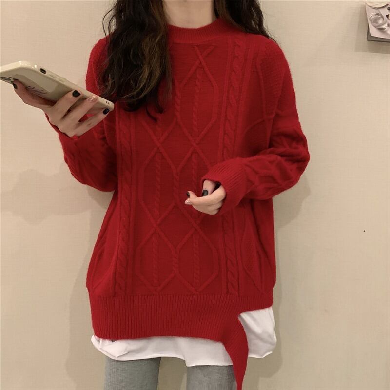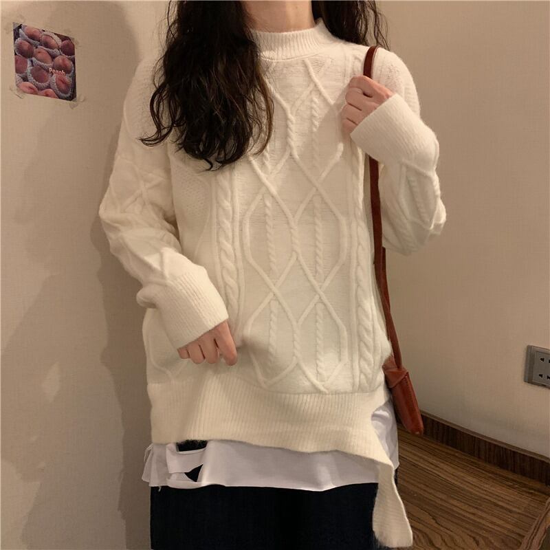スプリングオータムカジュアルニットセーター ロング 春物 秋物 萌量不足14184947435