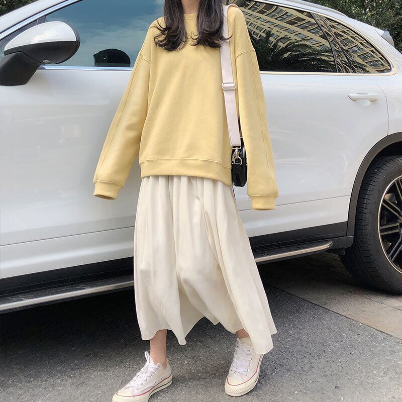 ルーズセーター オータムウィンターラウンドネックプルオーバー プリントブラウス ロング 秋物 冬物 Oネック 萌量不足19710015154