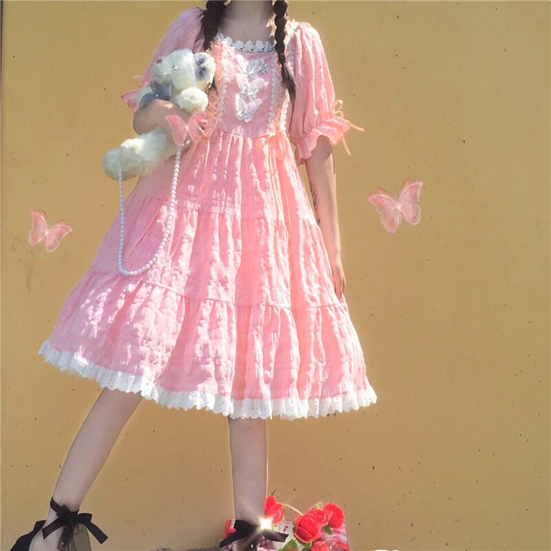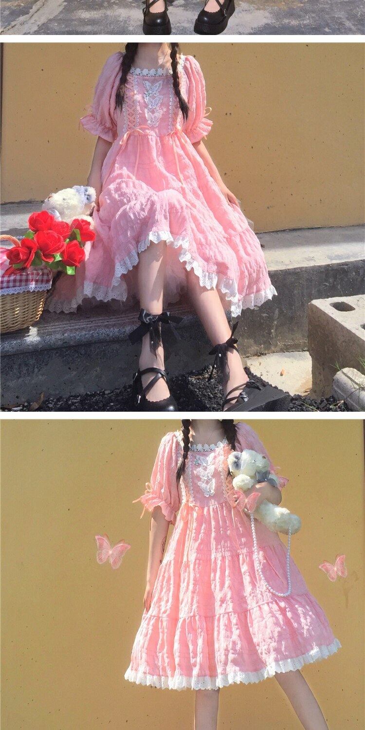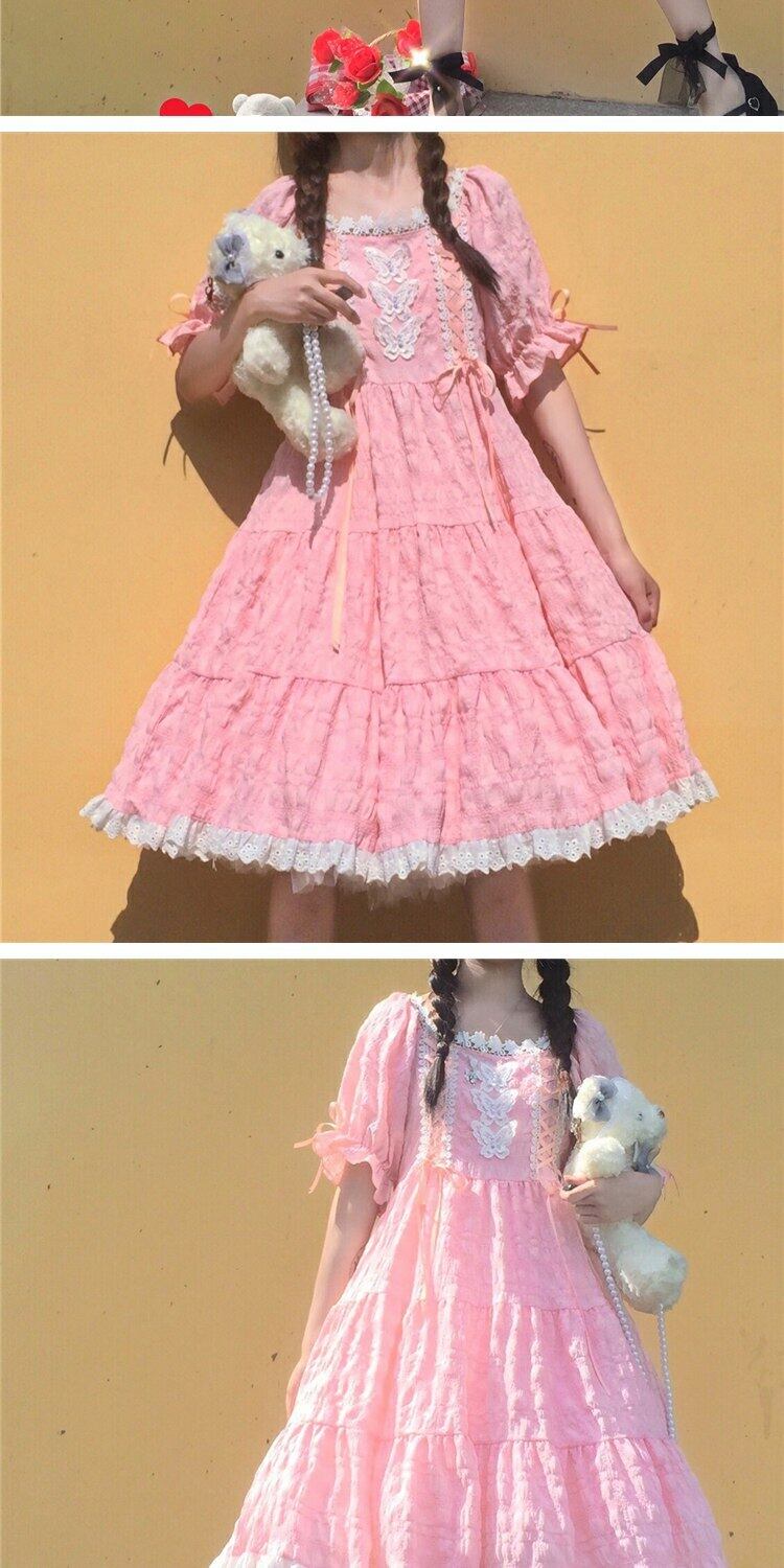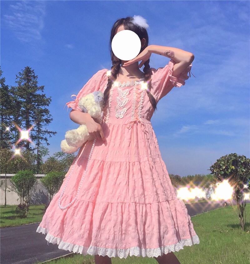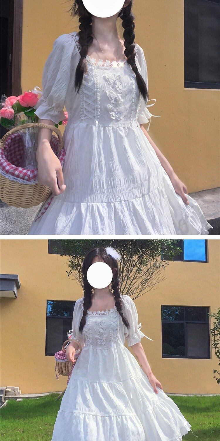 スカート サマーレースカラーButterflyデザイン ウェストドレス ロング 大人ガーリー スウィート キュート カジュアル 夏物 萌量不足39362900819