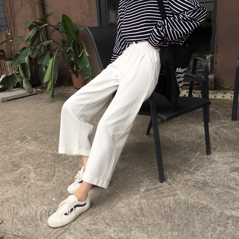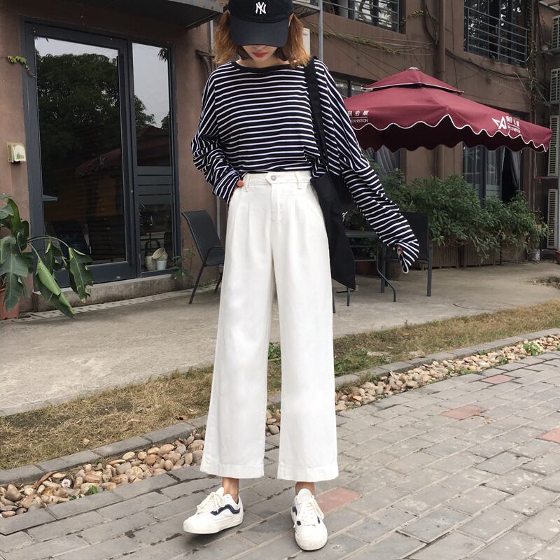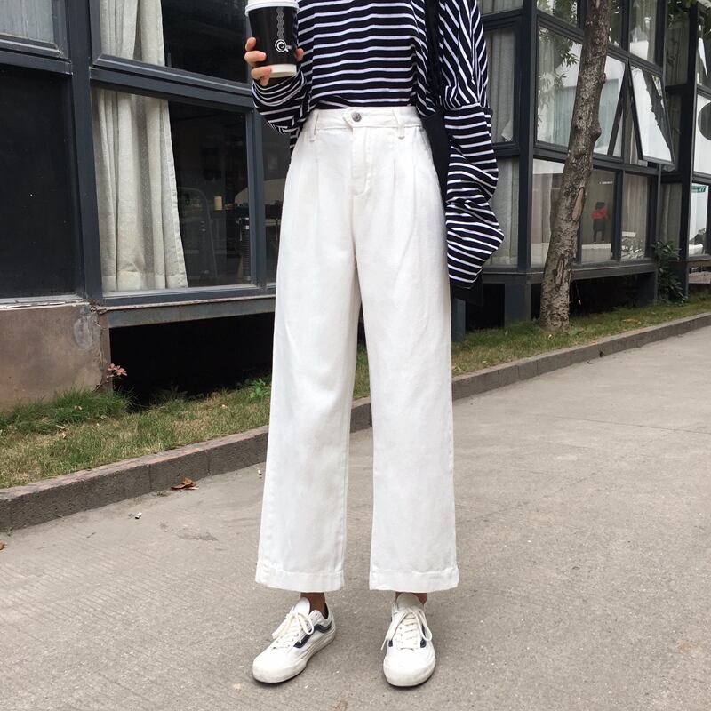 パンツ レディース薄手ハイウェストオータムルーズジーンズ ホワイト 秋物 萌量不足78306256521