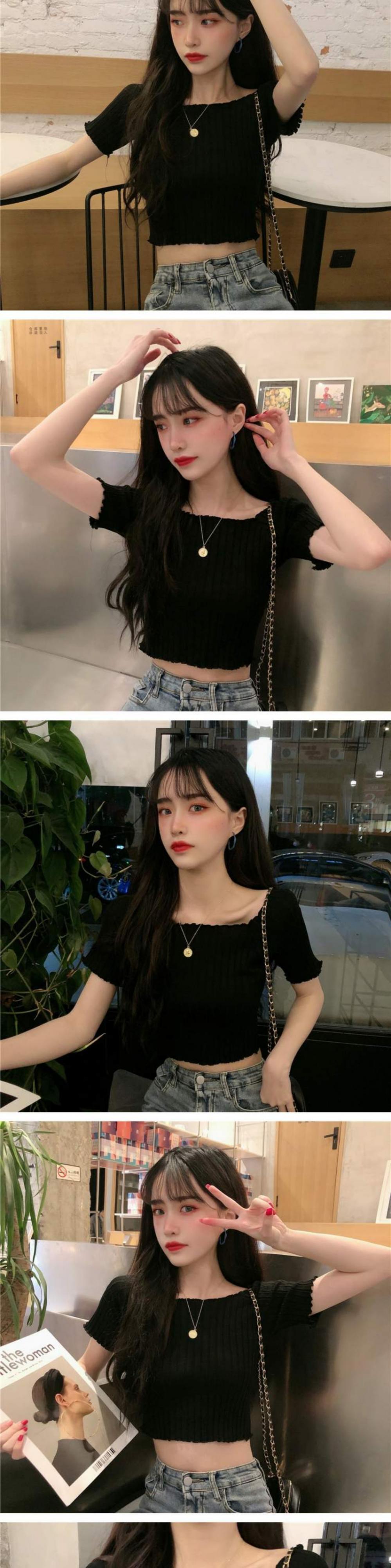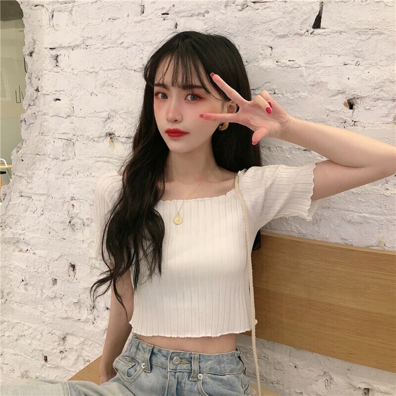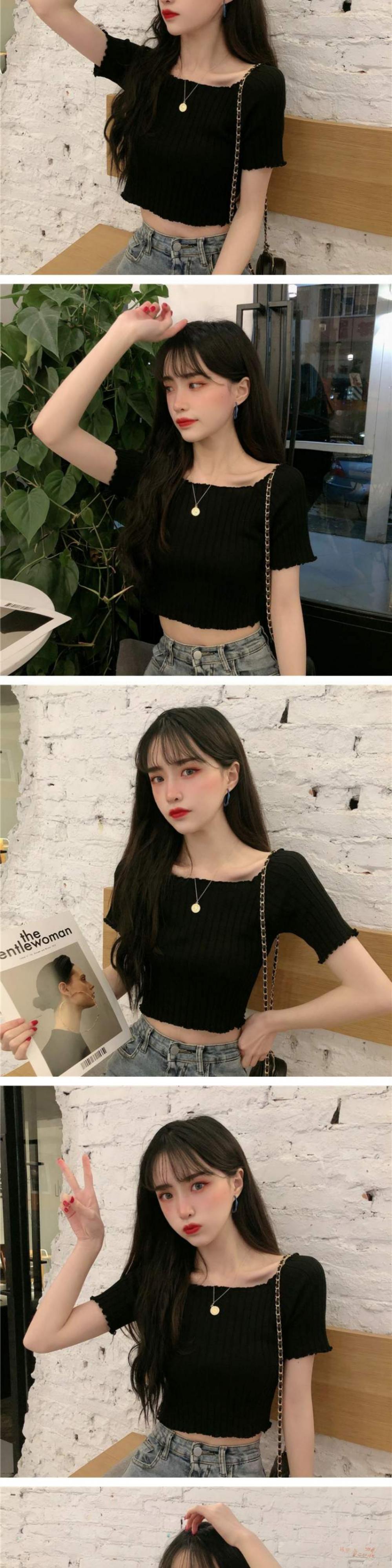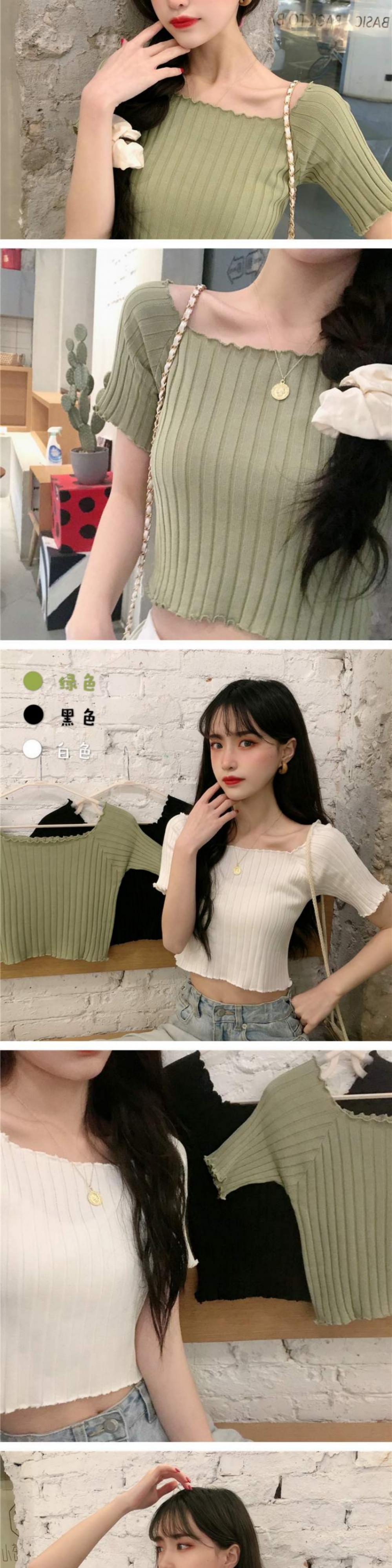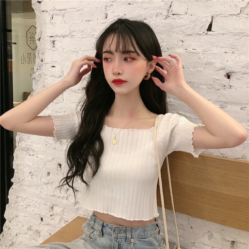 ニットTシャツ シャツ オータムスリムフィット薄手ショートトップス 大人ガーリー スウィート キュート カジュアル 秋物 スクウェア 萌量不足62172181979