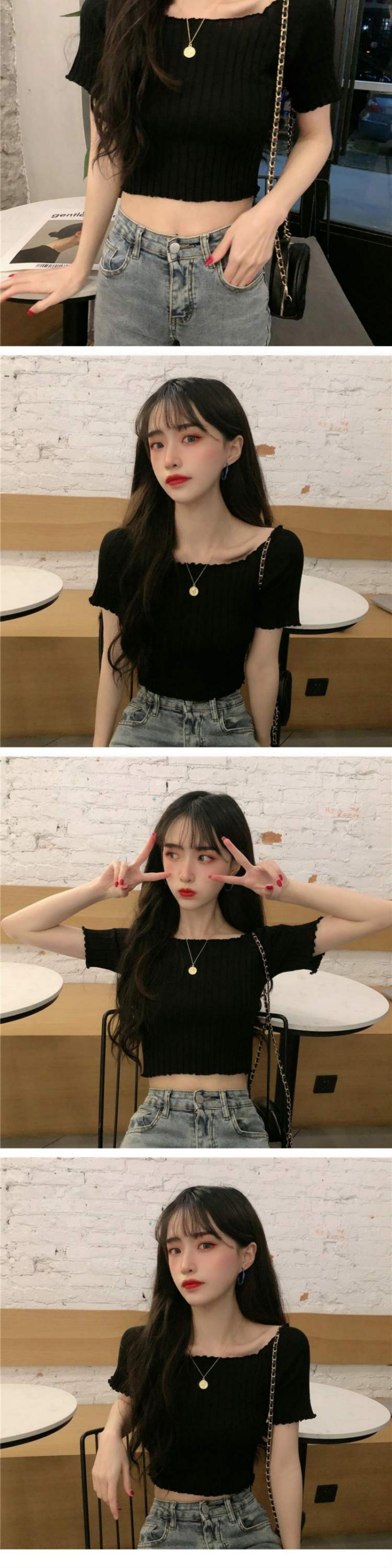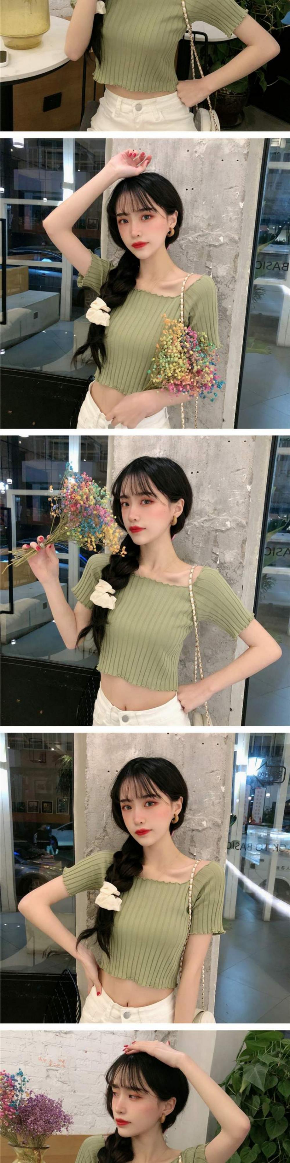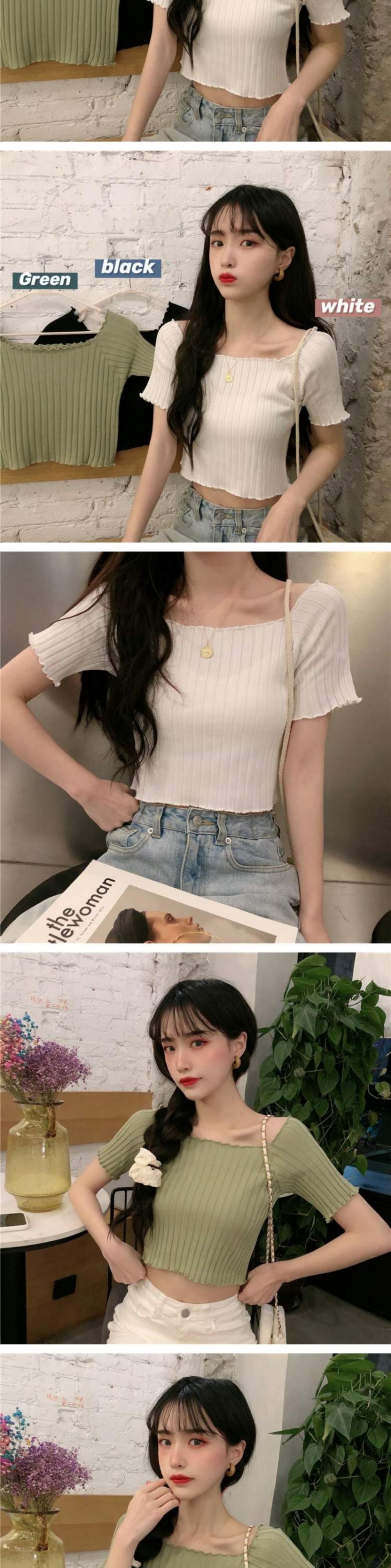 ニットTシャツ シャツ オータムスリムフィット薄手ショートトップス 大人ガーリー スウィート キュート カジュアル 秋物 スクウェア 萌量不足62172181979