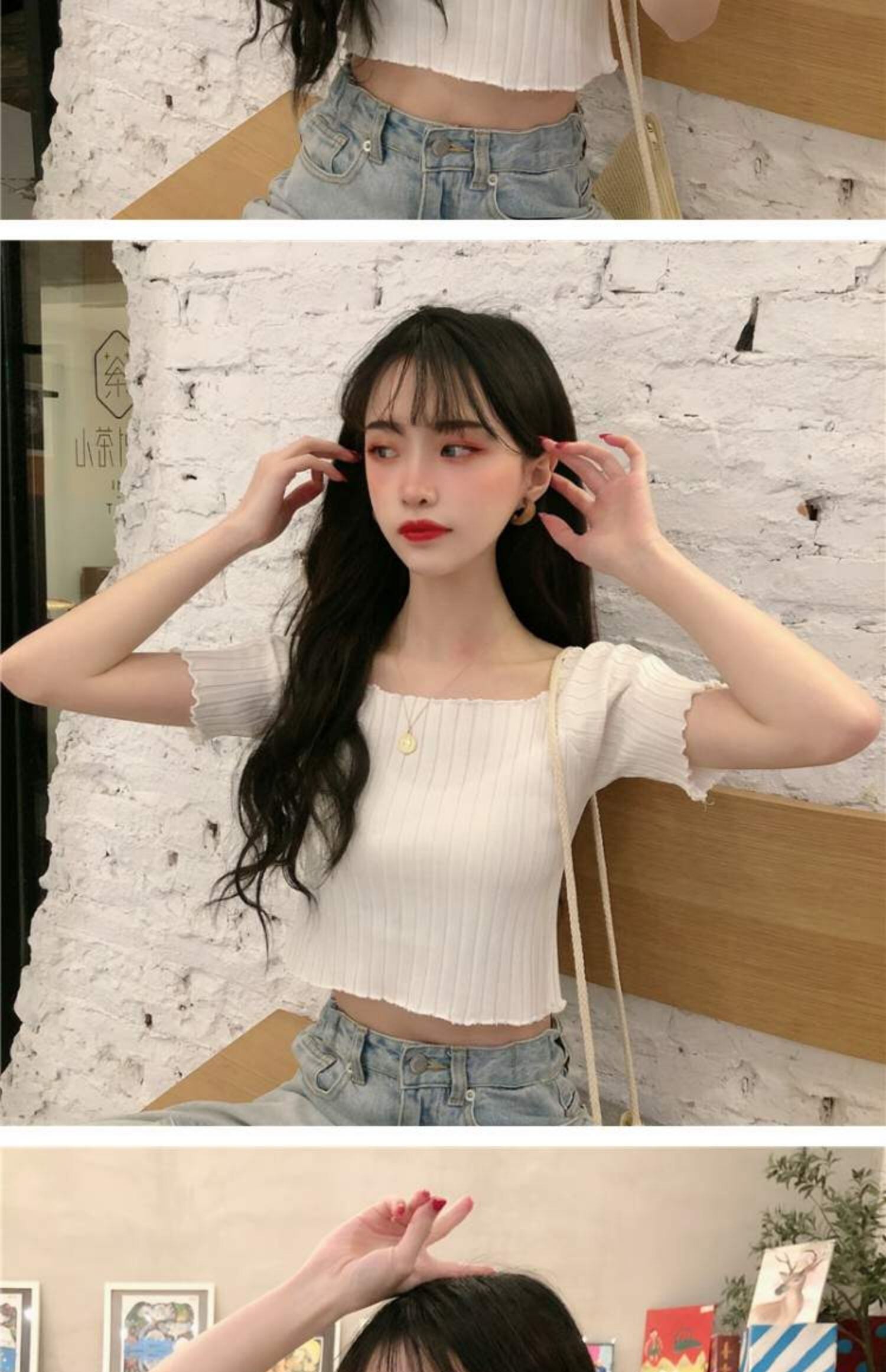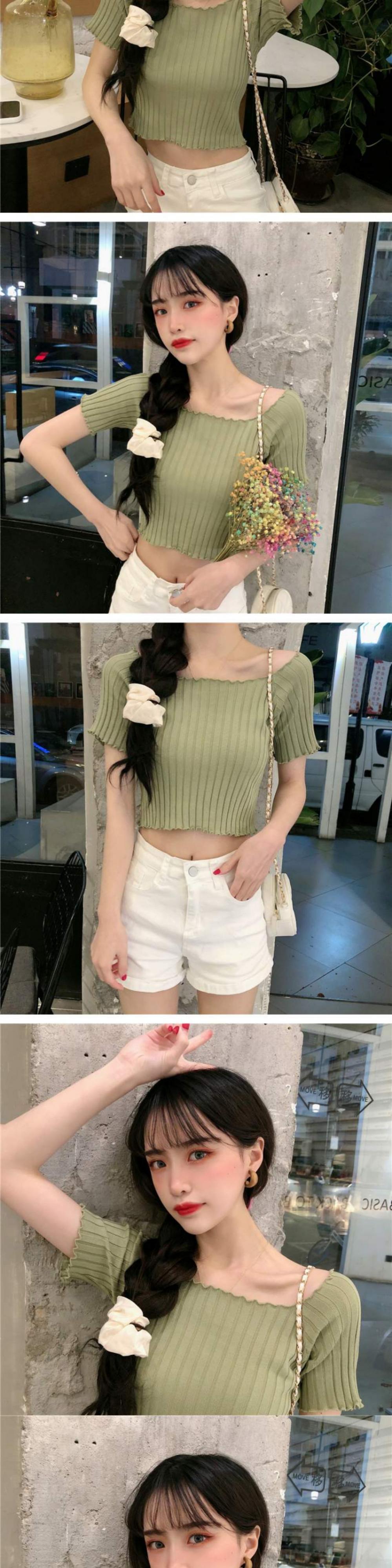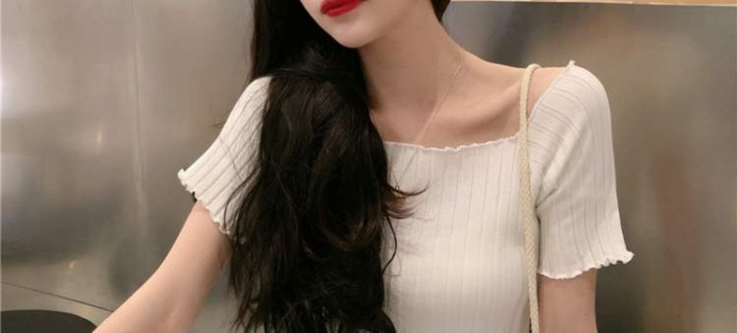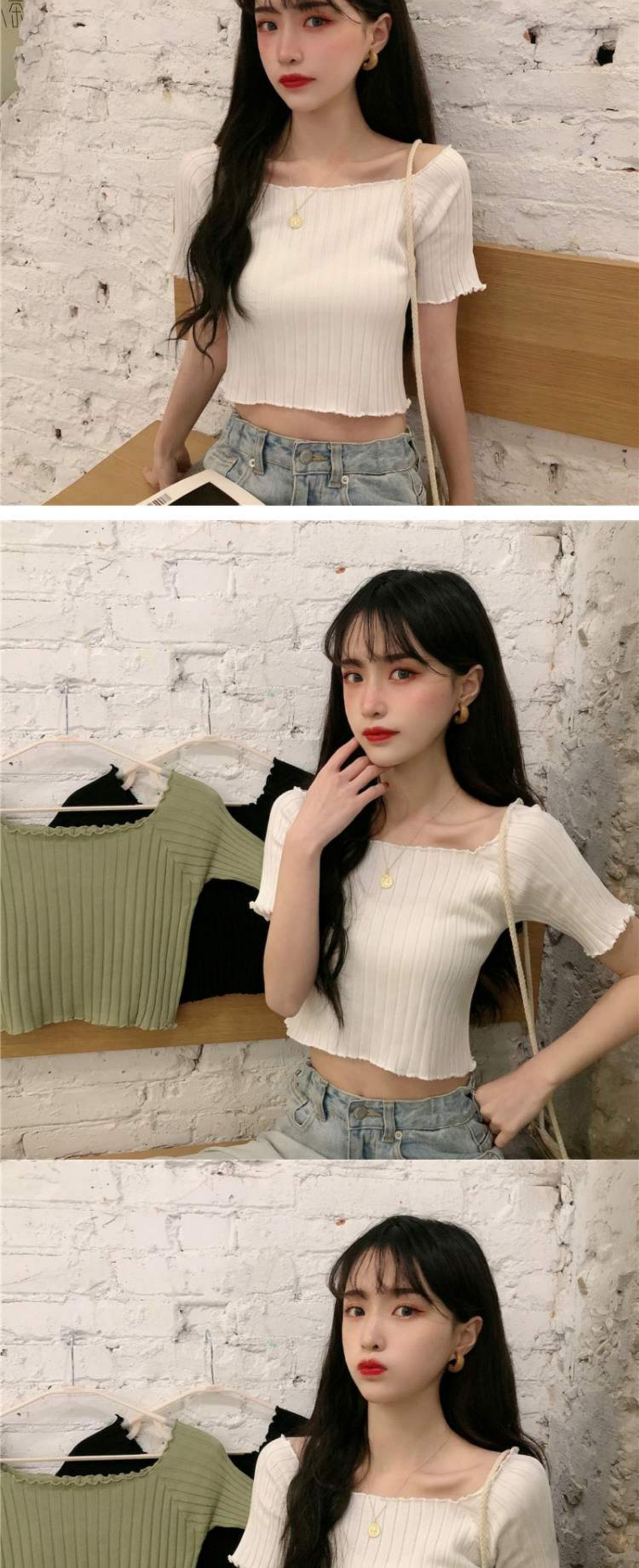 ニットTシャツ シャツ オータムスリムフィット薄手ショートトップス 大人ガーリー スウィート キュート カジュアル 秋物 スクウェア 萌量不足62172181979