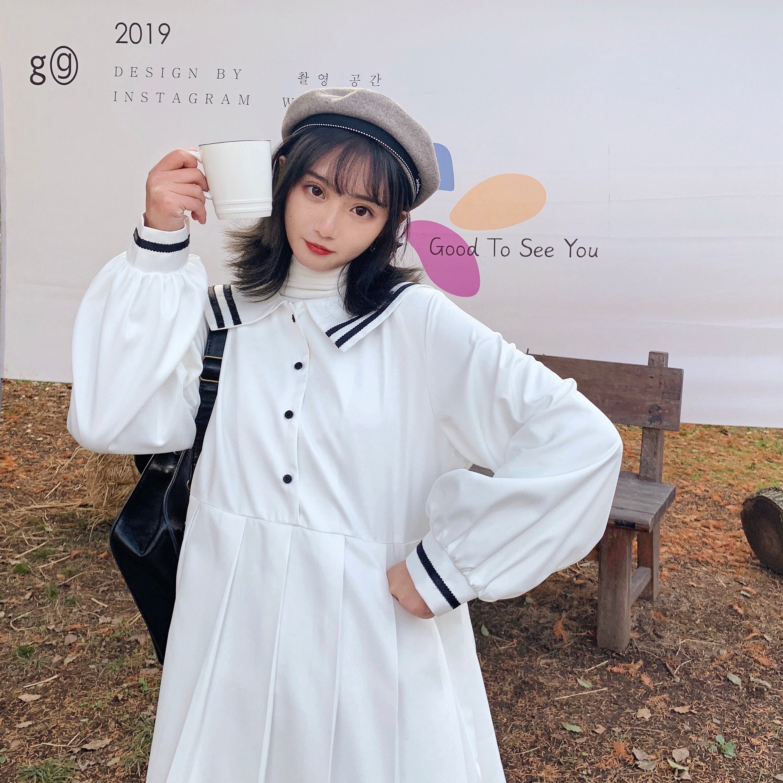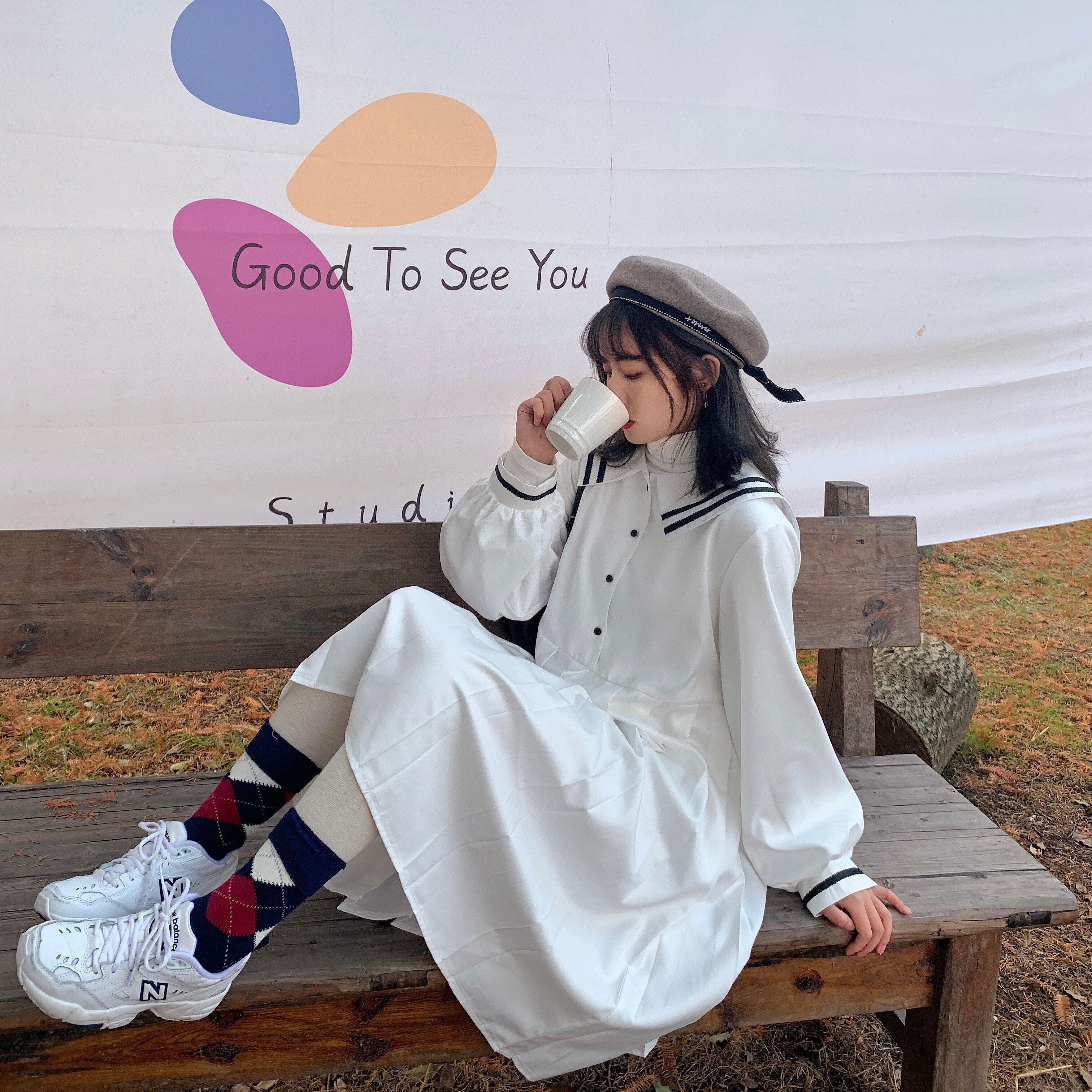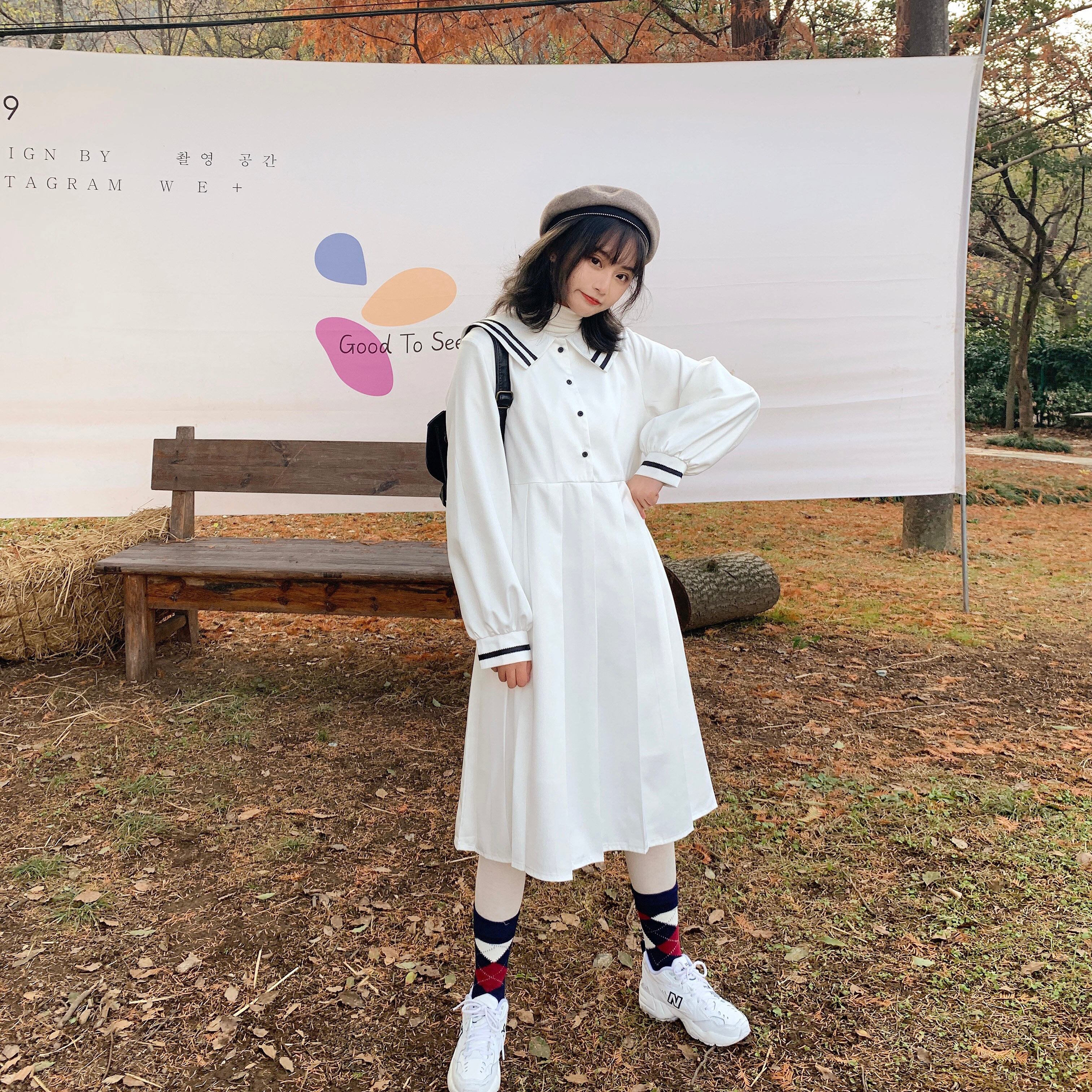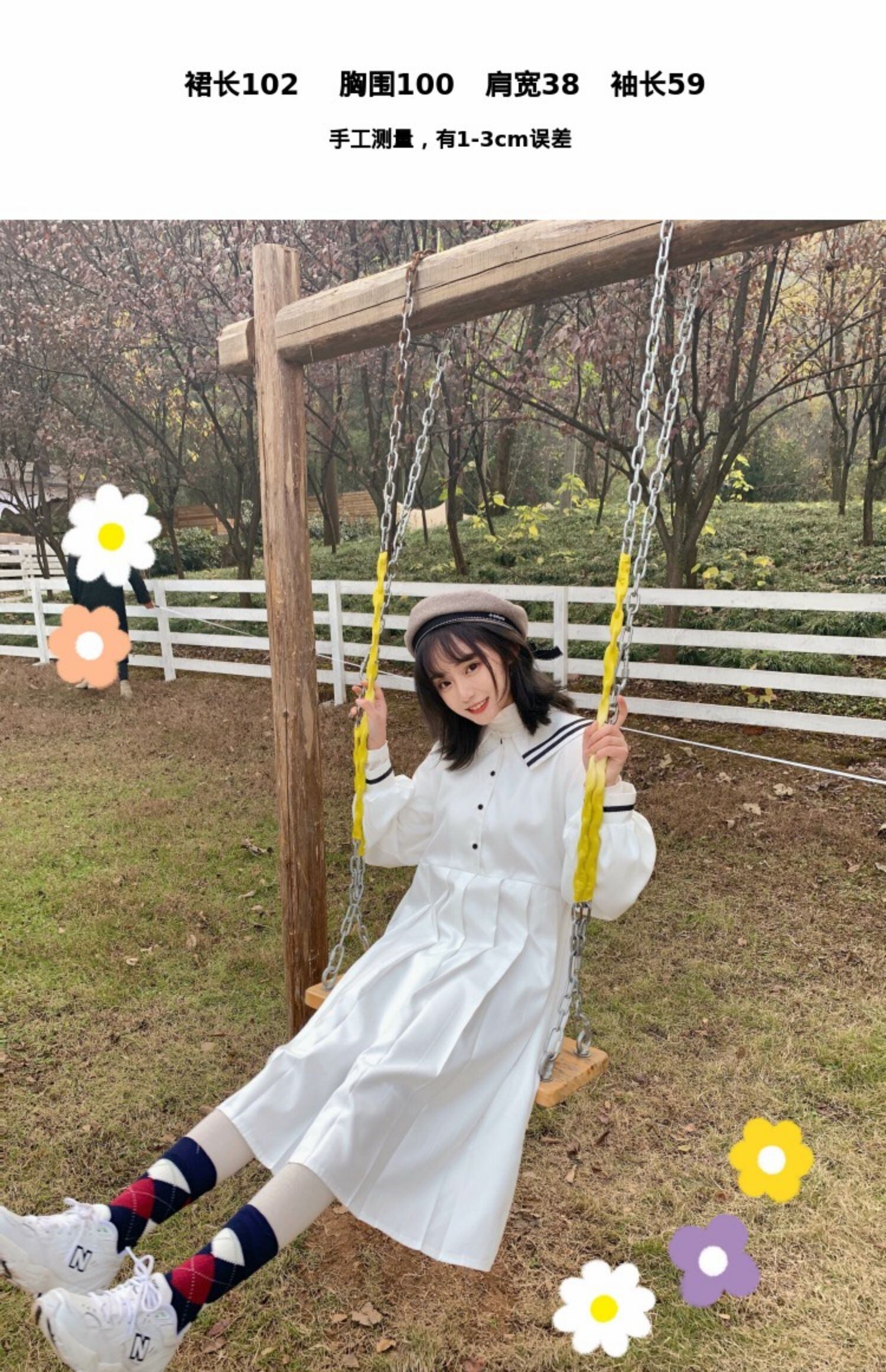 スタイルネイビーカラードレス スプリングホワイトオータムロングスカート 春物 秋物 萌量不足24715183796
